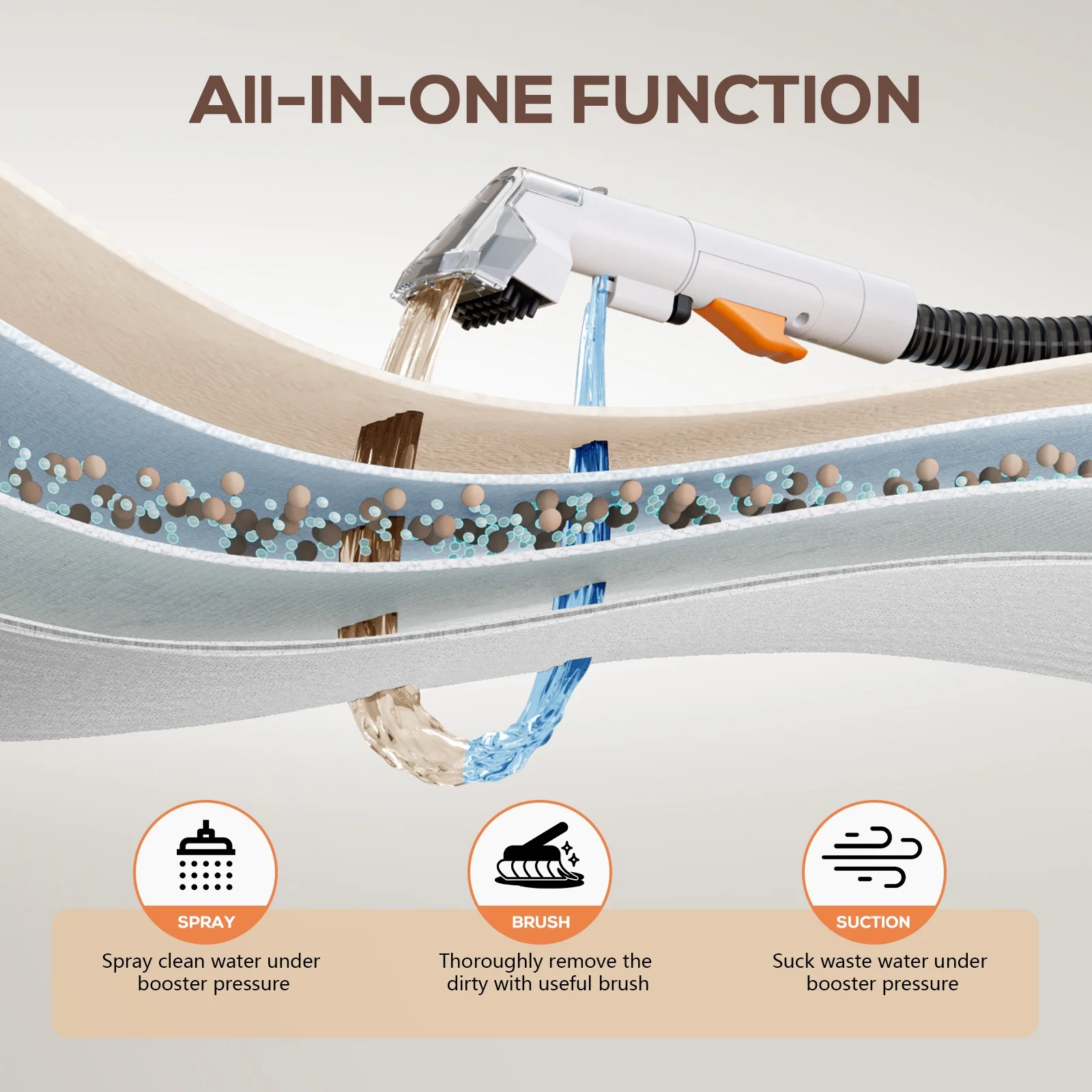 - The portable carpet cleaner machine features a 450W motor, providing a powerful suction of 11Kpa.