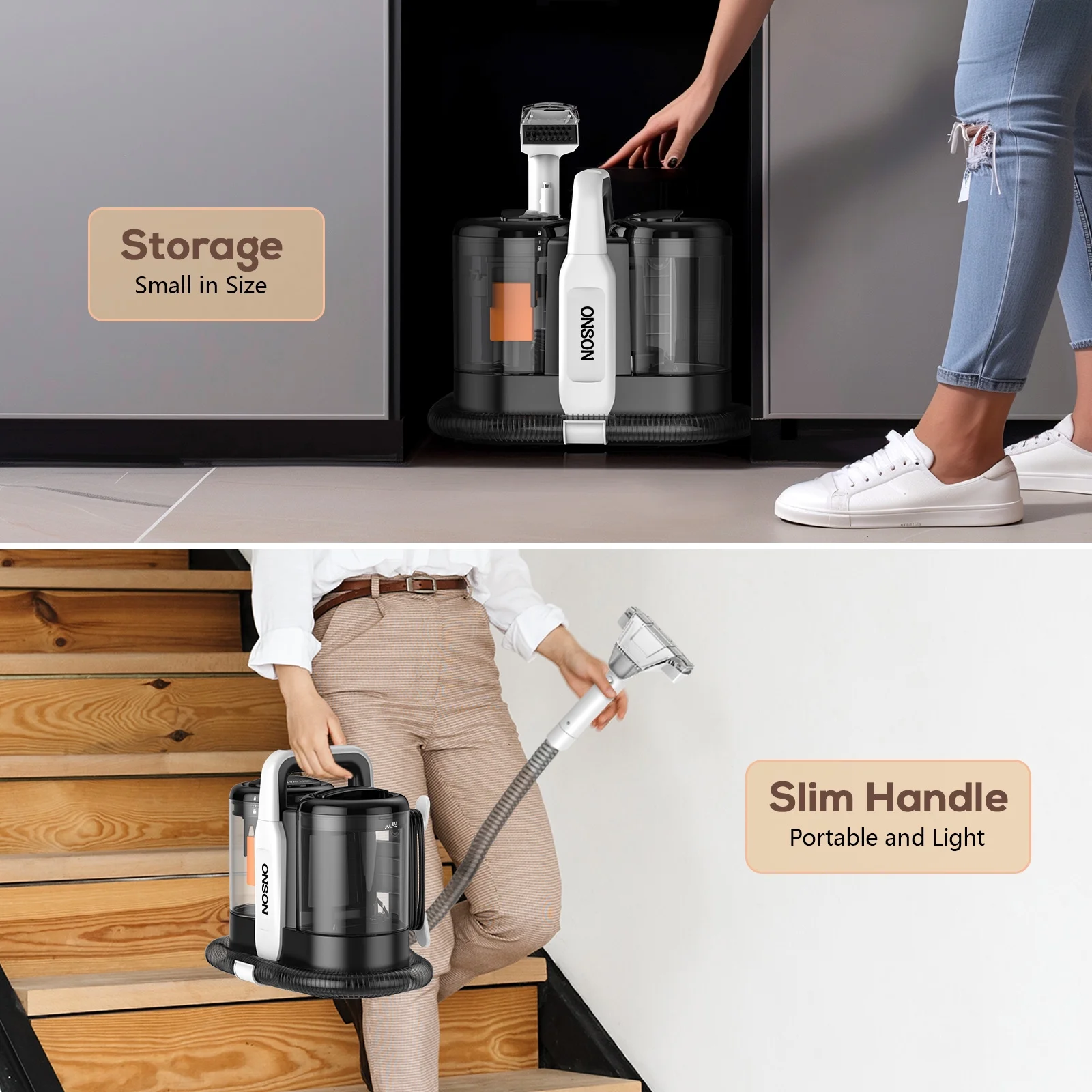 The ONSON carpet cleaning machine is a compact, portable deep cleaner that's perfect for carpets and upholstery. This powerful device from ONSON offers efficient cleaning for a spotless home.