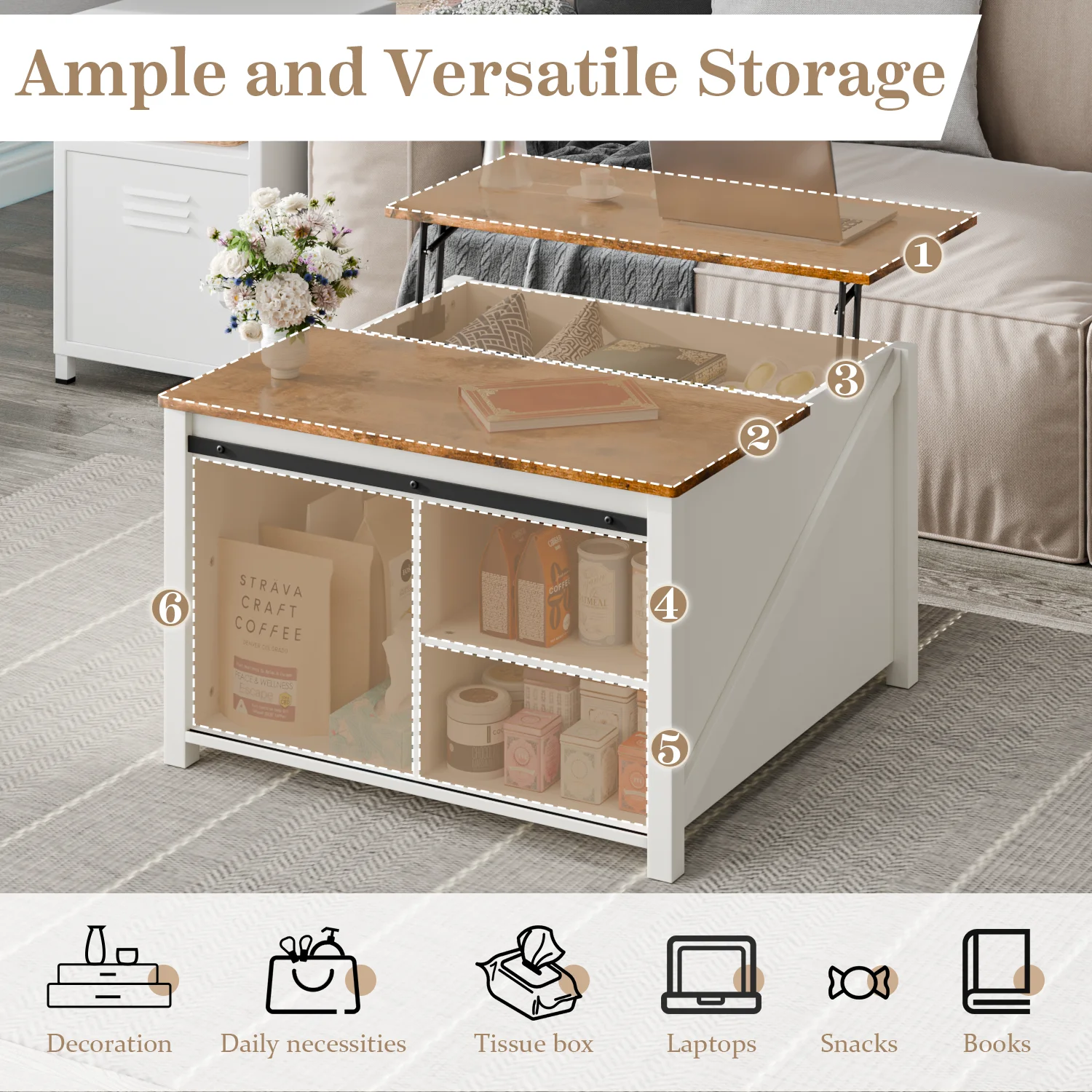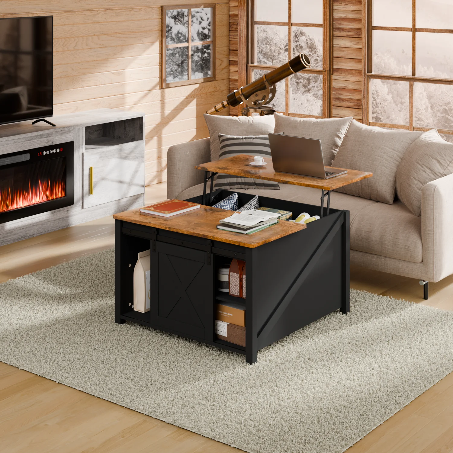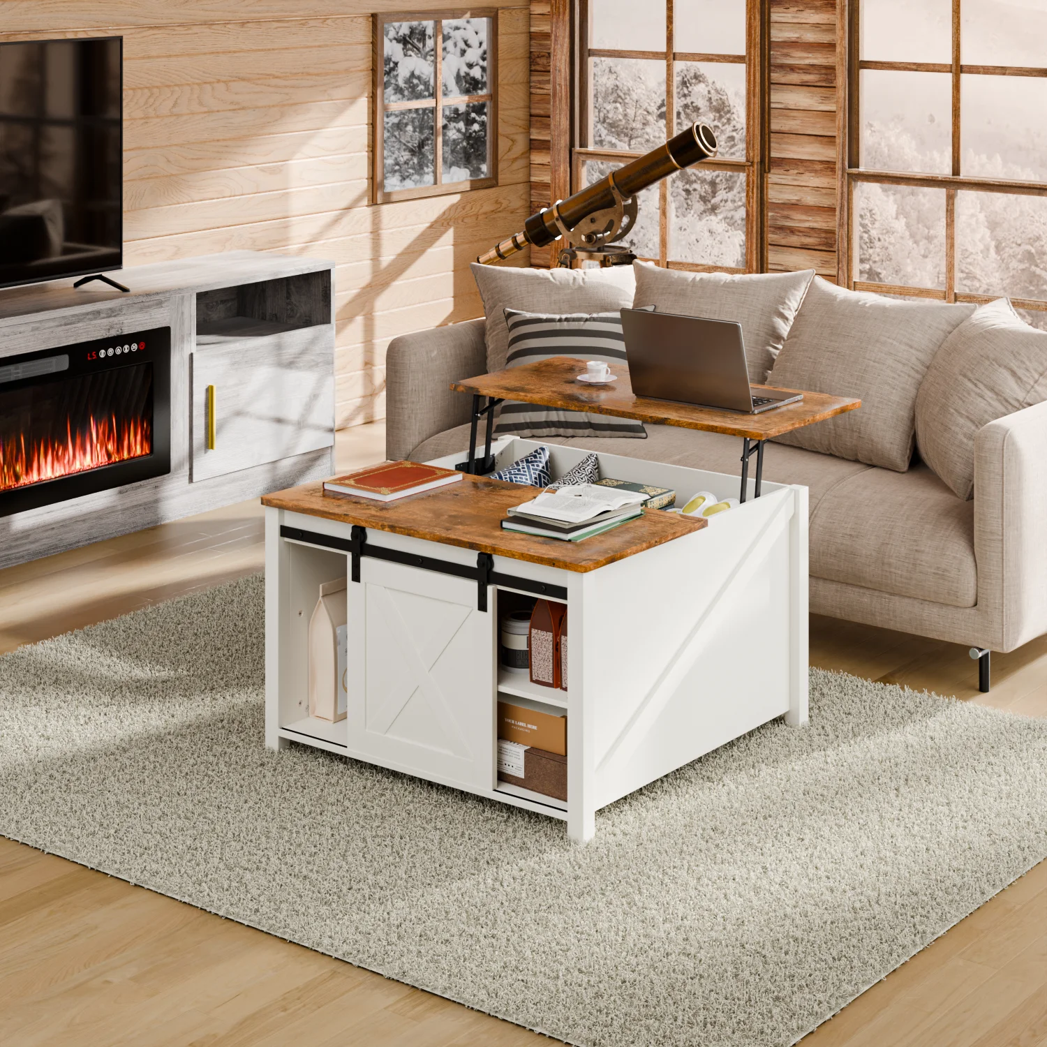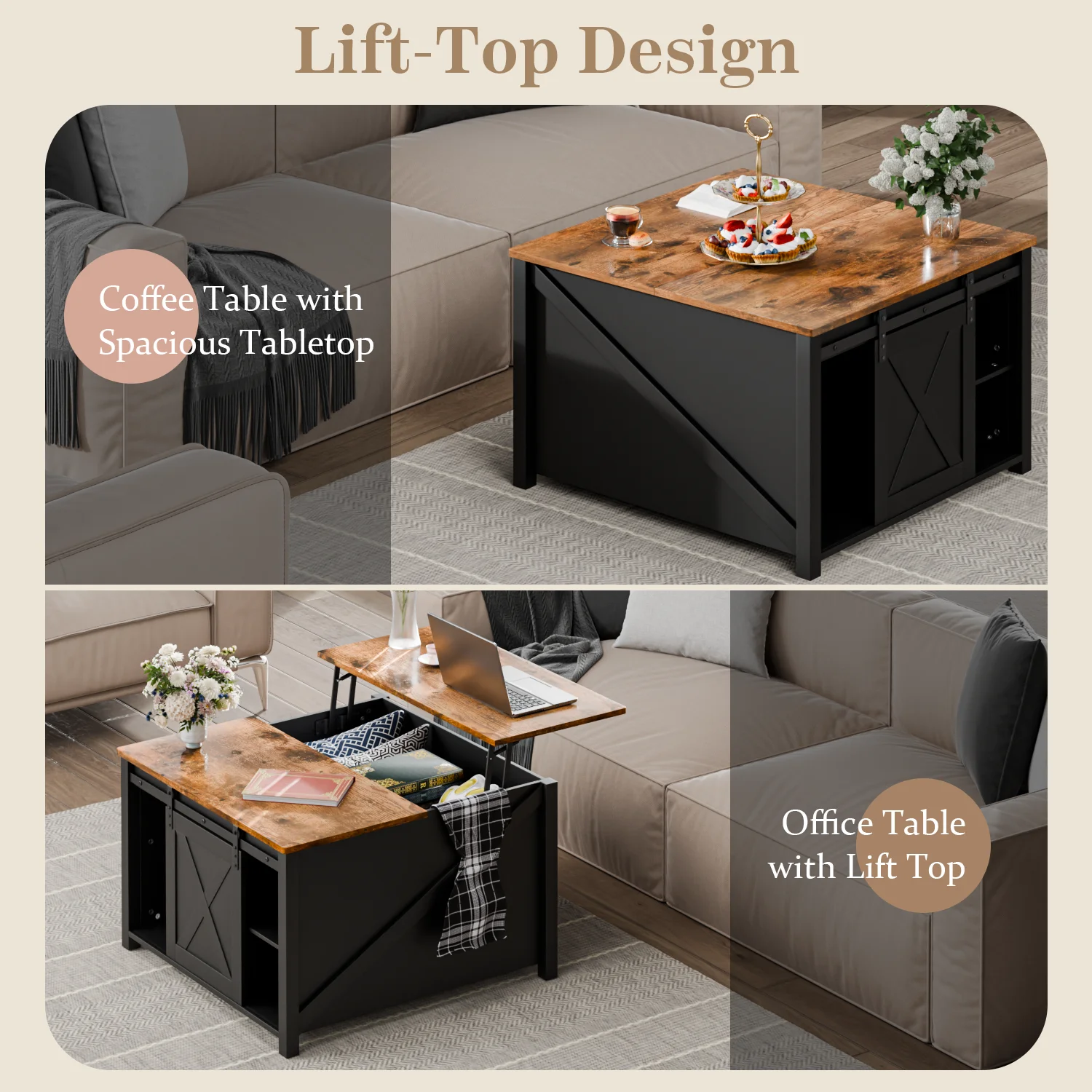 - ? ��Liftable Top Design��This coffee table features a high-quality lifting mechanism for smooth and safe lifting and lowering. The coffee table lift top can be lifted from 19.6 inches to 28.3 inches, allowing the table top to be raised or lowered effortlessly and noiselessly.Half of the table top can be lifted up and moved forward to create two multi-functional workspaces, allowing you and your family to use the table separately without interruption.The coffee table is designed with a high quality lifting mechanism that provides a smooth and safe lifting mechanism.