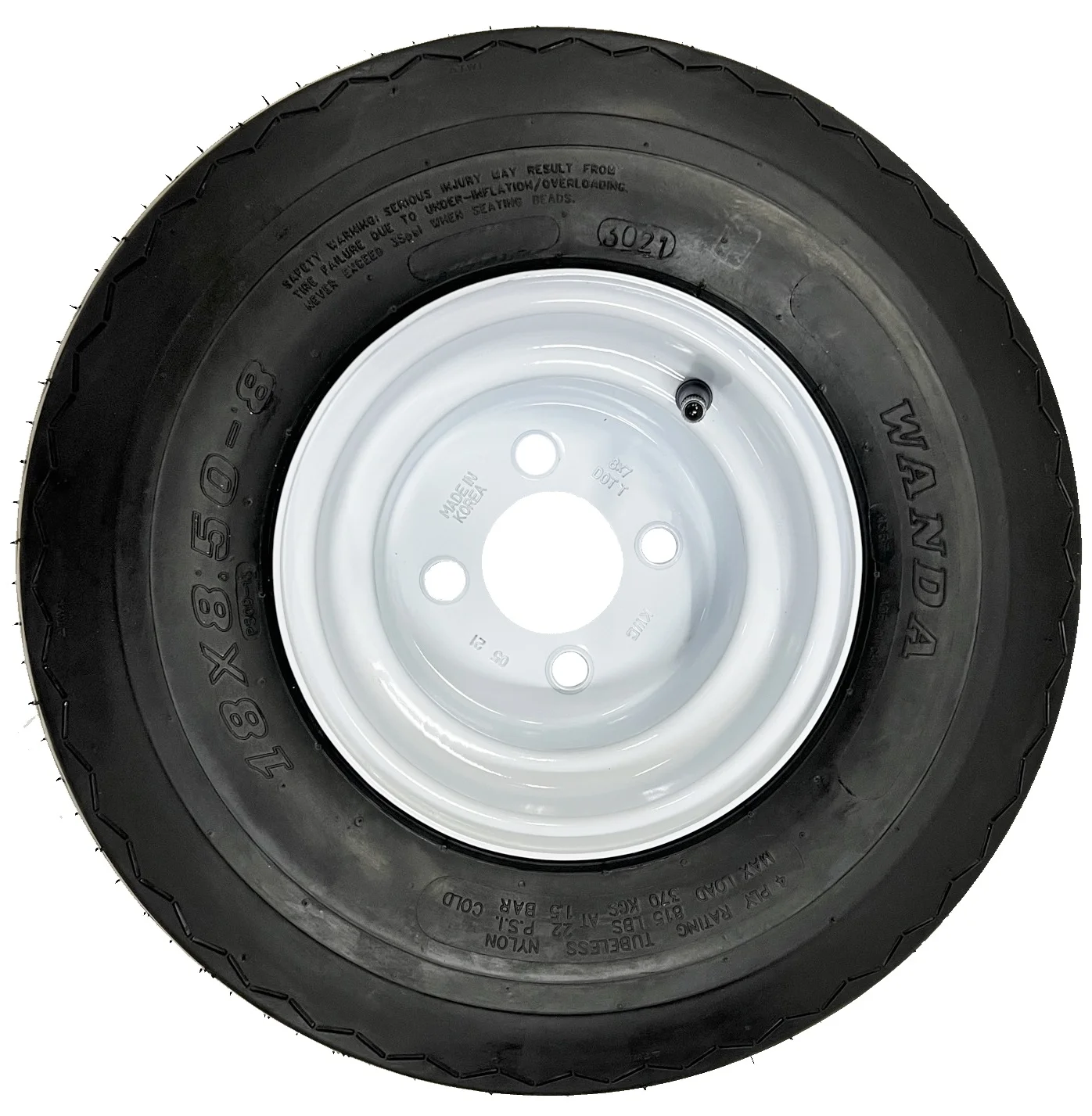 - 4-Pack Trailer Tires & Rims Bias Ply 18-8.50-8 Load B 4-4 White Conventional 8