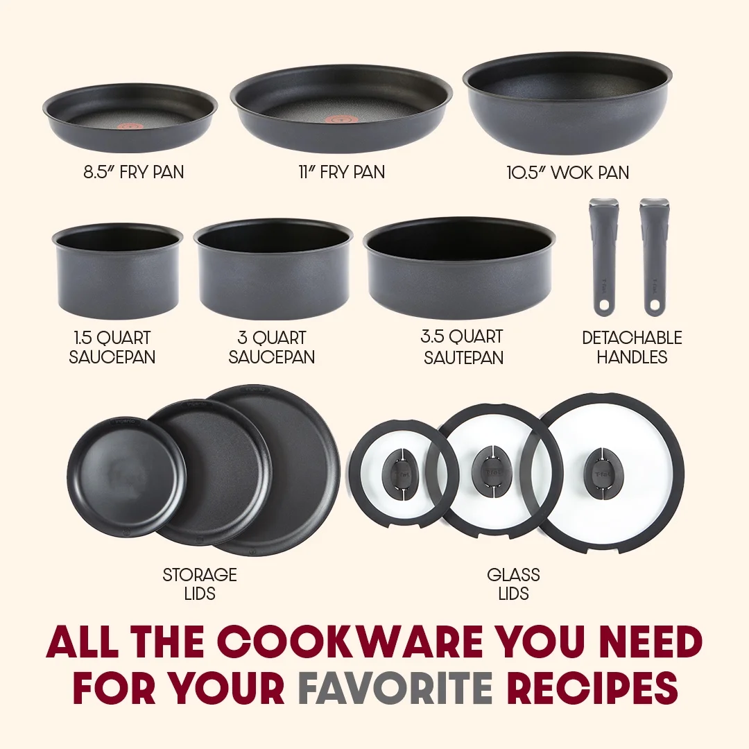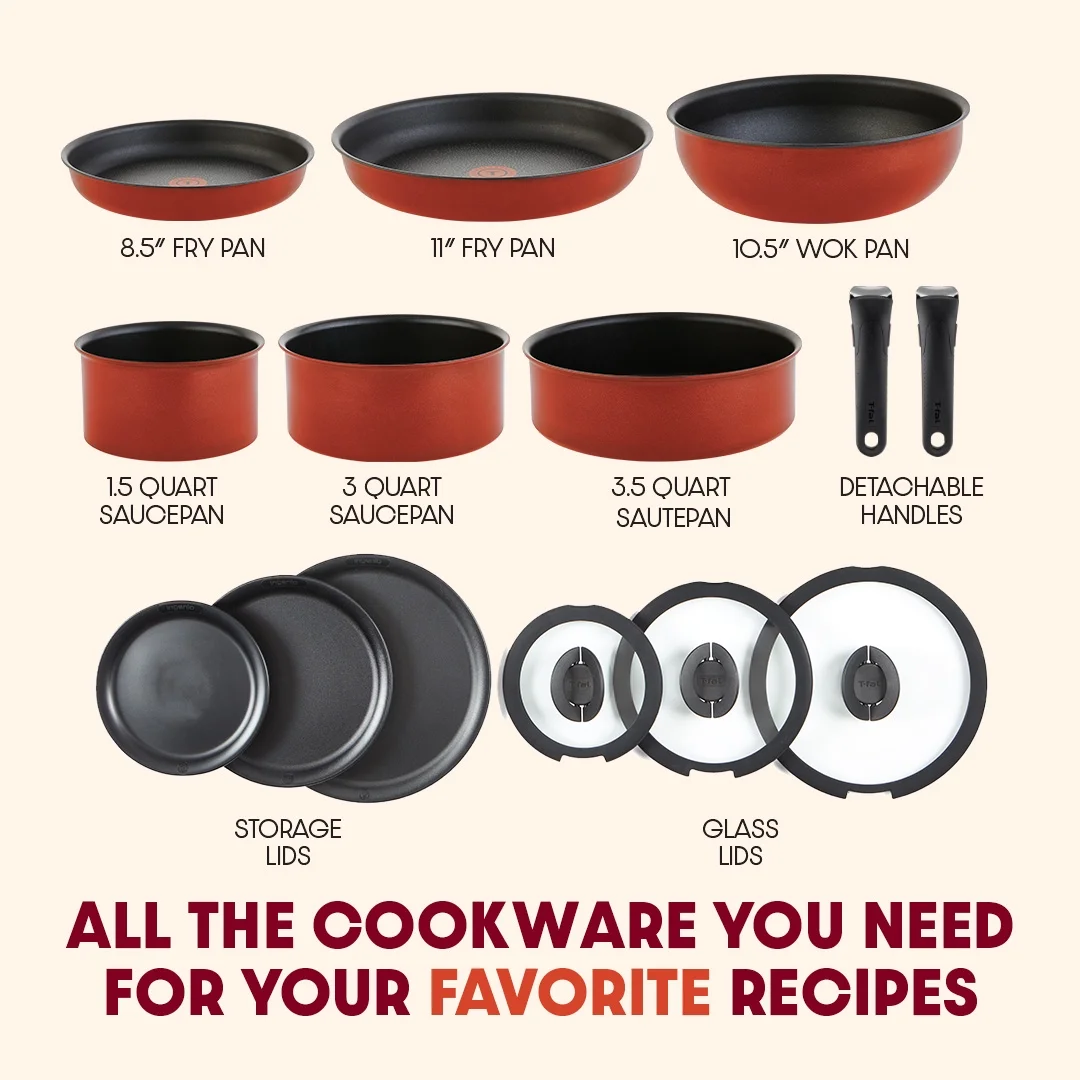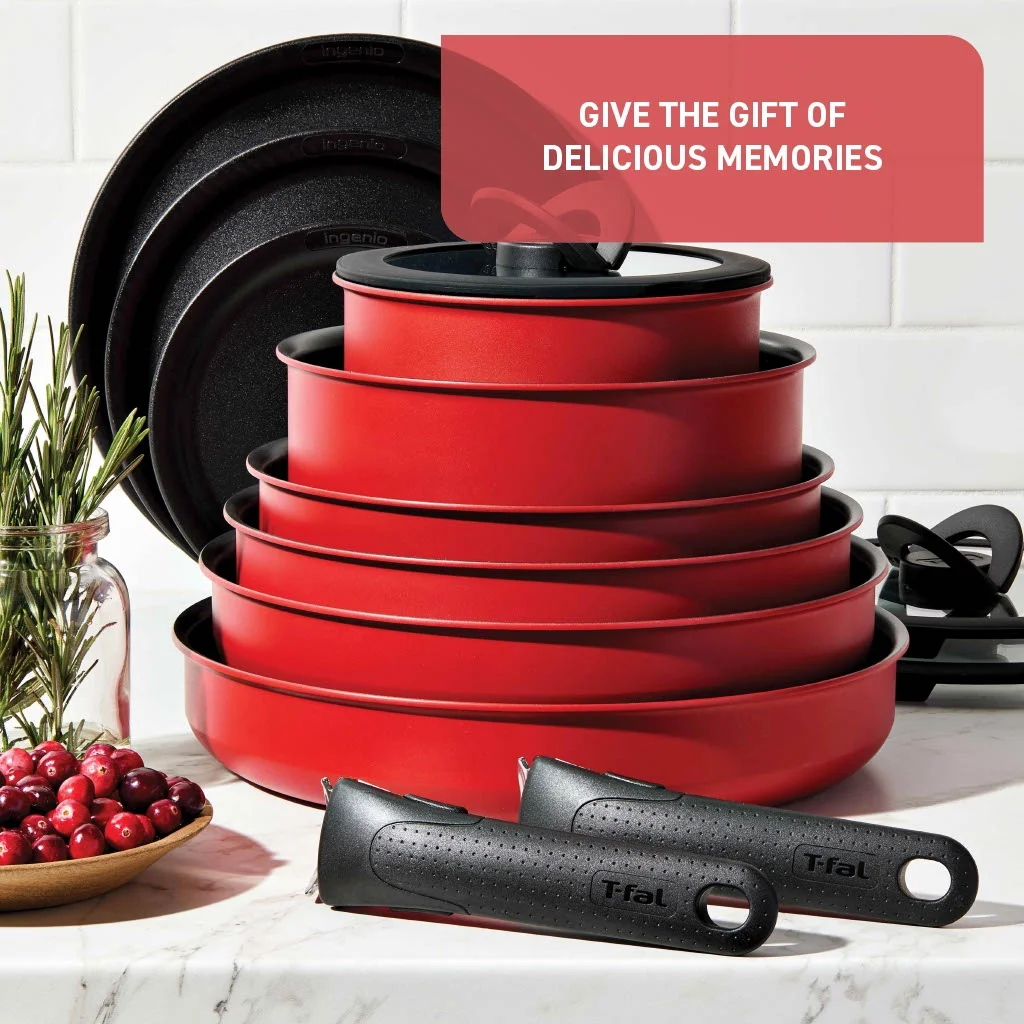 - Maximize Your Shelf Space: Gift the joy of space efficiency! Stackable design saves up to 60% more space compared to T-fal fixed handle sets. This all-in-one set for cooking, baking, and serving is best for small kitchens, RVs, and other limited spaces.