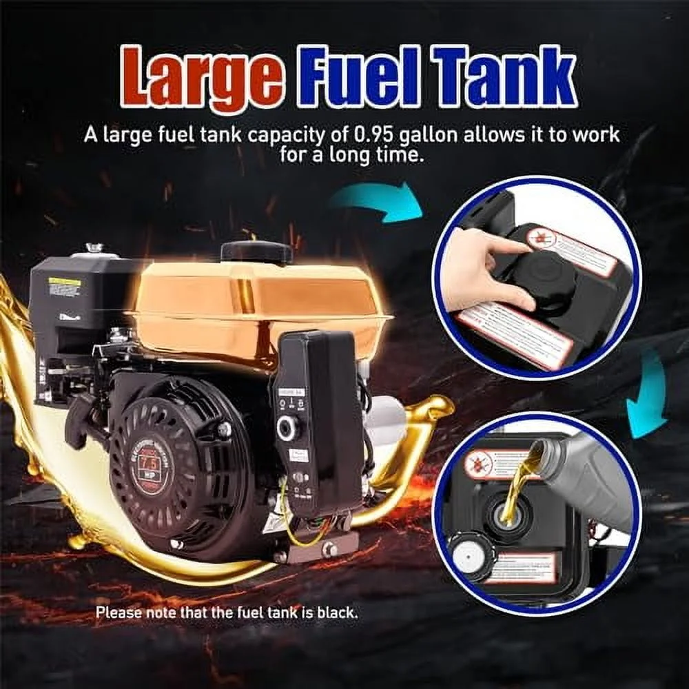 ??��???????????????? ?????????? ?????? ????????????�� Go kart gas engine power up to 3000W, rated speed of 3600rpm, provides more power for your home and yard equipment, such as kart, compressor, lawn mower, water pump, generator, high pressure washer, truck mower, cement mixer, dust collector, etc. ??��???????????????? ?????????? ????????????��4-stroke 7.5HP go kart engine with overhead valve (OHV) design, a displacement of 210CC and a rotating speed of 3600RPM, low fuel consumption, low operating temperature, stable performance. ??��???????? ?????? ????????????????�� The four-stroke go kart motor is equipped with an oil alarm. Not adding enough oil before starting will automatically shut off to the go kart motor engine. The spark plug placement is easy to reach with a ratchet-socket combo or a simple T handle socket extension tool. ??��?????????????????? ?????????????? ????????????��The go kart electric motor is equipped with a forced air cooling system and can reduce the temperature of the motor in time, prolonging the service life of the go kart motor and minimizing the potential safety hazards, a ventilated radiator to maintain motor cooling and provide high reliability and durability. ??��??????-?????????? ??????????��The go kart electric motor kit is equipped with metal cam, forged crankshaft and cast iron cylinder liner, manual or electric start, can be stable operation. Also has a silencer you create a quiet working environment. ??��???????? ??????????????????????��7.5HP 4-stroke powerful engine motor kit for compressors, go-karts,, lawn mowers, water pumps, generators, high-pressure cleaners, cement mixers, mobile car washers, log separators, cultivators, water/trash transfer pumps1