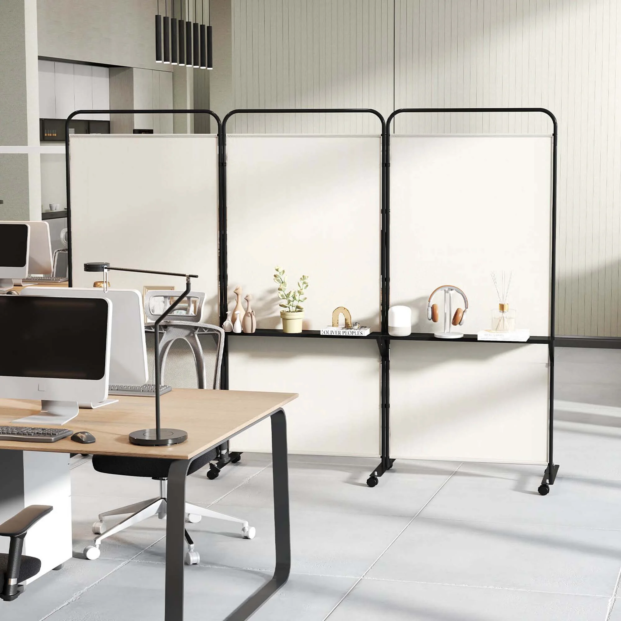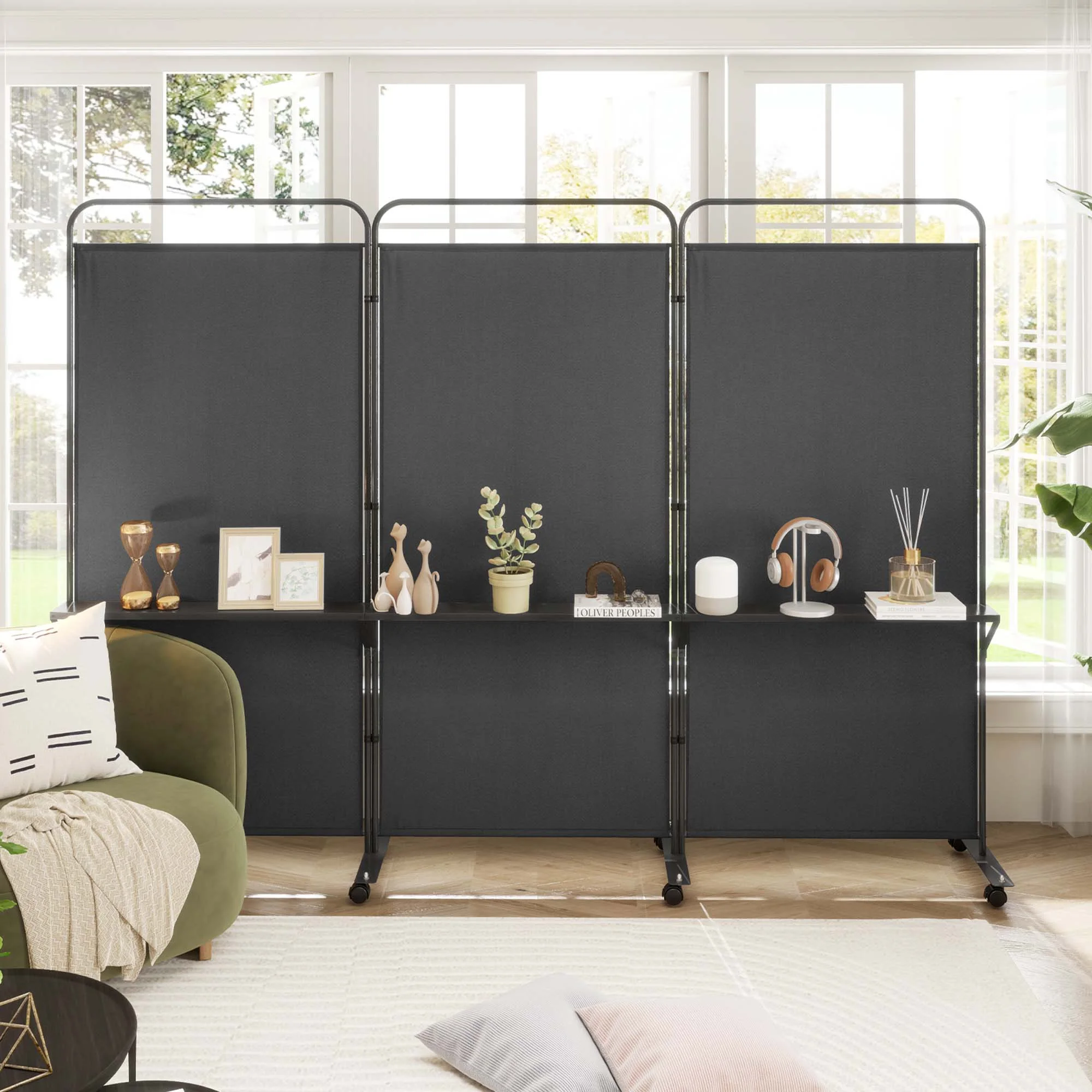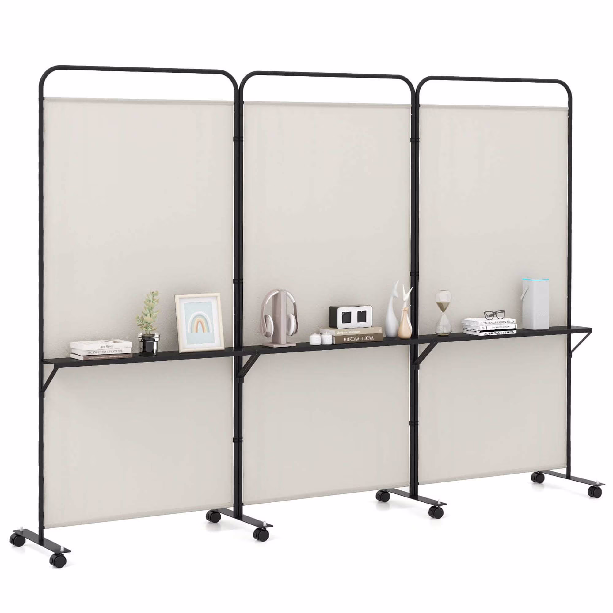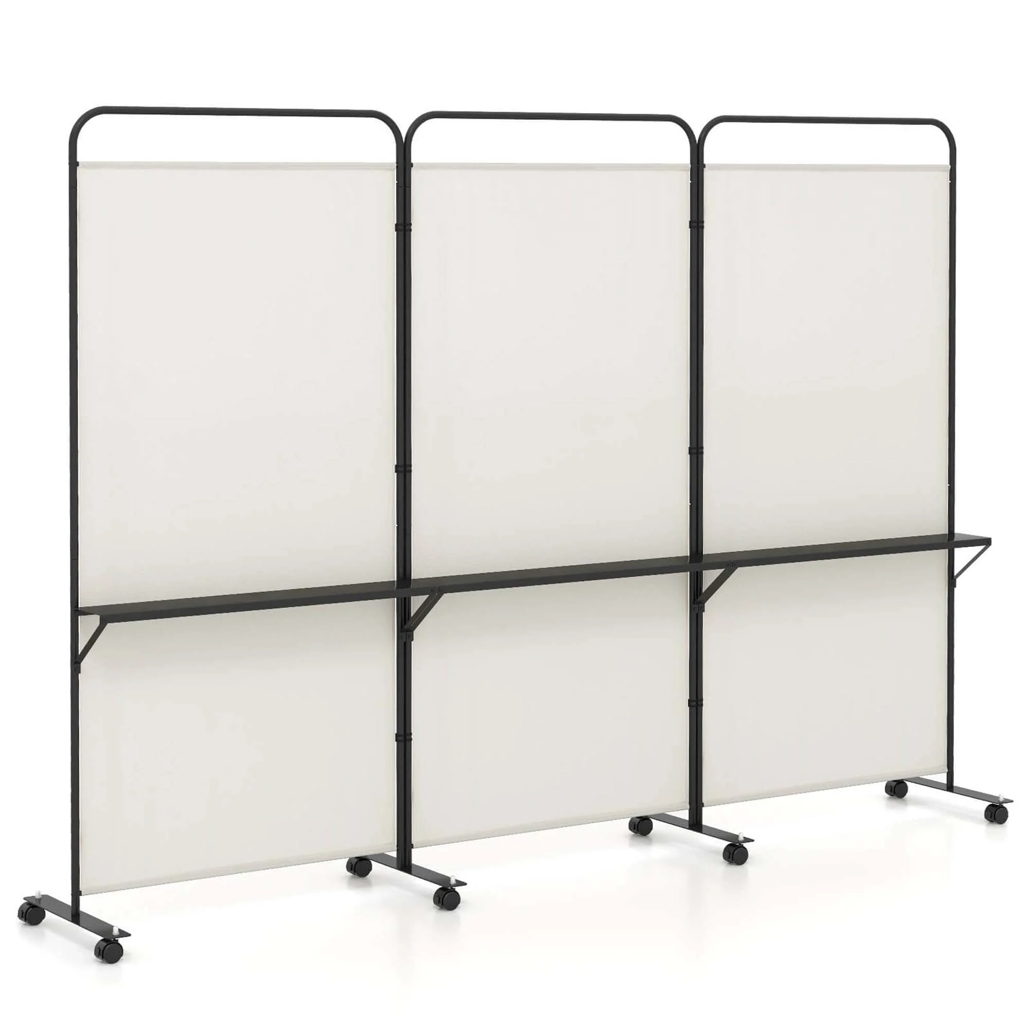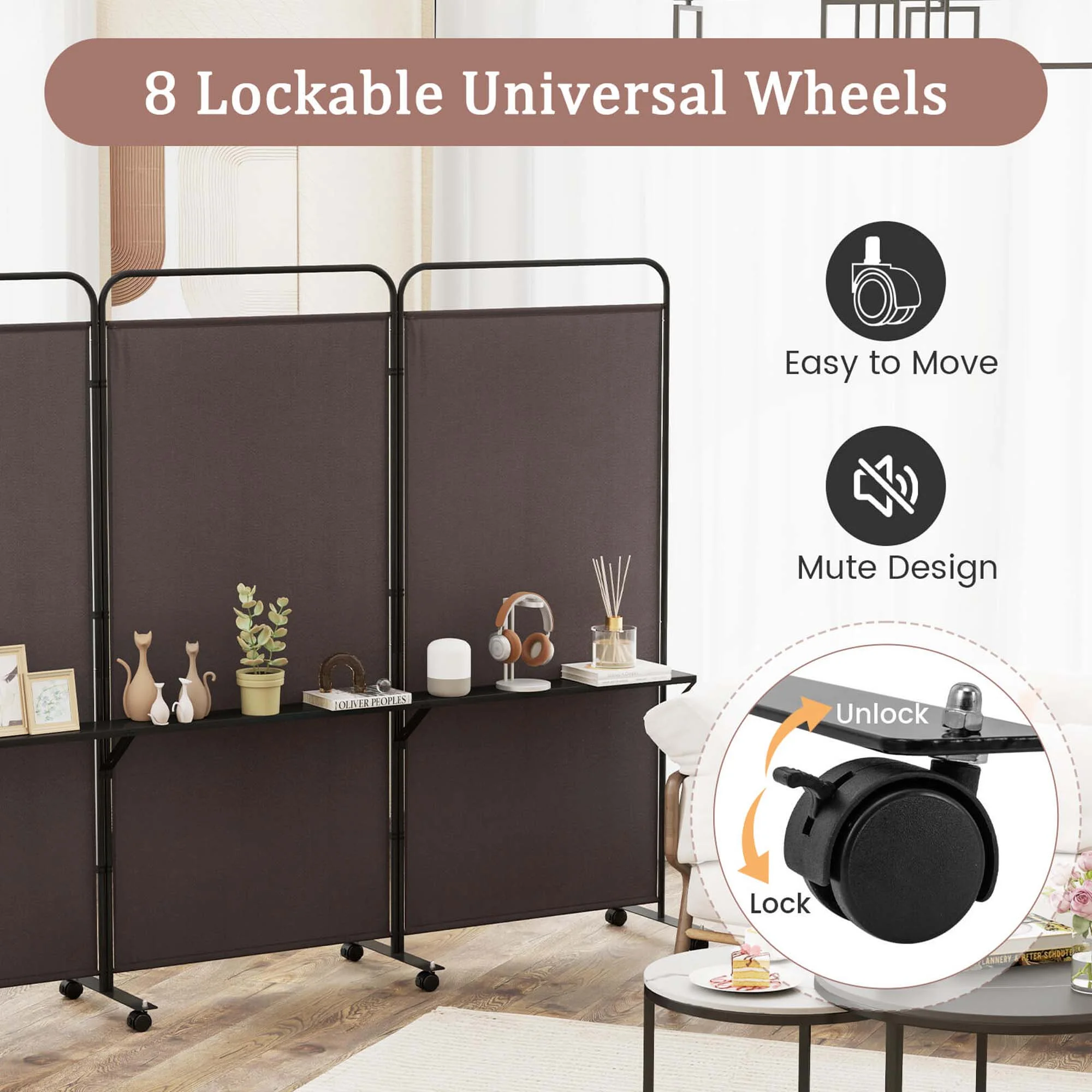 - Easy to Move & Fix: Equipped with 8 lockable universal wheels, this 3-panel privacy screen can effortlessly move around the room. The mute design ensures you don't disturb others when moving the screen, and you can also securely stop it in place with the brakes.