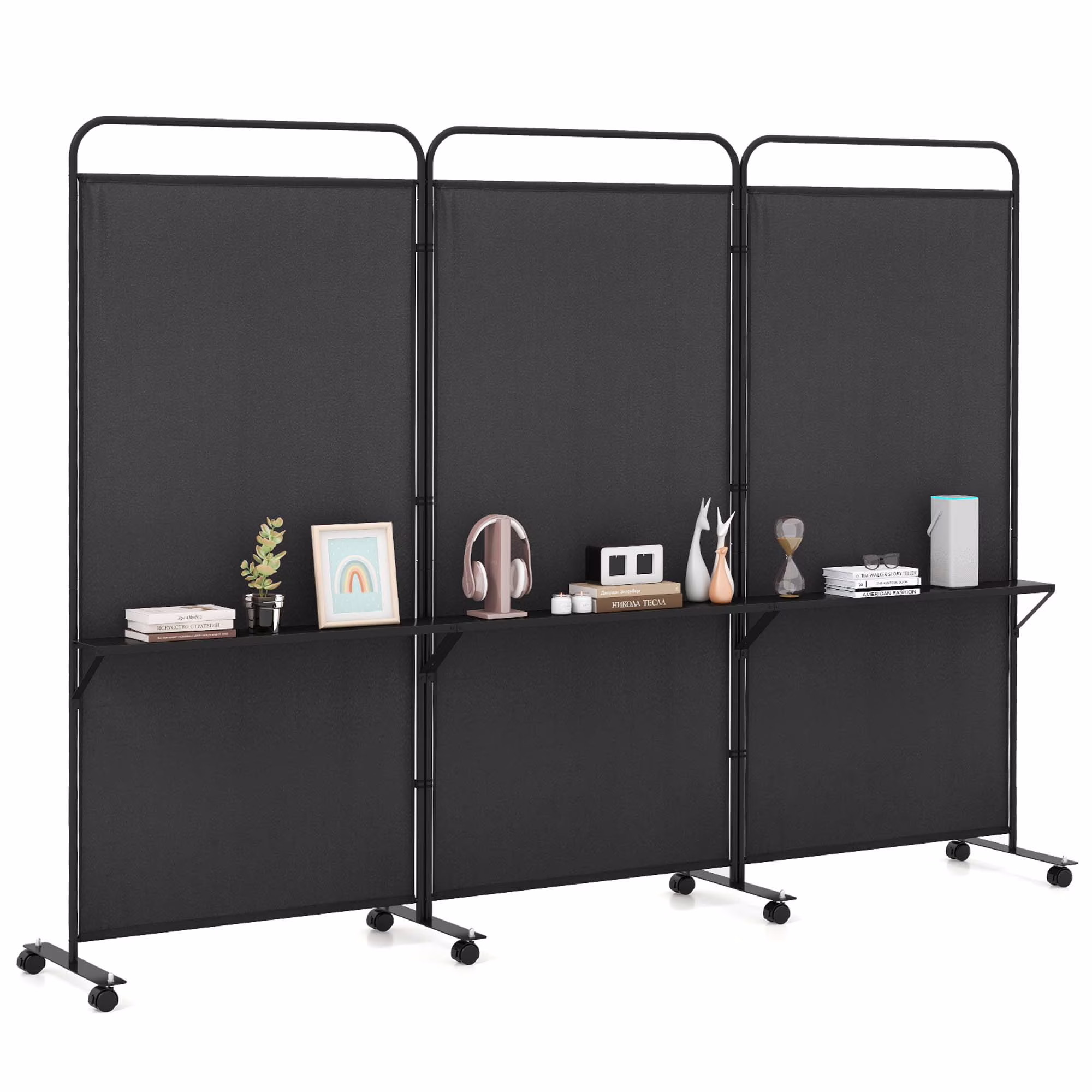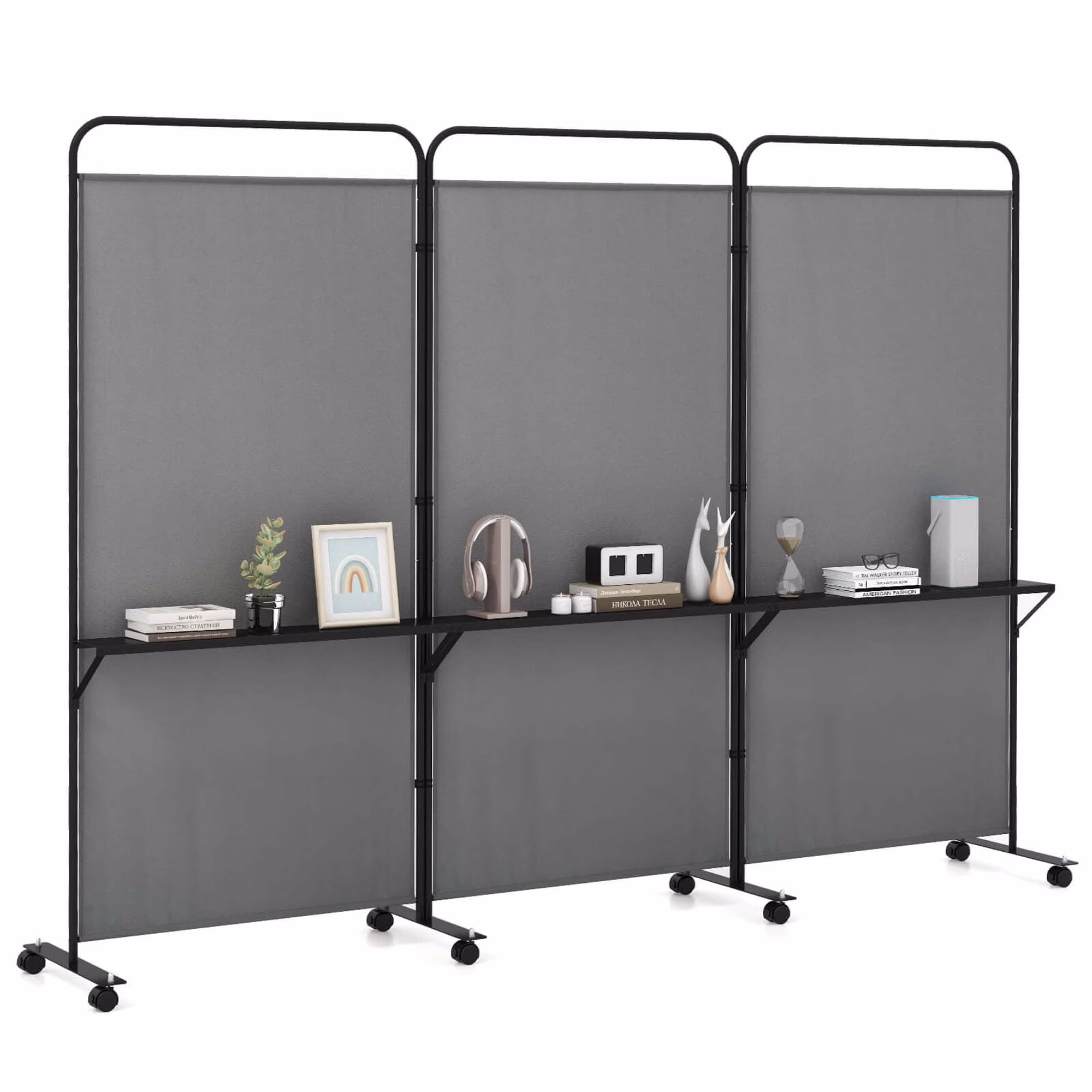 - Extra Storage Table: This room divider boasts 3 metal shelves that offer extra storage space and keep your room organized. The shelves with a suitable width of 5.5" is perfect for books, photo frames, decorations and potted plants.