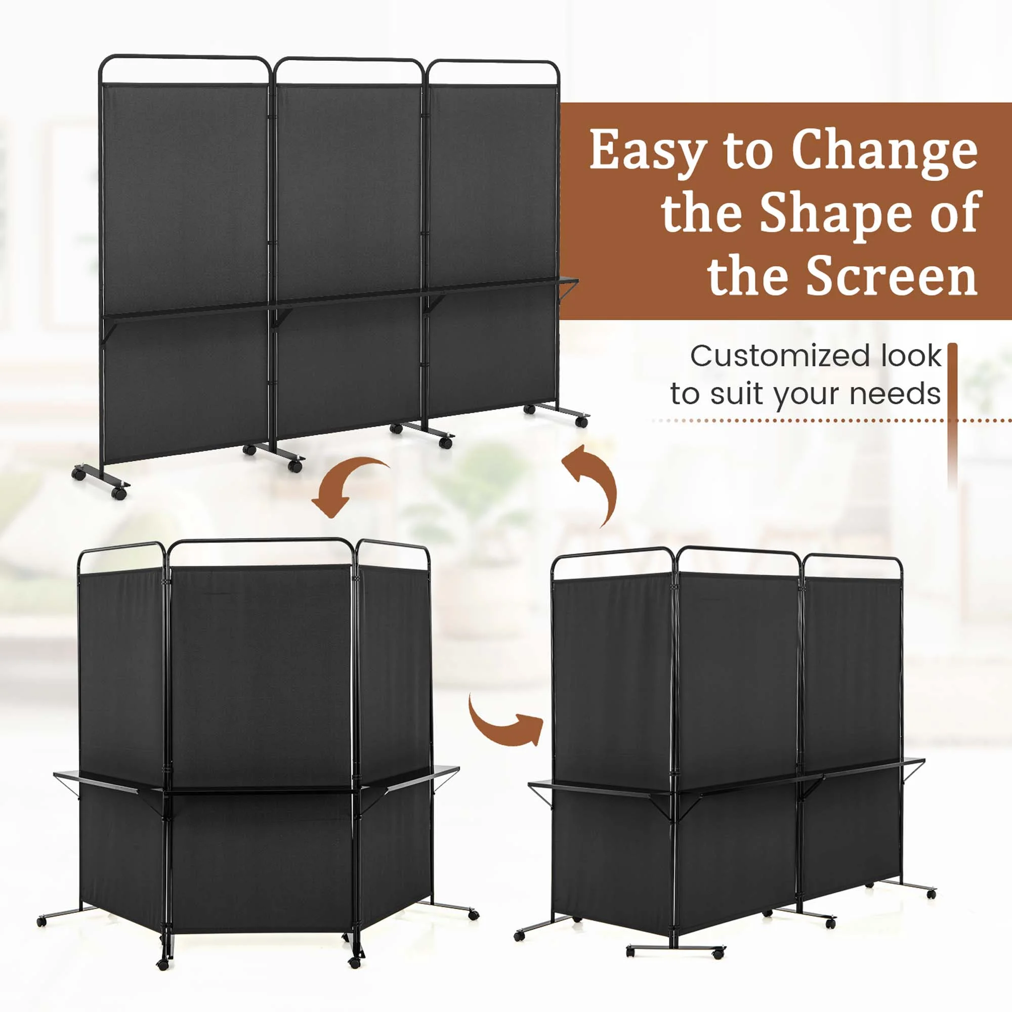 - Customized Shape of the Screen: Enjoy the flexibility of 180�� swivel hinges on this rolling privacy screen, which makes it easy to change the shape of the screen. What��s more, strong connecting buckles give you a peace of mind when you customized look to suit your needs.