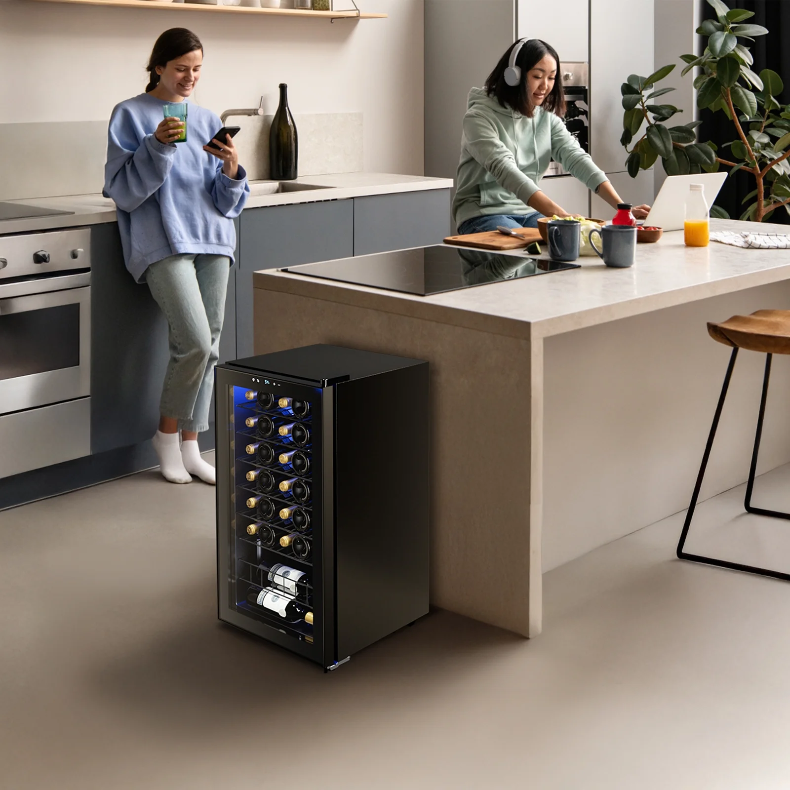 - ??��Wine Cooler��Mini refrigerator can keep a variety of canned drinks or wine chilled without taking up too much space at your home, dorm, bar, or office. It can conveniently hold 34 standard-sized bottles to impress your guests during parties, and this high-quality Wine Refrigerator will surely fit and add an elegant accent to any home decor.