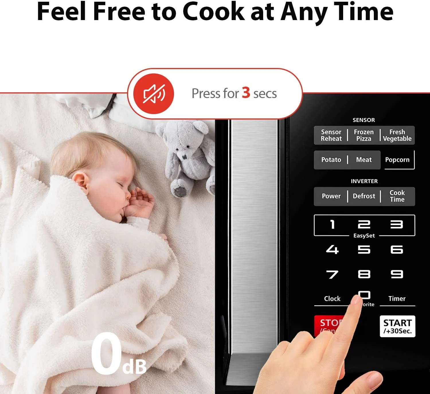 - Quick Start Button: One touch quick access to start the microwave from 1 to 3 minutes cooking at full power