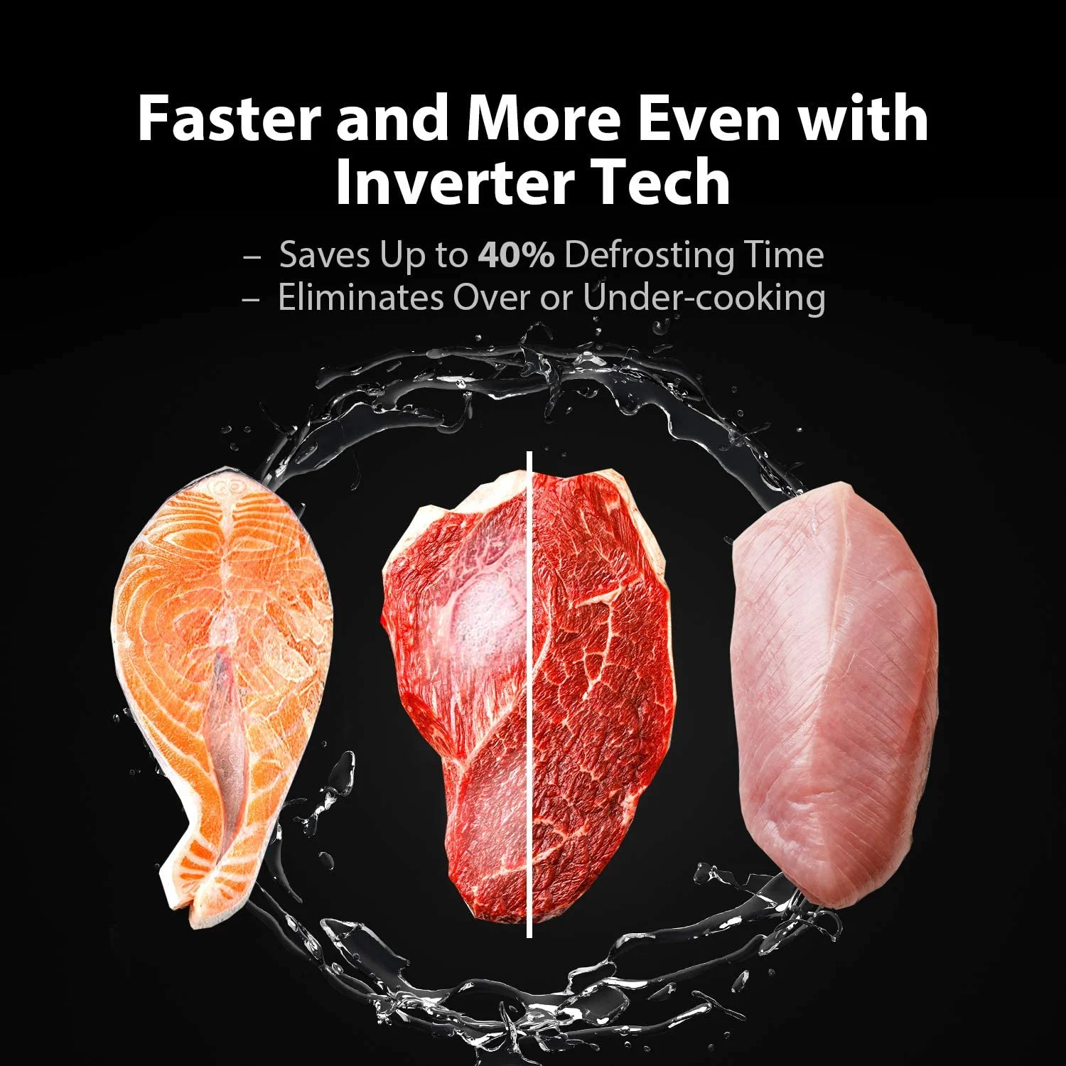 - Origin Inverter Technology: Inverter technology provides even heating and defrosting, enables faster cooking and more satisfying user experience; also, inverter microwave is lighter compared with same size microwave.