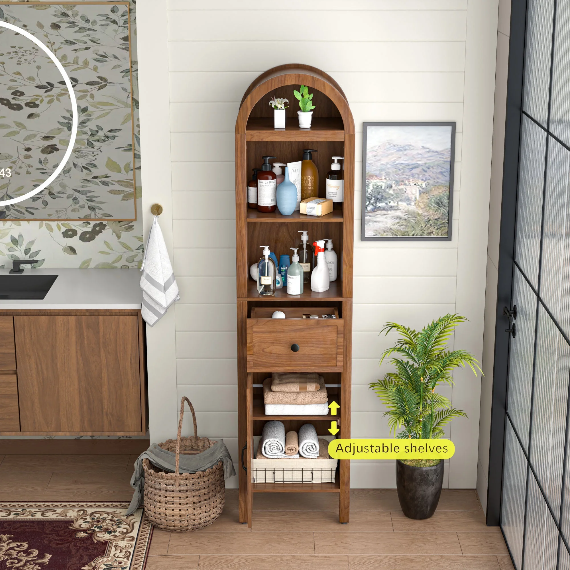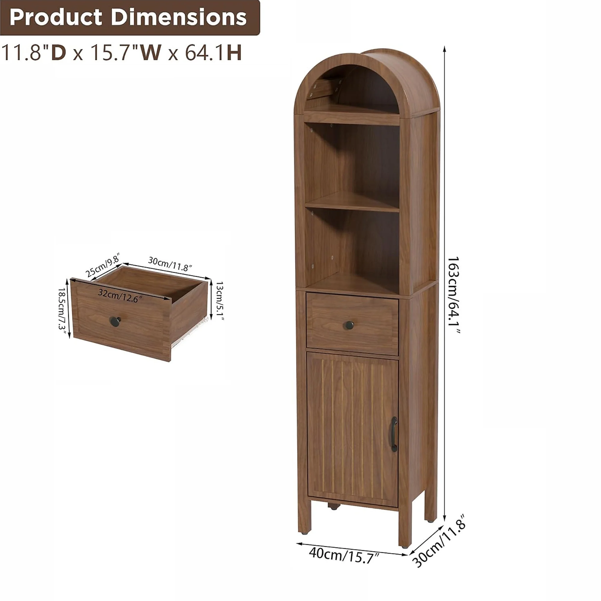 - This narrow tall linen tower cabinet comes with 3 semi-open compartments, 1 spacious drawer, and 1 adjustable shelf, providing ample organized space, maximizing the use of vertical space, and perfect for small rooms and narrow corners.