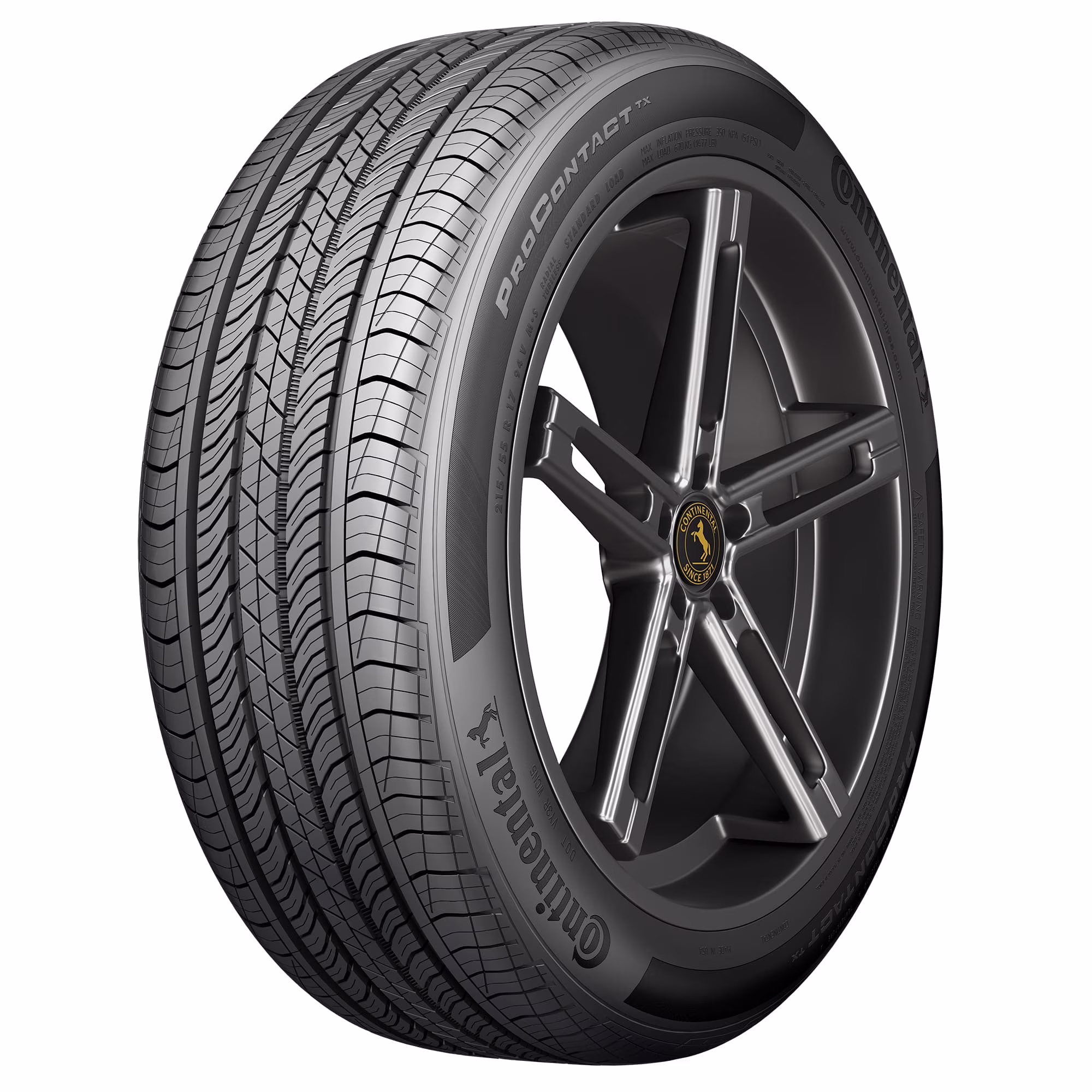 The Continental ProContact TX is a premium, all-season touring tire for passenger cars and crossovers that is backed by up to a 65,000-mile limited treadwear coverage. Built for balanced year-round traction the ProContact TX features ContiSilent and ContiSeal on select sizes.