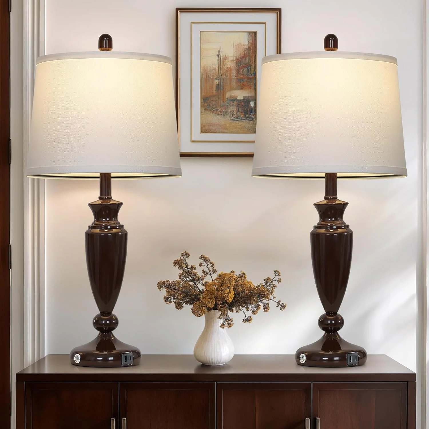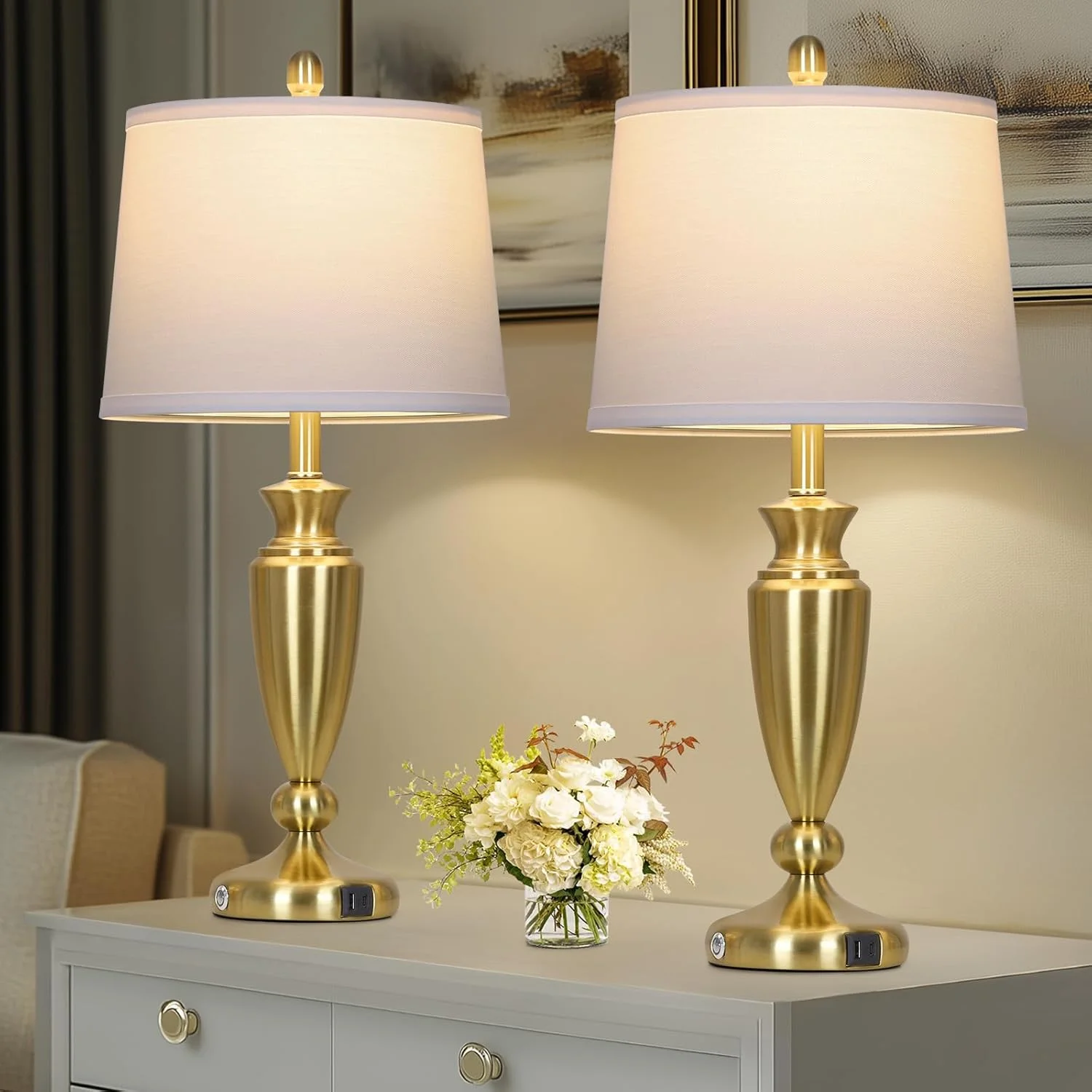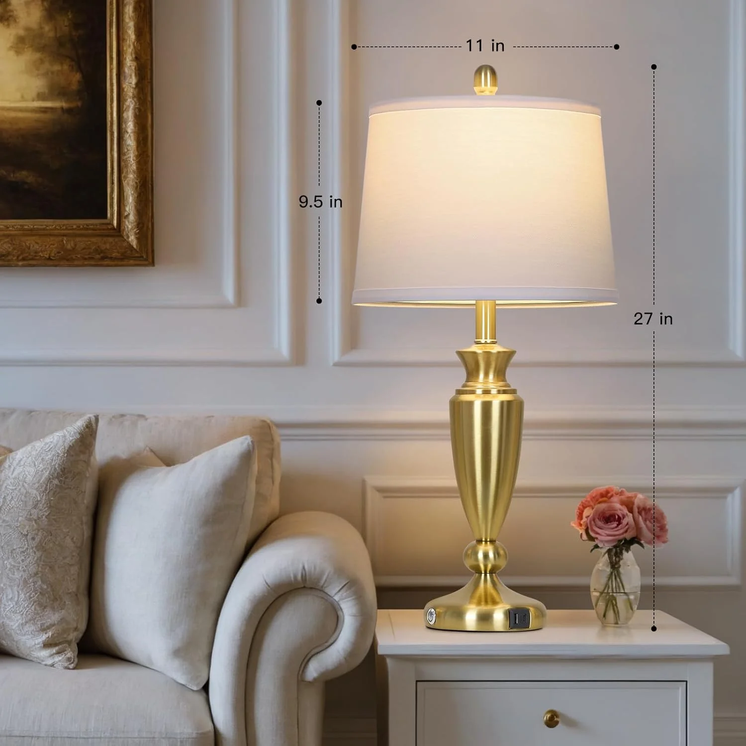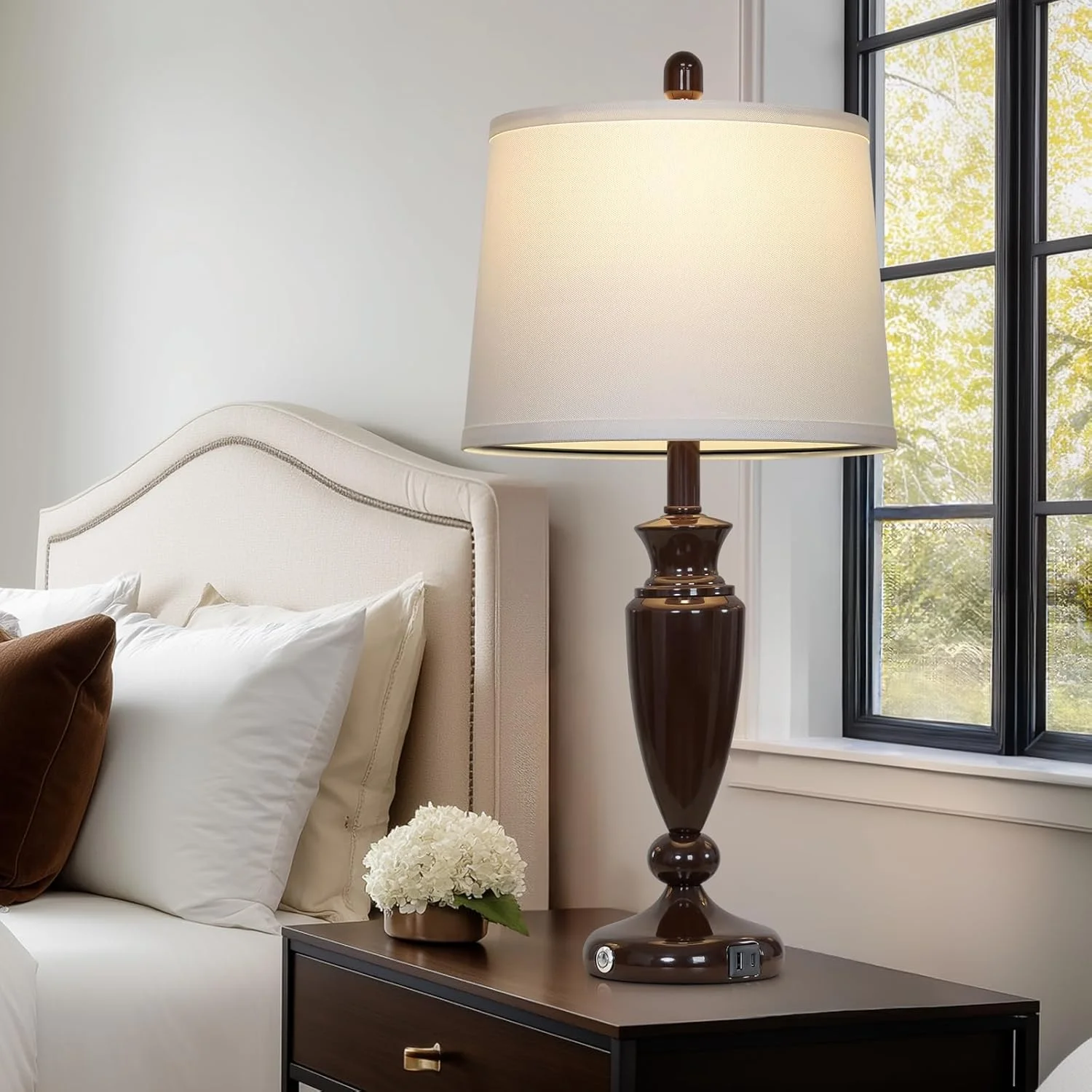 - ��Two LED Bulb and Upgraded Linen Shade��The usb table lamps comes with E26 LED Bulbs,800 lumens,2700k, with a 25,000 hour lifespan,it will save up to 90% energy. Natural linen white lampshade softens the light and provides comfortable and natural light, no flicker, no dazzle, has an effect on preserve eyesight. It's perfect decorative lamps to any living room, dining room, bedroom, entry or office.