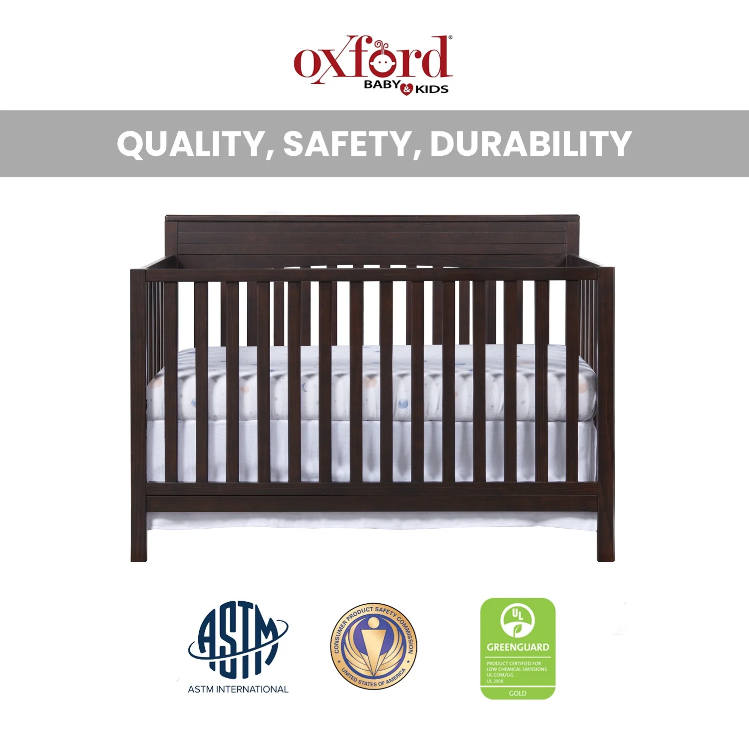 - SAFETY FIRST: Oxford Baby Nursery Furniture is made to the highest safety standards that meet those set by the Consumer Product Safety Commission (CPSC) and American Society for Testing and Materials (ASTM); Our furniture endures rigorous testing by third-party labs to guarantee compliance with U.S. and Canada market so you can rest assure that your child is sleeping in a safe sleep environment