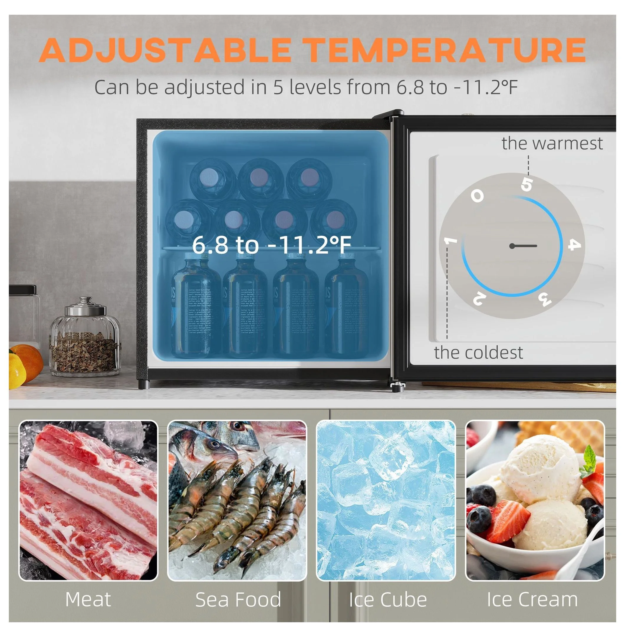 - ��Adjustable Temperature Control��: Customize the cooling temperature to your needs with 5 adjustable gears ranging from 6.8��F to -11.2��F using the convenient thermostat knob; ensuring optimal preservation for various items.