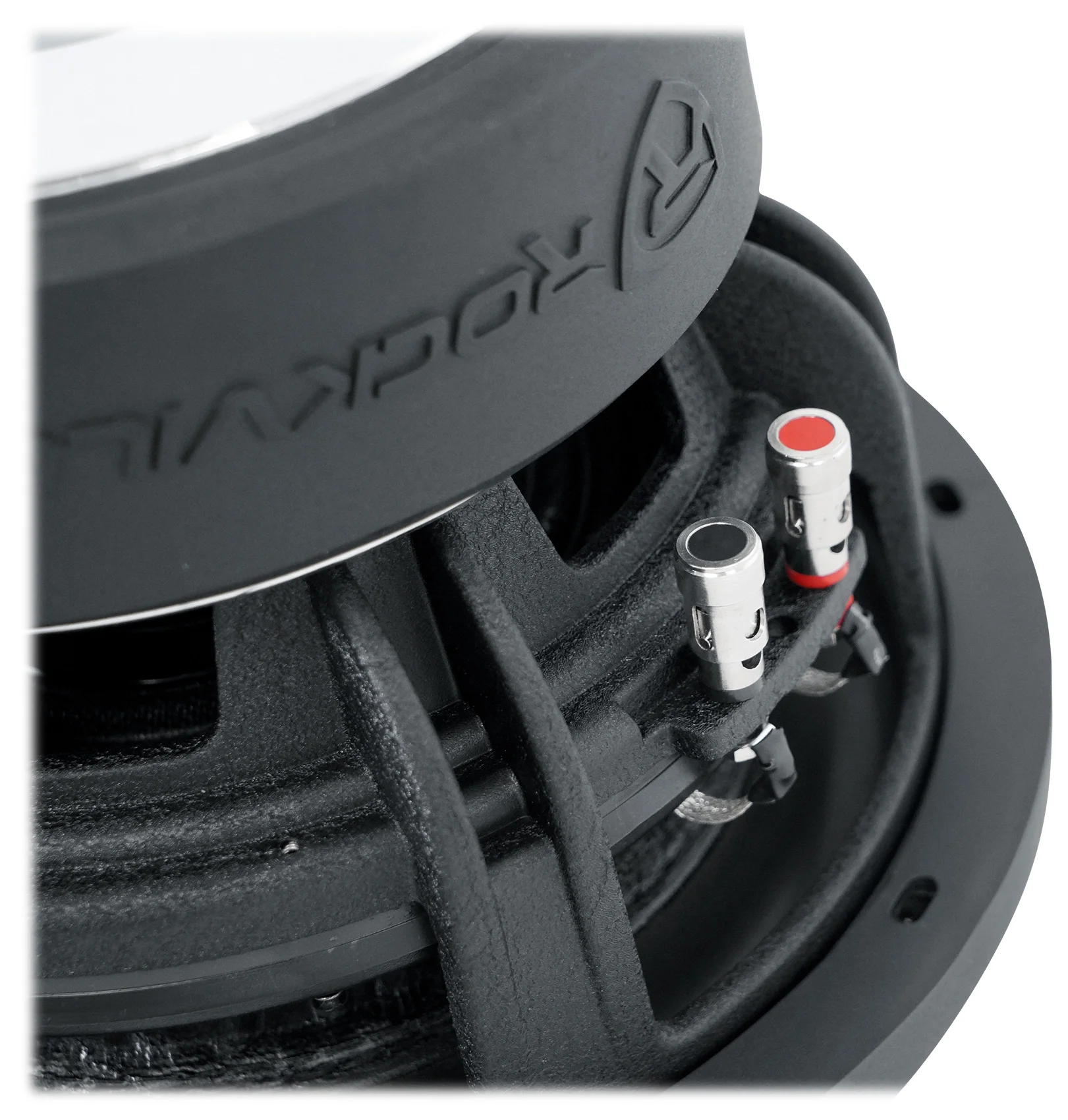 - Special Custom Rubber Boot Magnet Covers Make the Woofer Look Nice and Protects the Magnet. Custom Rockville Mounting Gasket Looks Beautiful and Makes it Easy To Mount the Subwoofer Air-Tight. High BL Magnetic Motor Gap. We use the highest grade black glue that handles extremely high temperatures which allows our woofer to handle even more power than they are rated. Nomex Spider provides tear resistance, strength and long-term reliability over regular cotton and poly cotton spiders