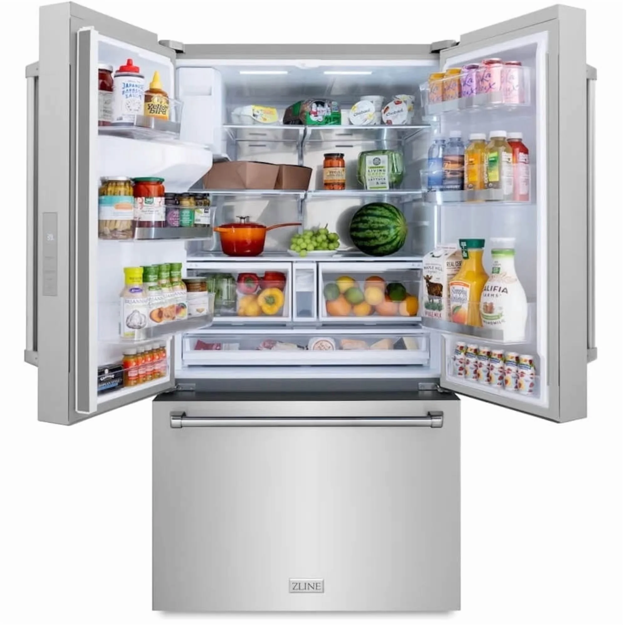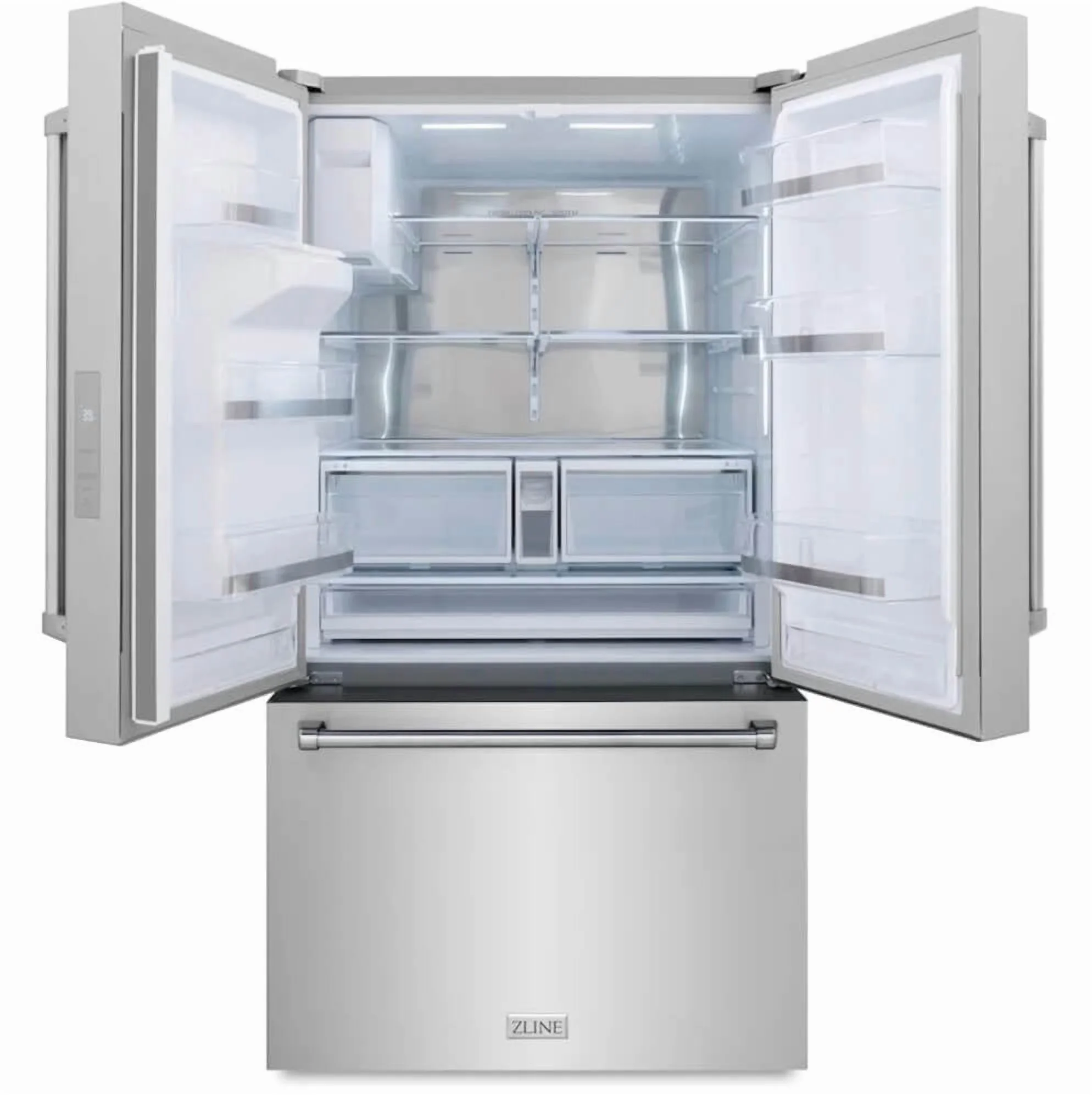 ZLINE 36 In. Standard Depth Refrigerator in Stainless Steel with Water Dispenser (RSM-W-36)- Dual Ice Makers - Dual Crisper Drawers - Spill-Resistant Glass Shelves - Full-Extension Freezer Drawers