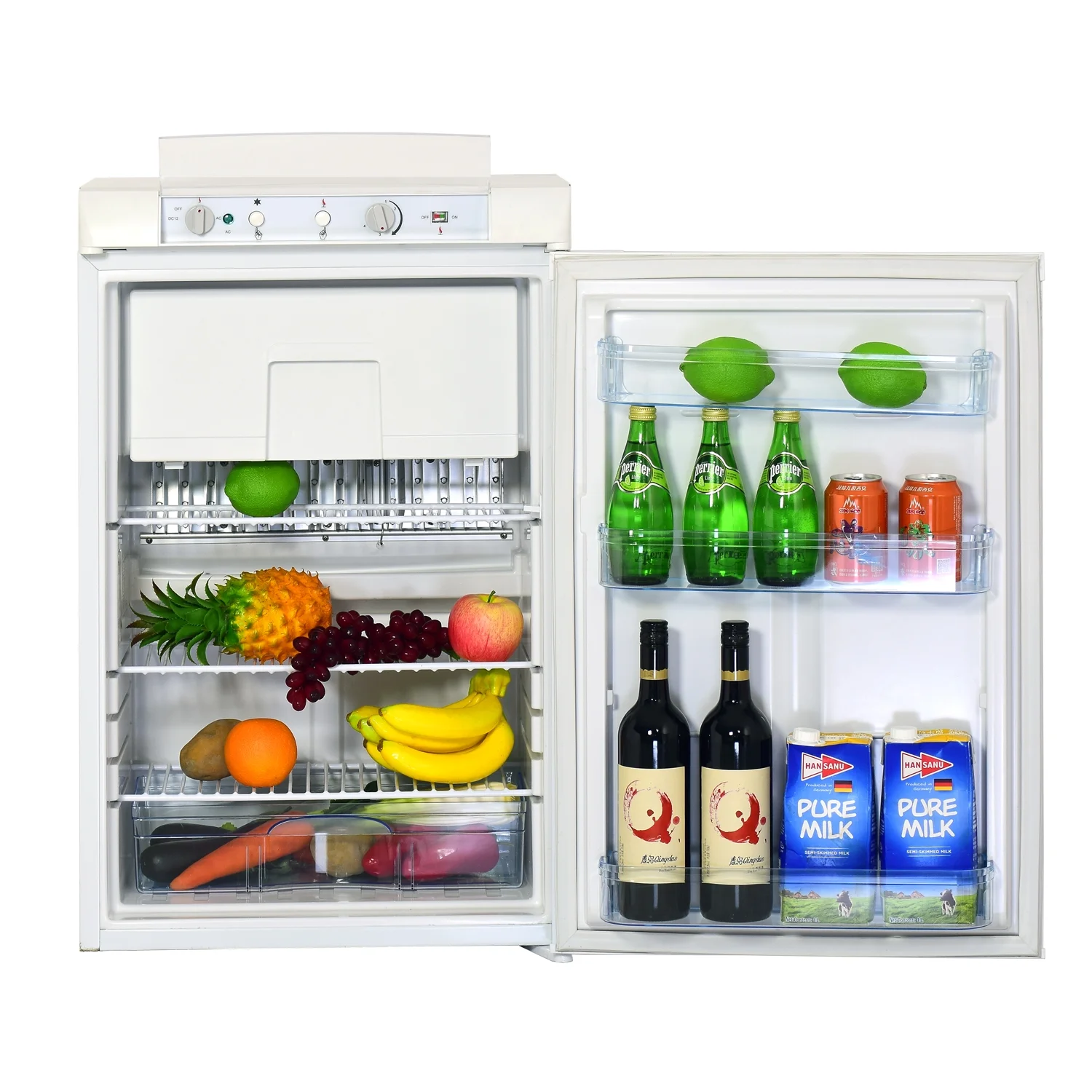 ��No Noise & Diversified Storage Space��0 dB silent running with an advanced absorption cooling system, so you can rest easy. Equipped with removable shelves and crisper drawer, the refrigerator maximizes the use of internal space and can meet your various storage needs.