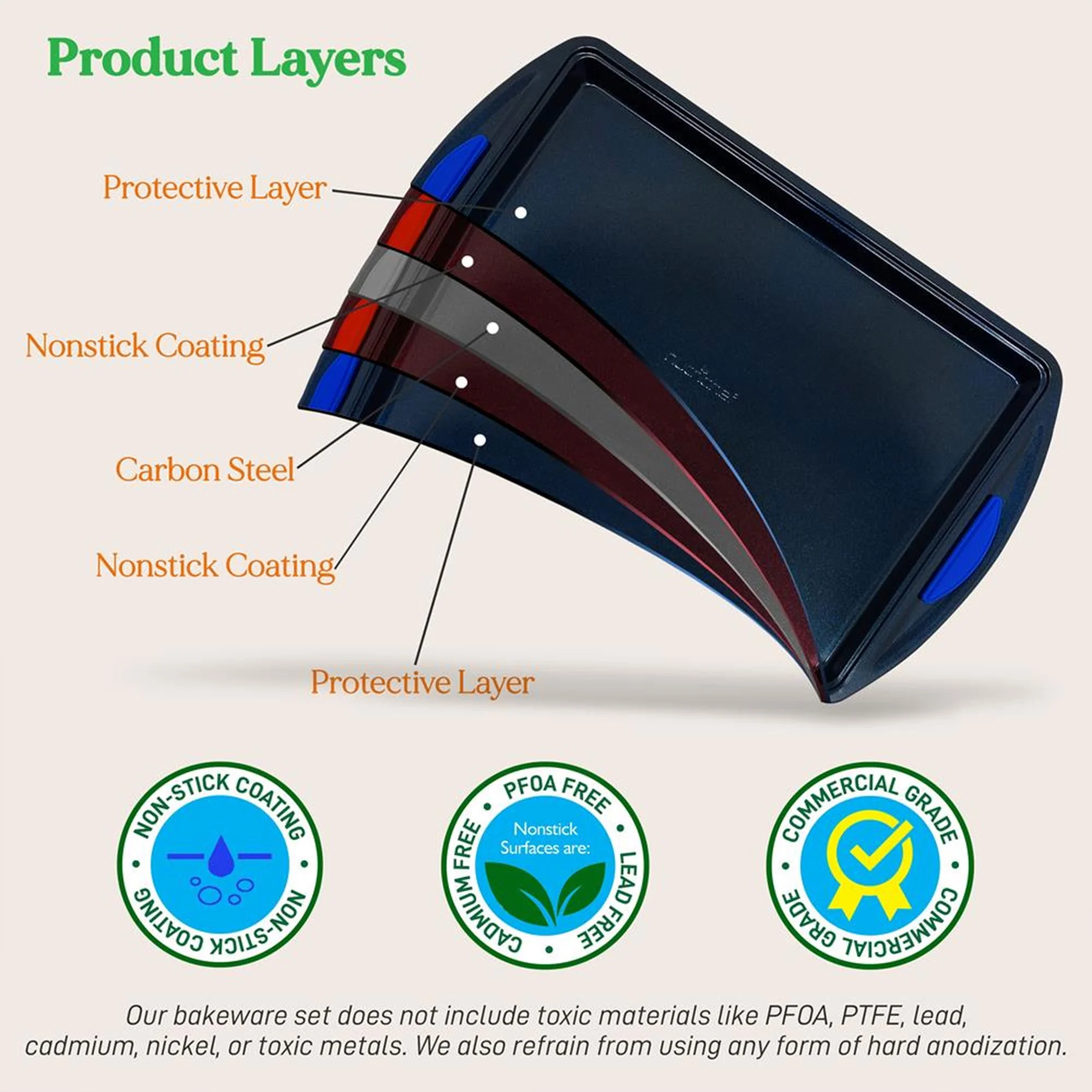 - Wide pan design makes it easy to stack and store the 10-piece bakeware set