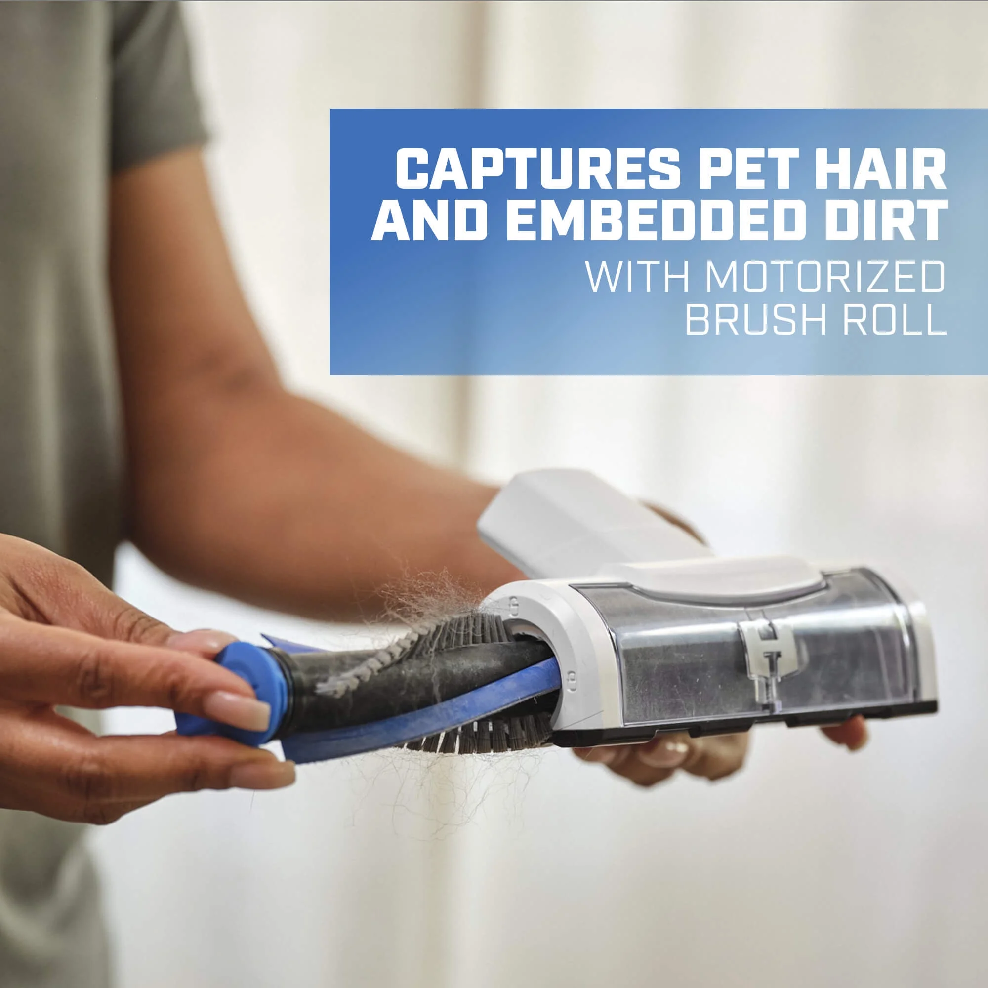 - Captures Pet Hair & Embedded Dirt with Motorized Brush Roll