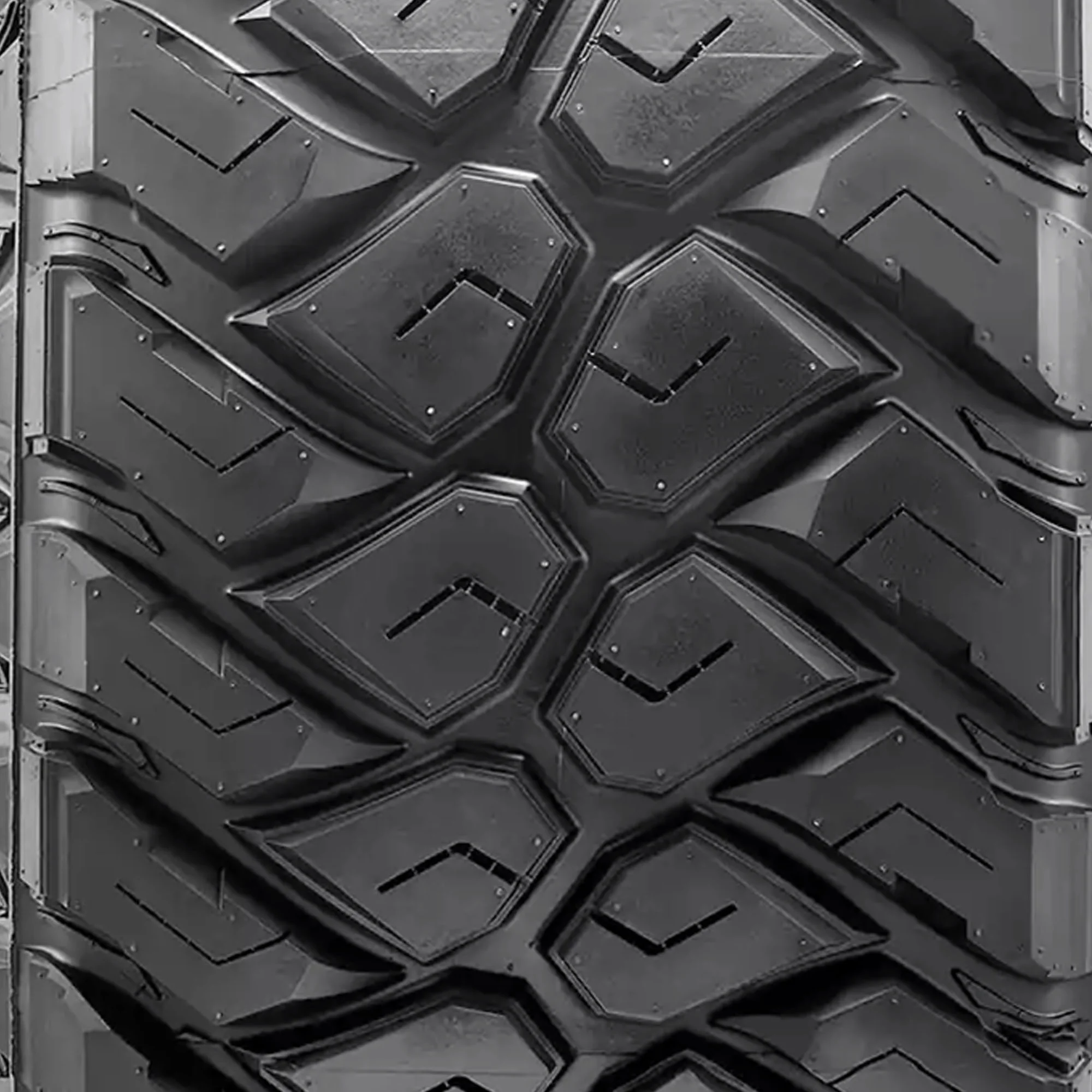 - Stone and mud ejectors within the tread improve self-cleaning performance and minimize rock retention for consistent traction and performance