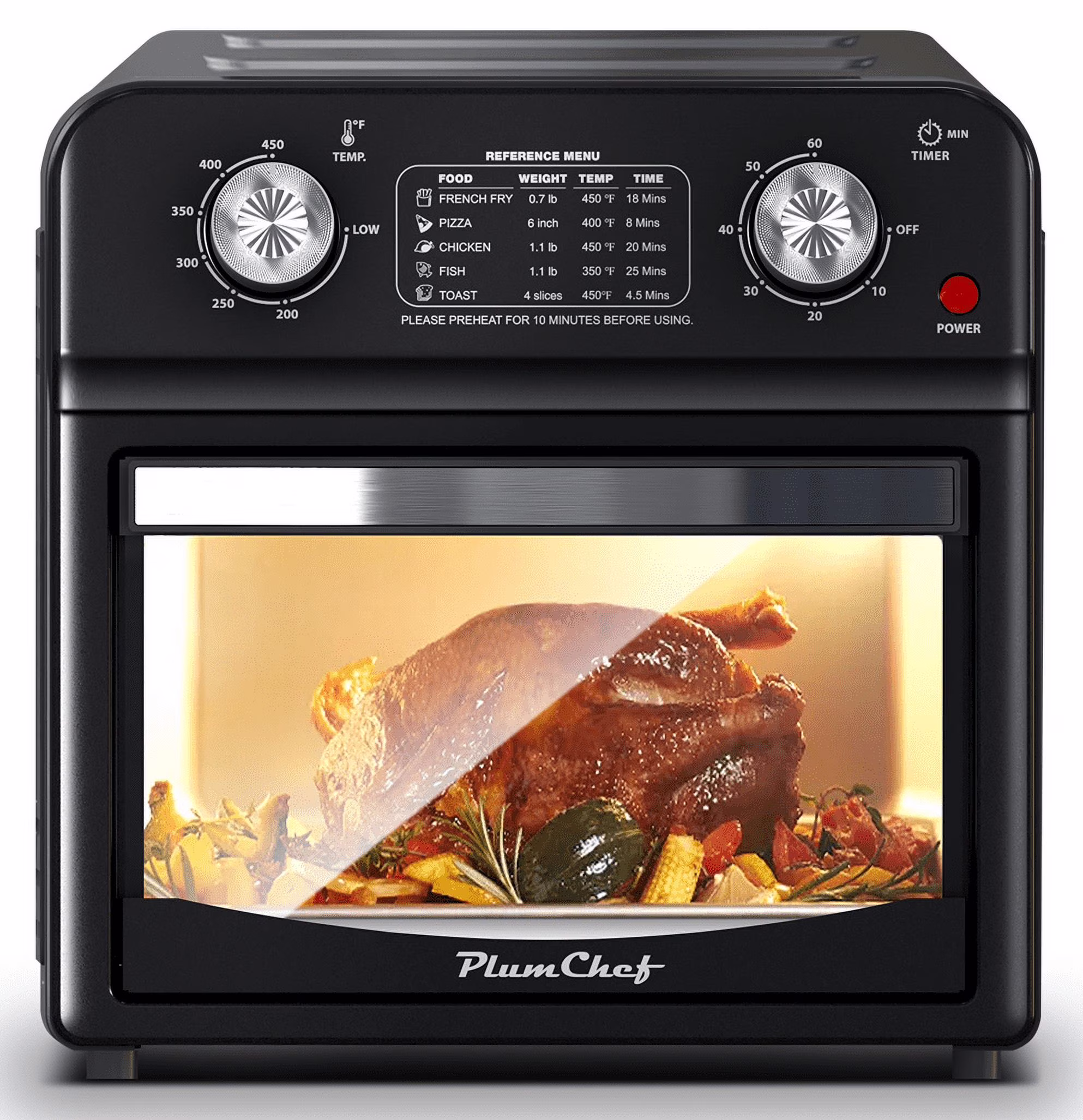 Plum Chef 13 Quart Air Fryer, Large Air Fryer Oven Toaster Combo W/ 60 Minute Timer, Convection Oven Countertop, Accessories, UL Certified, Nonstick, Accessories Included, 1500W, Sliver