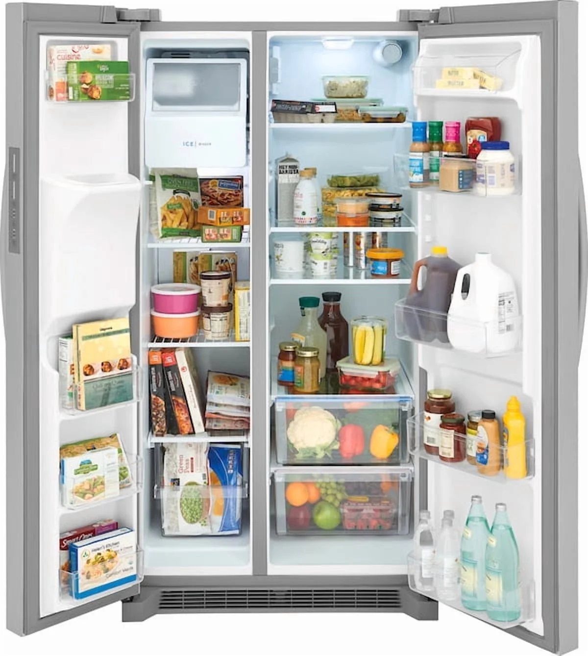 - This 26 cu. ft. side-by-side refrigerator offers a generous 25.60 ft of net total capacity to accommodate your family's needs.