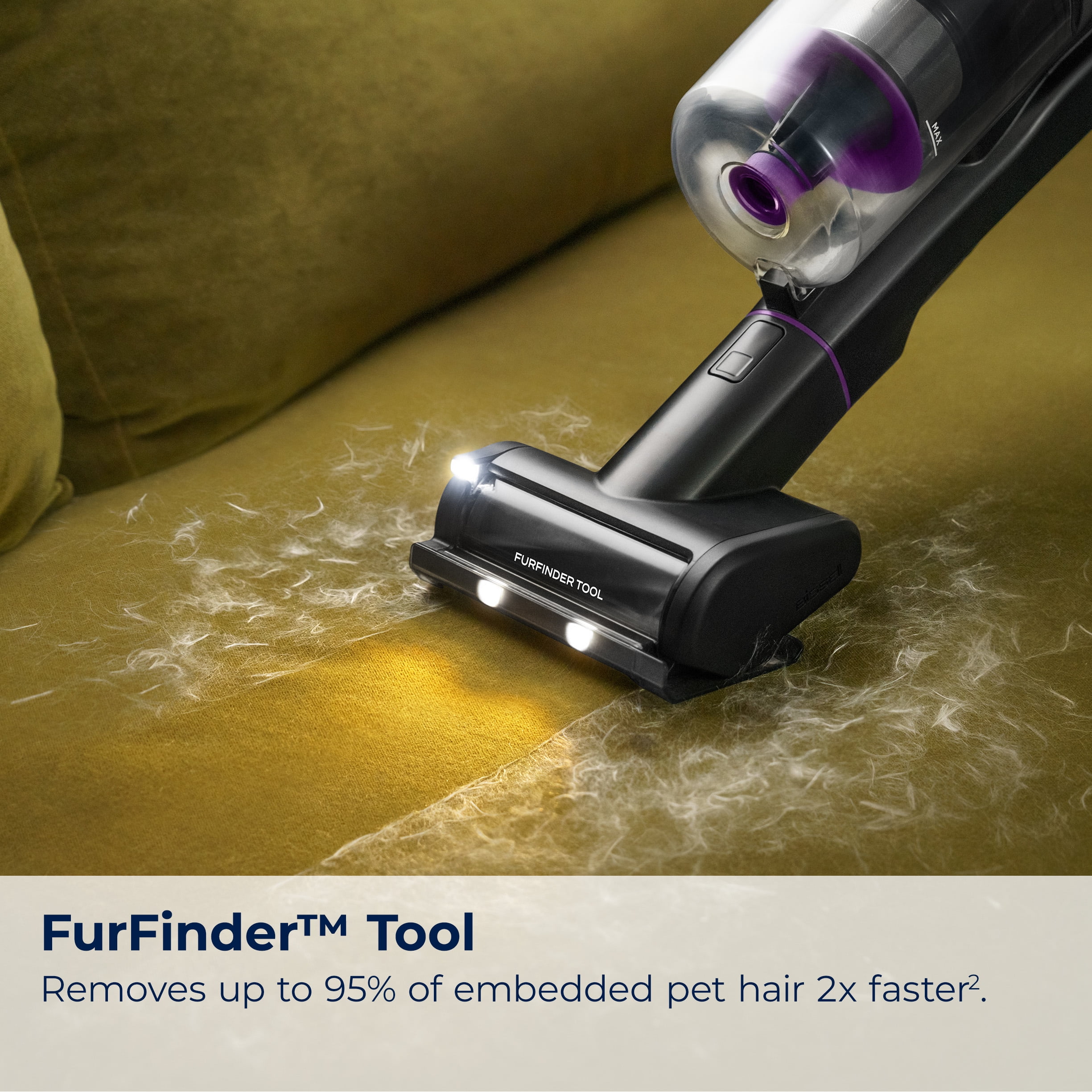 - NO MORE MISSED MESSES. See 8x more pet fur with FurFinder? Headlight Technology.
