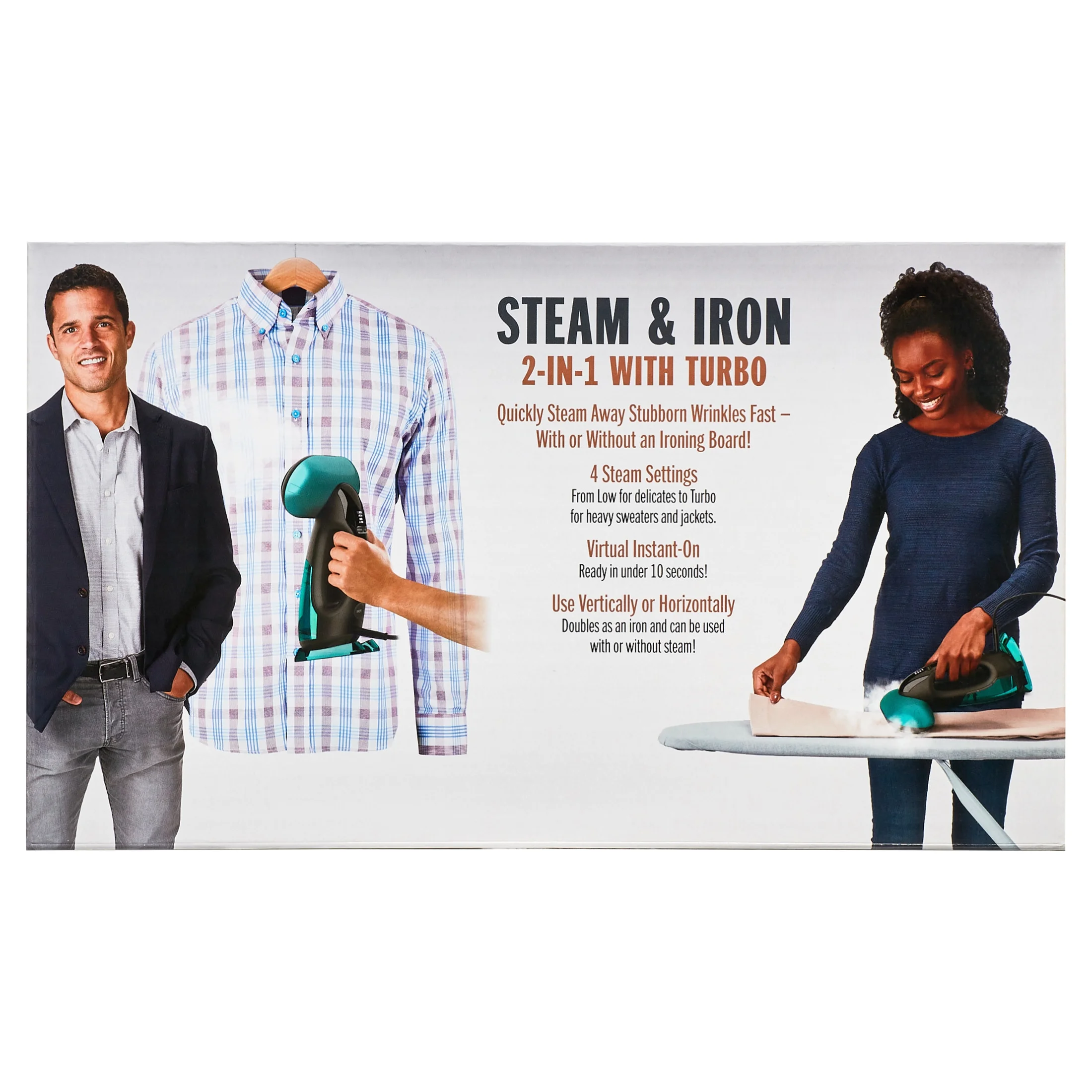 - Turbo Handheld Steamer: This 2-in-1 steamer doubles as an iron to quickly and easily release wrinkles. Use vertically as a steamer or horizontally as an iron. Instantly smooth out wrinkles
