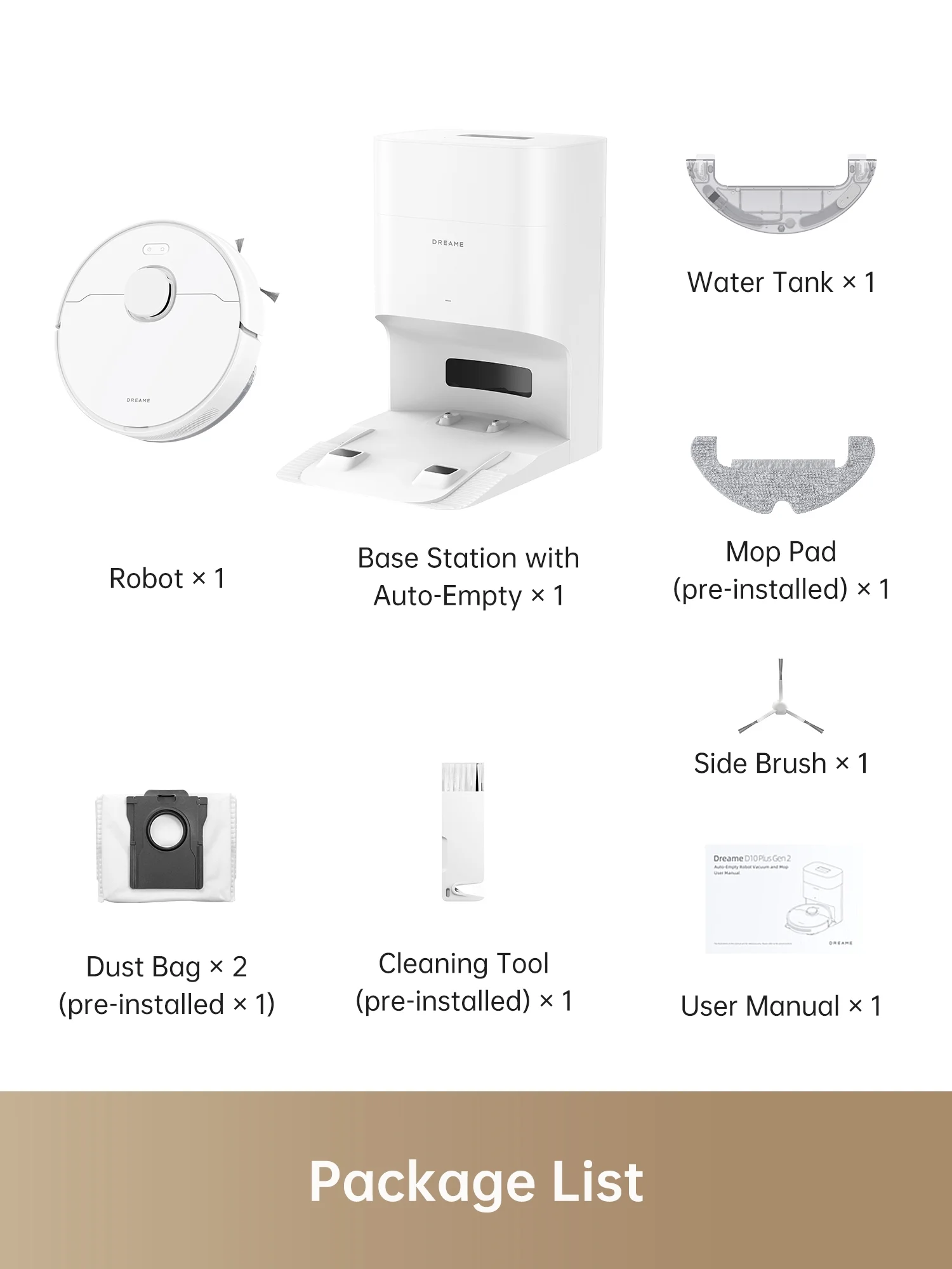 Brand: Dreame Model Name: D10 Plus Gen 2 Special Feature: Anti-Collision, Automatic Dust Collection, LiDAR Navigation, Precision Laser Mapping & Navigation, Washable FilterAnti-Collision, Automatic Dust Collection, LiDAR Navigation, Precision Laser Mapping & Navigation, Washable Filter Color: White Product Dimensions: 17.75"L x 13.99"W x 16.8"H