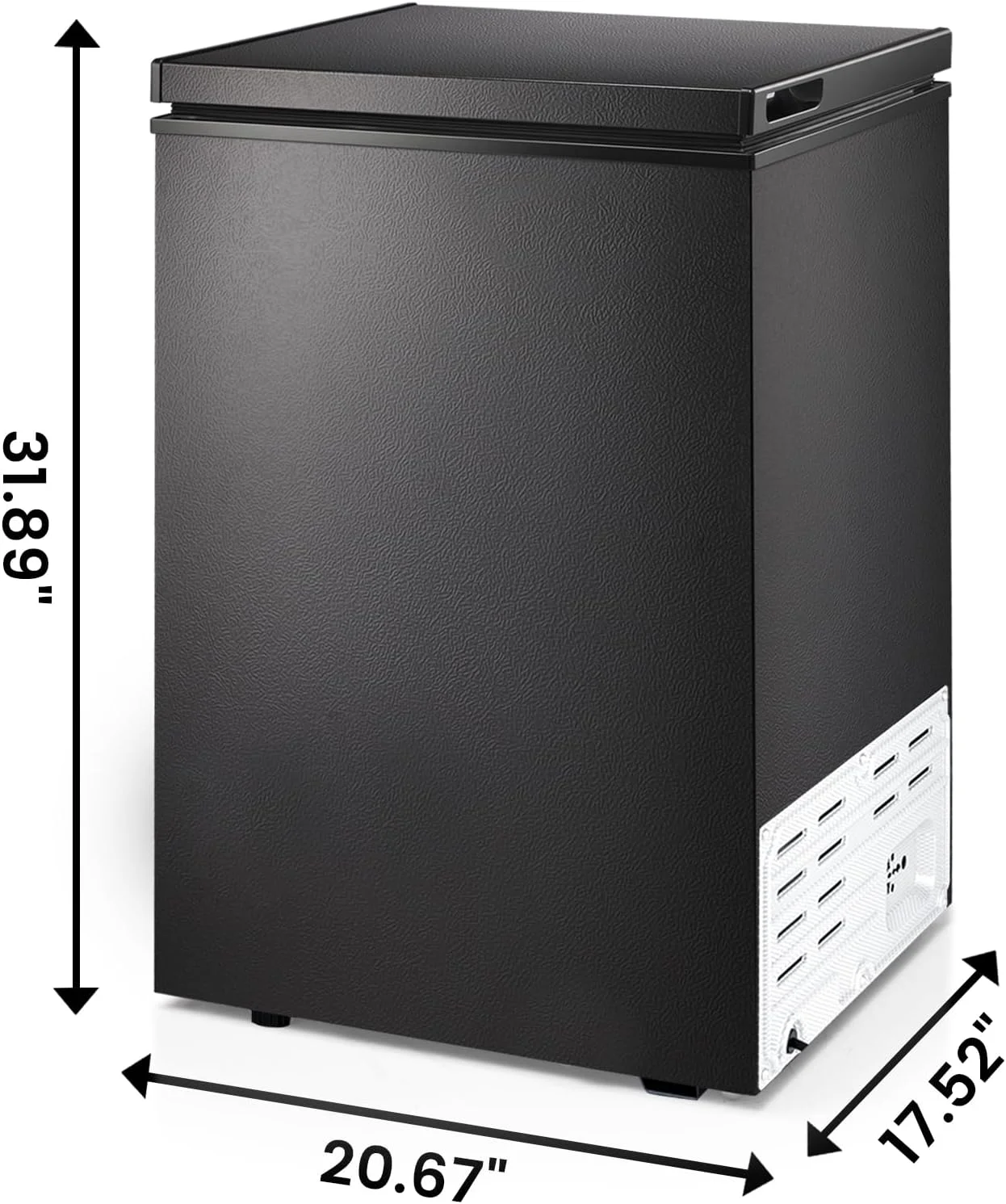 - The Spacious Design: Havato chest freezer Measuring 17.73 "(W) x 20.67 " (D) x 31.89 " (H), is perfect for smaller rooms or spaces.