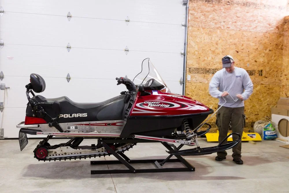 - Lifts a snowmobile up to 27.25in high for service and maintenance