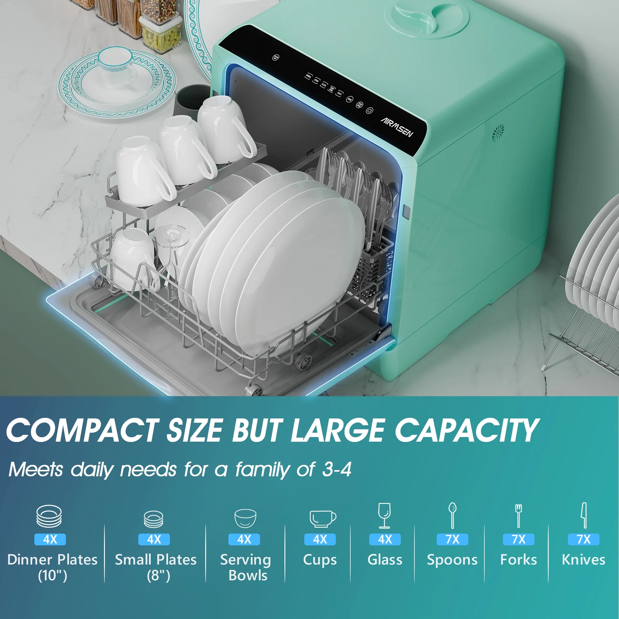 AIRMSEN AE-TDQR03 Portable Countertop Dishwasher