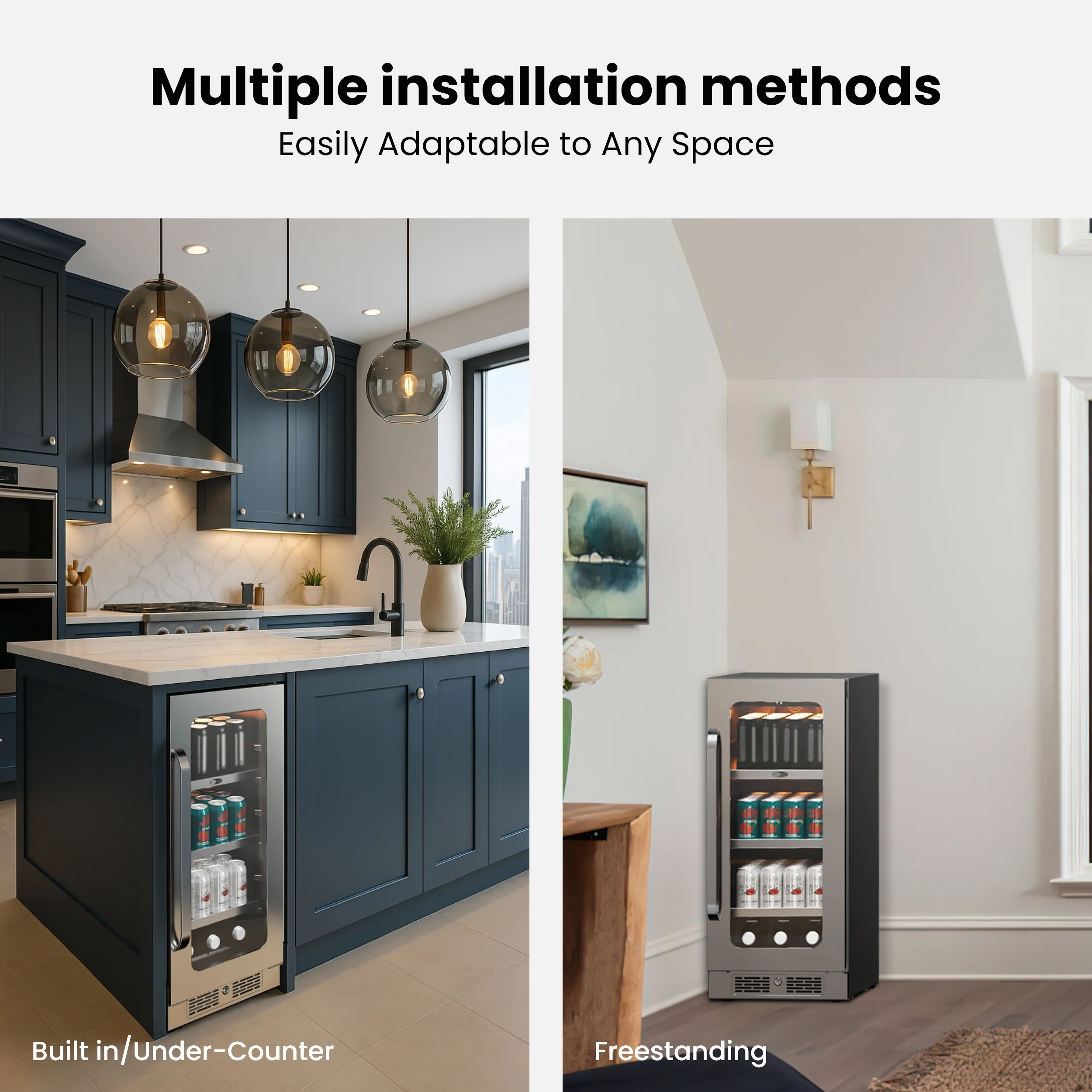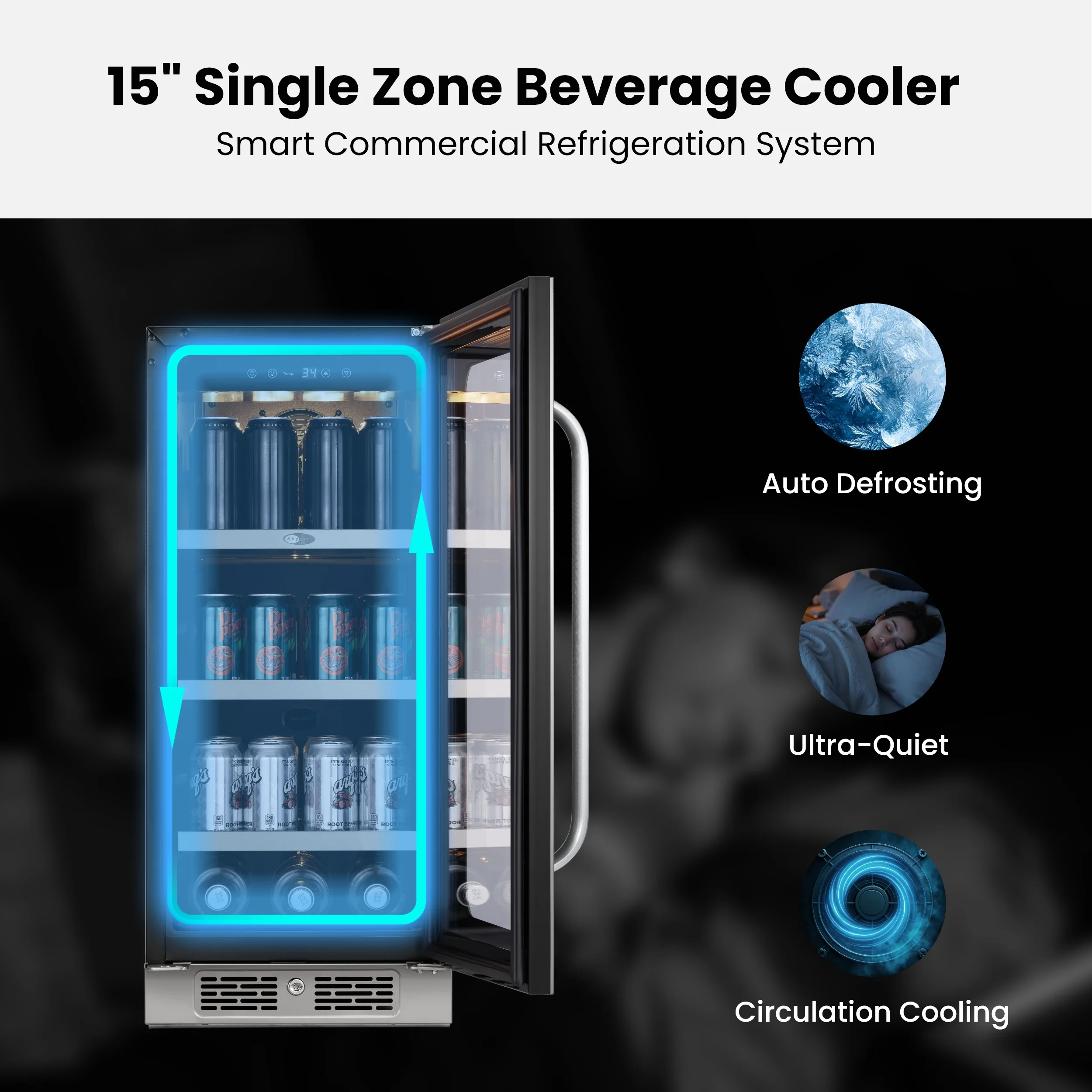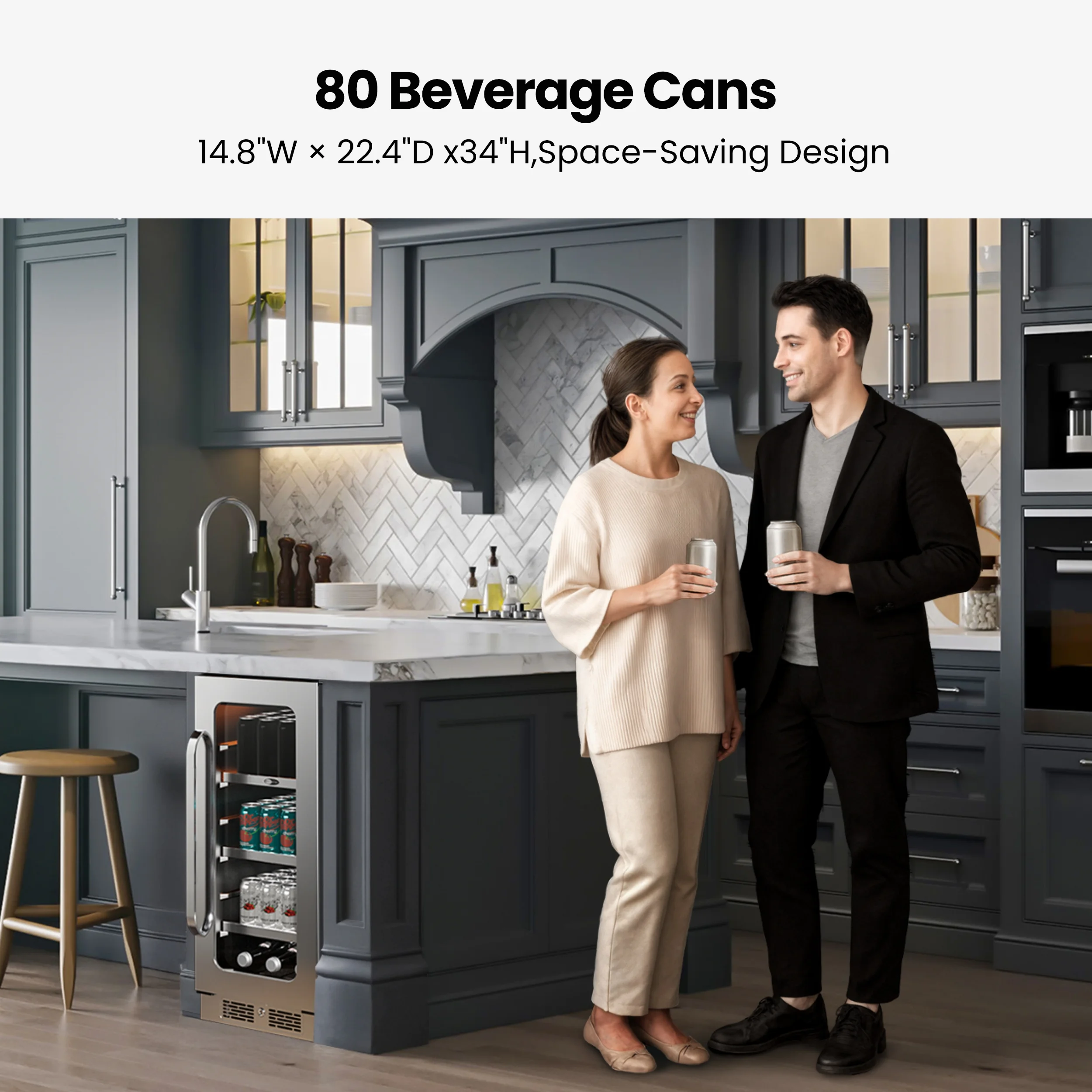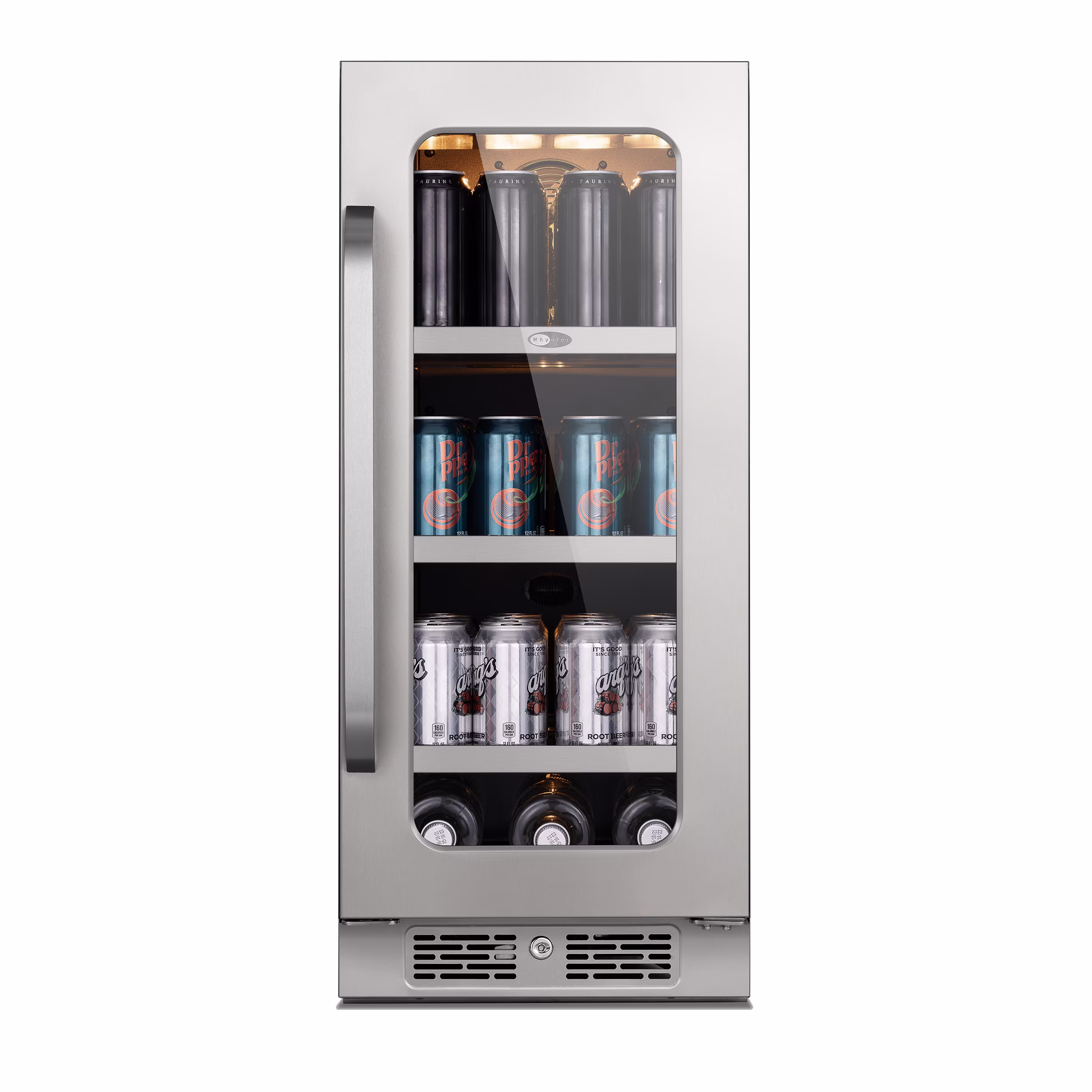 - Spacious and Flexible Capacity: 15 inch Beverage Cooler �C Features 3.0 cu.ft. storage and fits 80 standard 12-oz cans. 3 adjustable and spill-proof tempered glass shelves. Perfect for preserving beer, sodas & energy drinks.