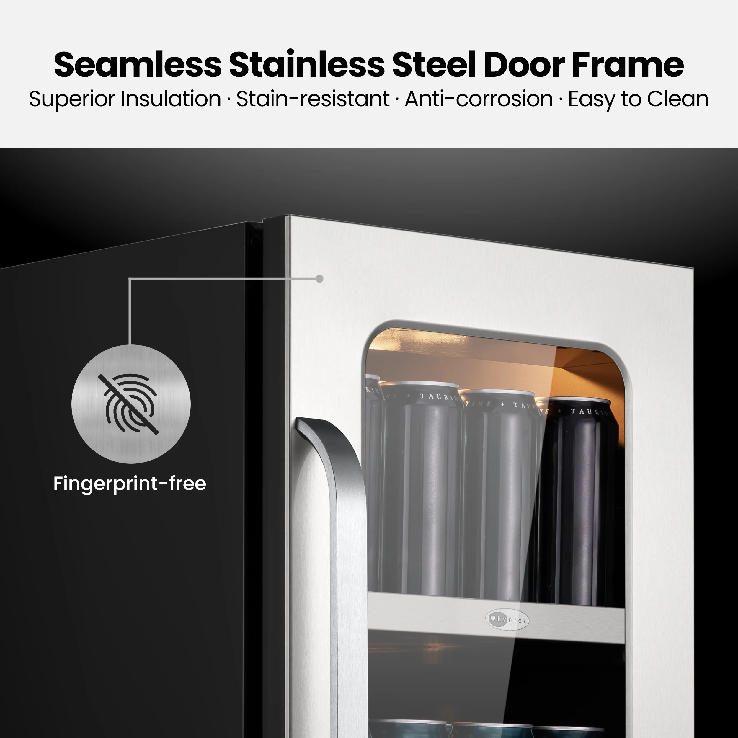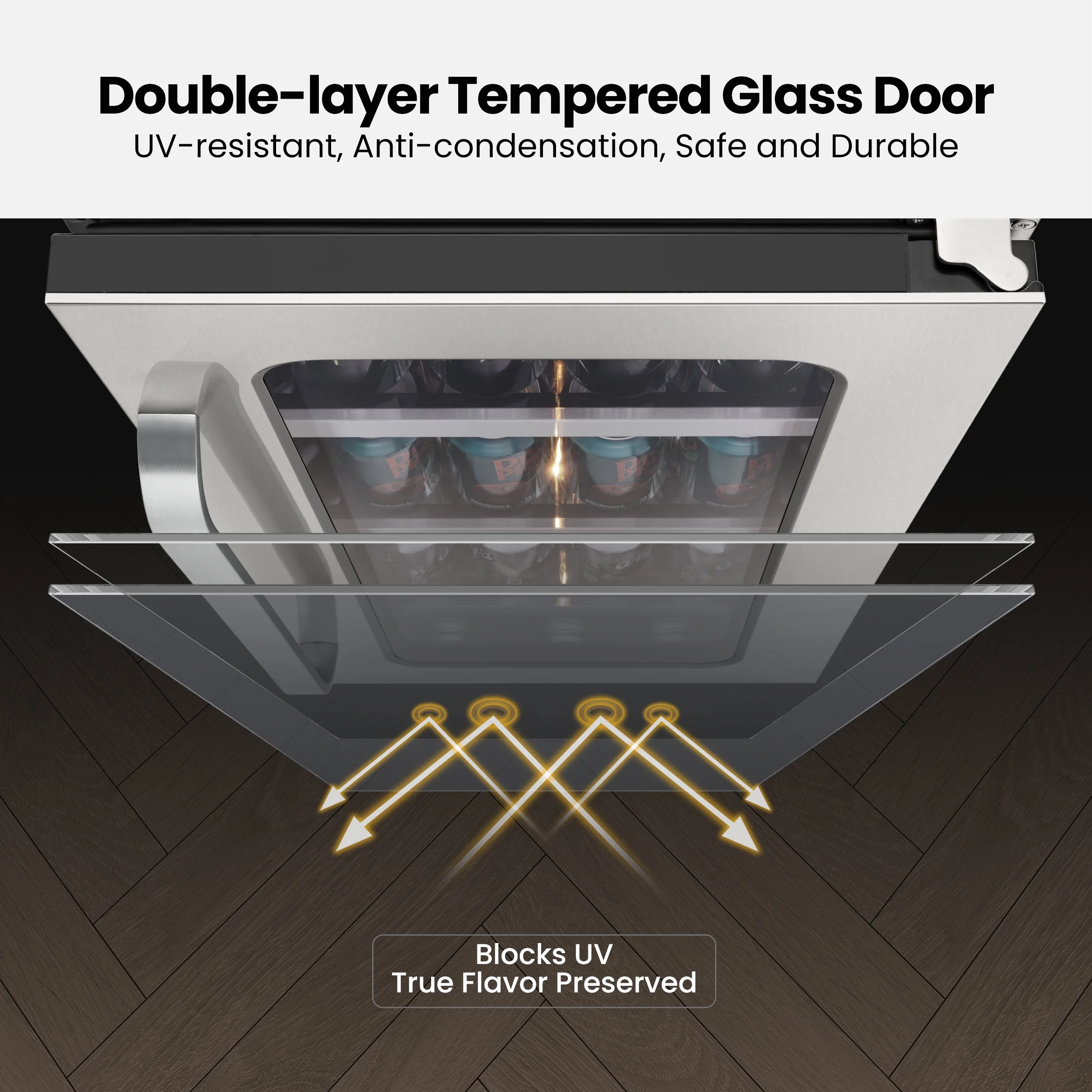 - Advanced Insulation Design: The Beverage cooler features a seamless one-piece frame, fingerprint-proof stainless steel curved door with dual-pane UV-resistant glass and thickened insulation seals, reducing energy consumption.Advanced sealing technology prevents cold loss.The appearance is elegant and attractive, and it is durable and long-lasting.