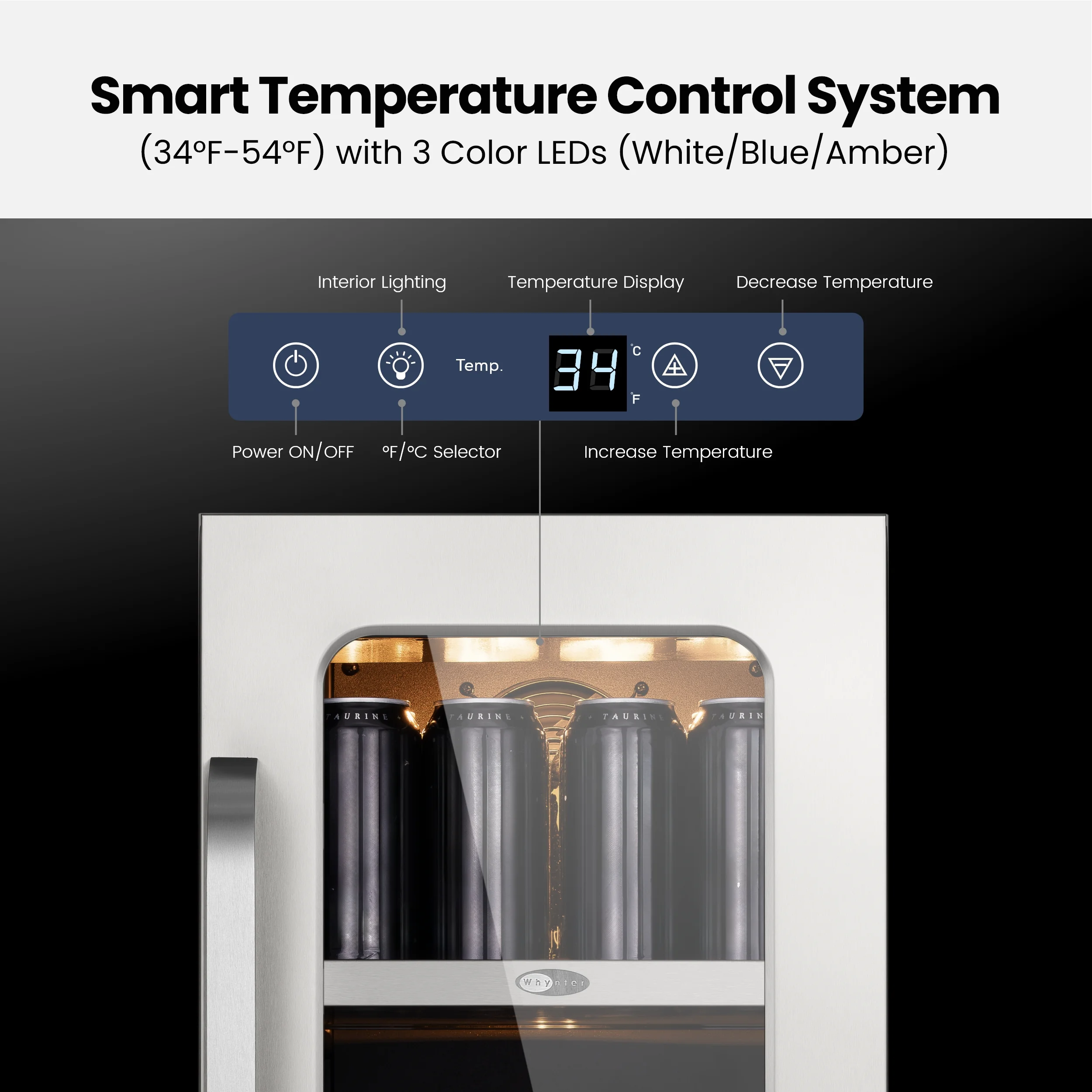 - Precise Temperature Control: The digital temperature control panel is adjustable (34-54 �H) with an accuracy of 1 �H. The internal fan-forced circulation ensures that the temperature difference inside the cabinet is less than 1 �H. The smart temperature memory function automatically restores your settings after a power outage, ensuring your beverages' flavor. This advanced beverage fridge features built-in dual temperature probes to ensure accurate and consistent cooling performance. The intelligent system continuously monitors and adjusts temperatures, keeping your drinks perfectly chilled at all times.