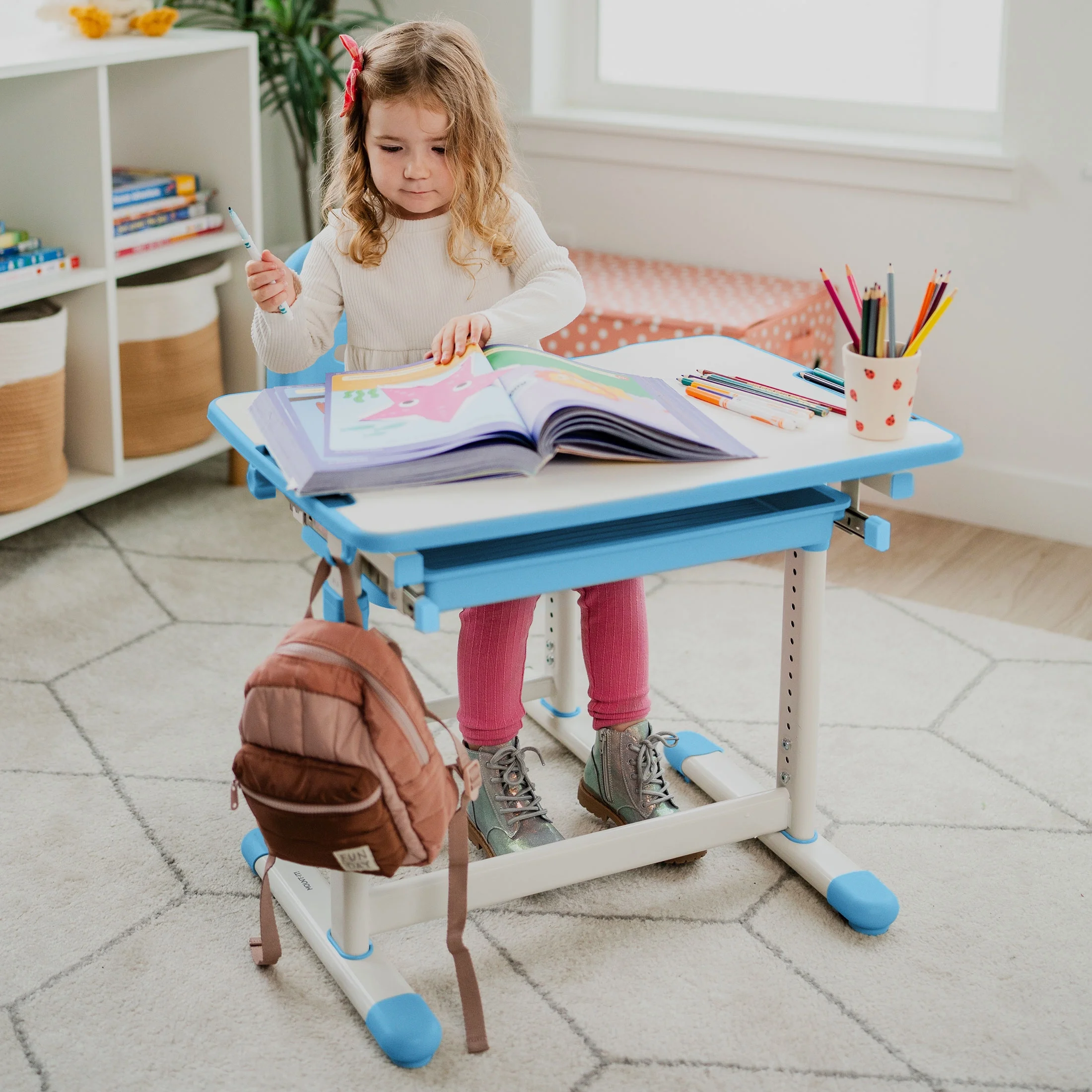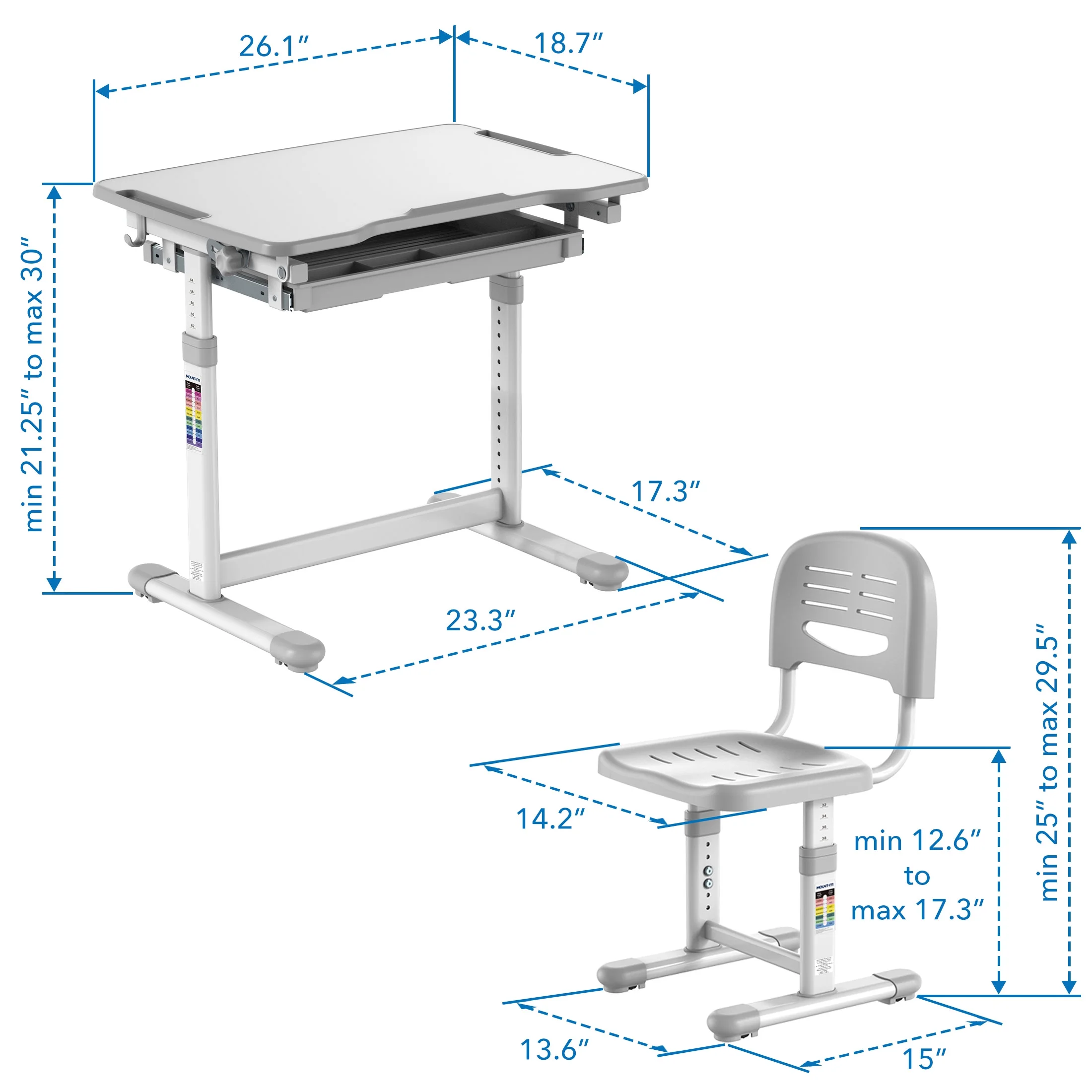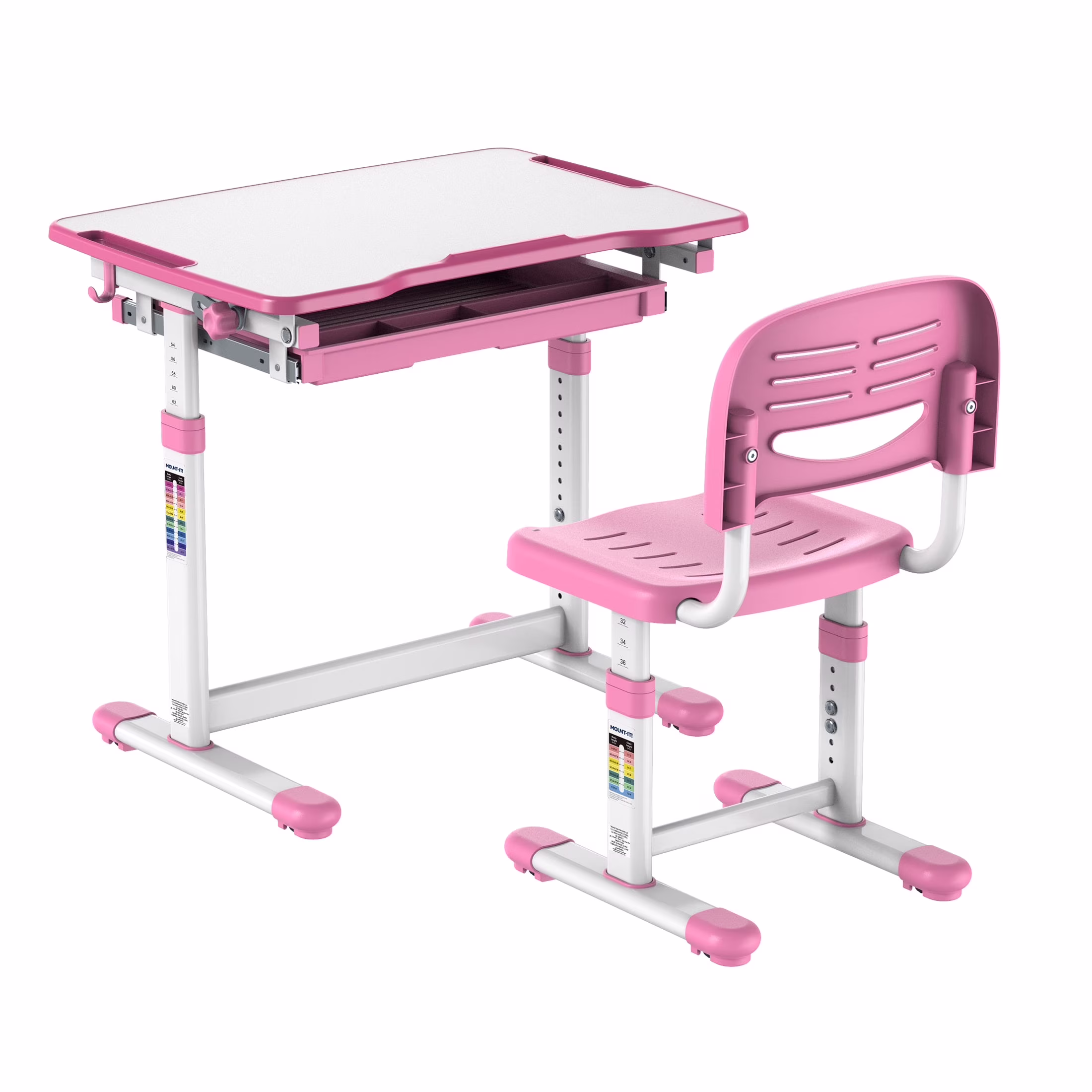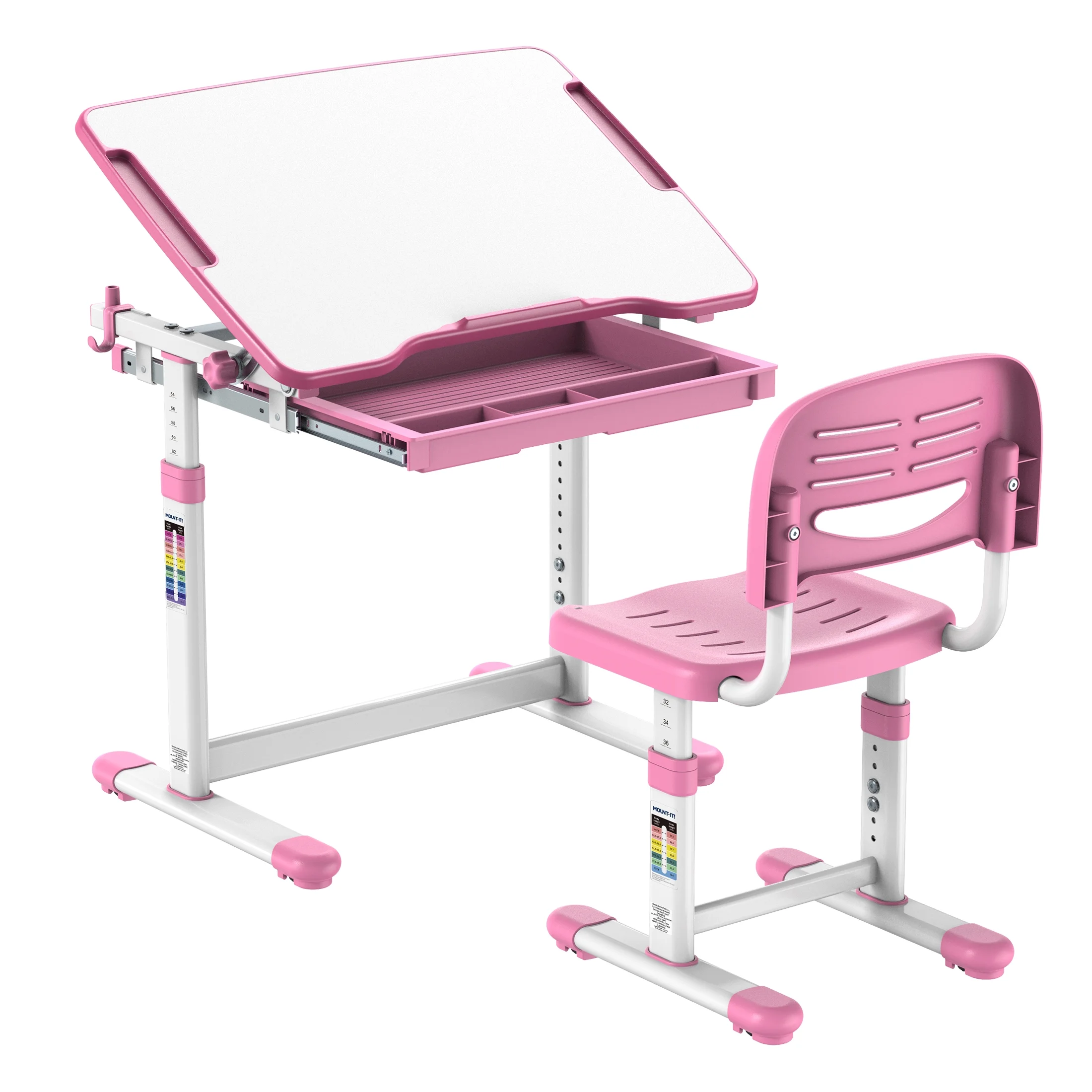 - Height adjustable desk and chair set is ideal for children ages 3 to 10