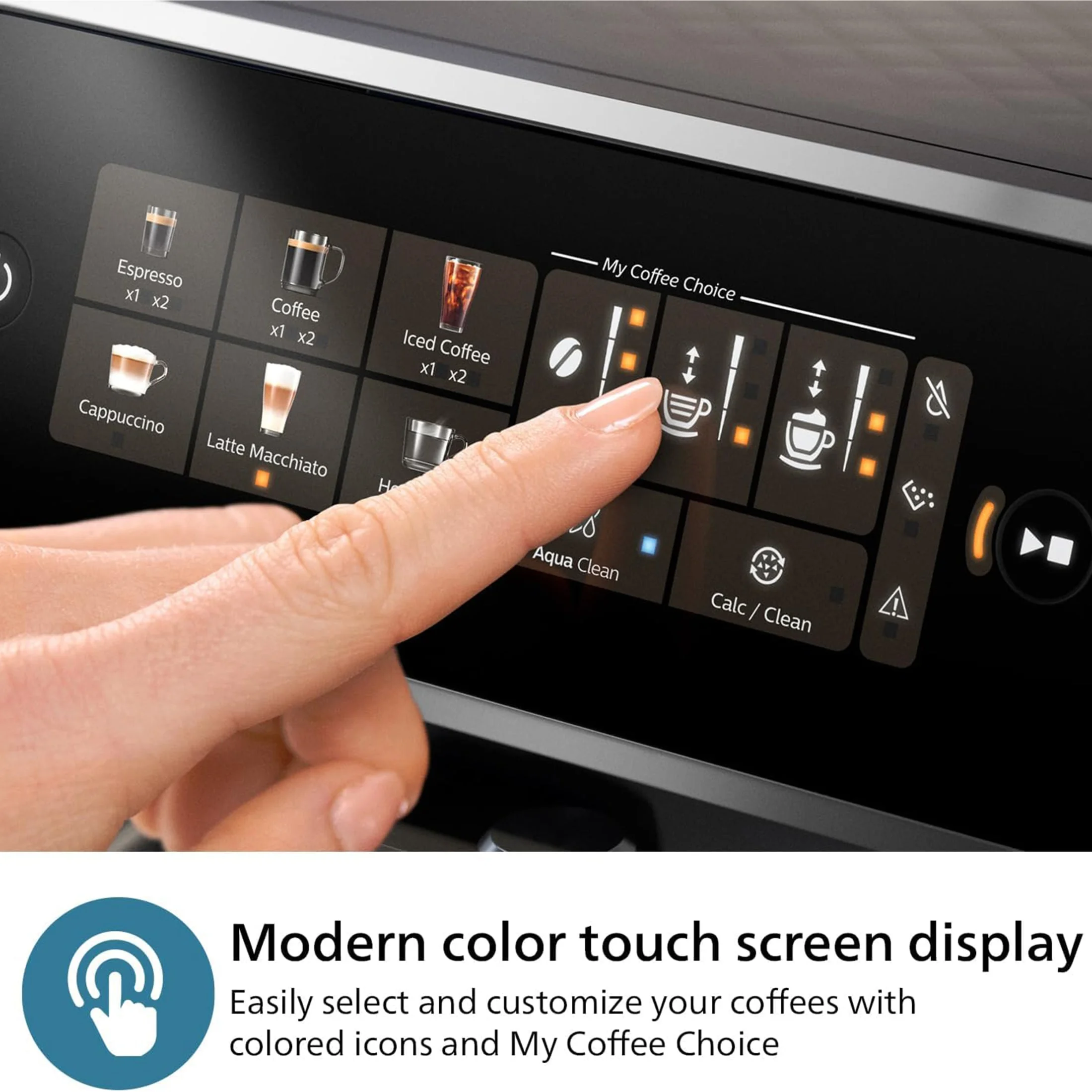 - INTUITIVE COLOR DISPLAY: Easy drink selection with modern color touch screen display, visible even in bright sunlight or dim light.