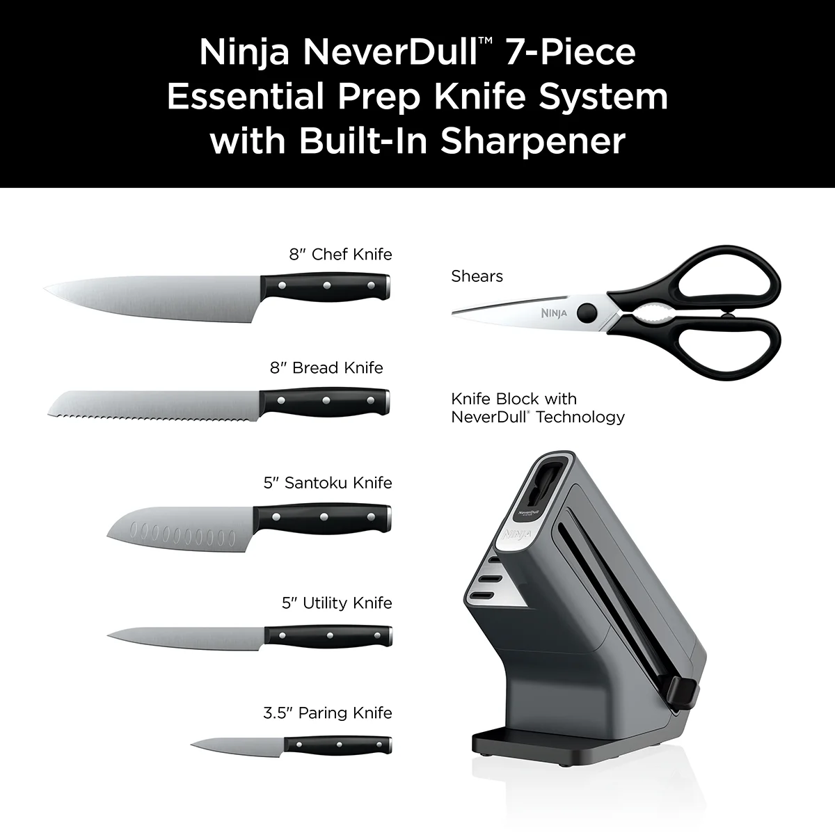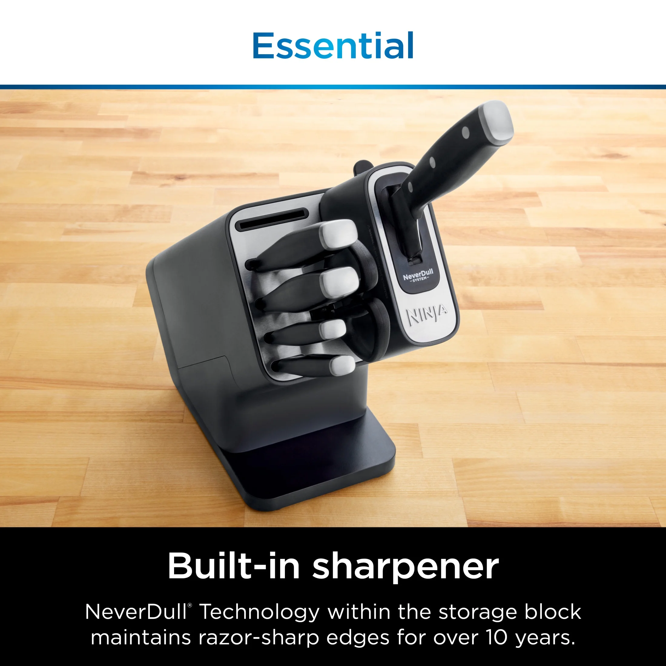 - BUILT-IN SHARPENER: NeverDull Technology is conveniently built into the storage block.