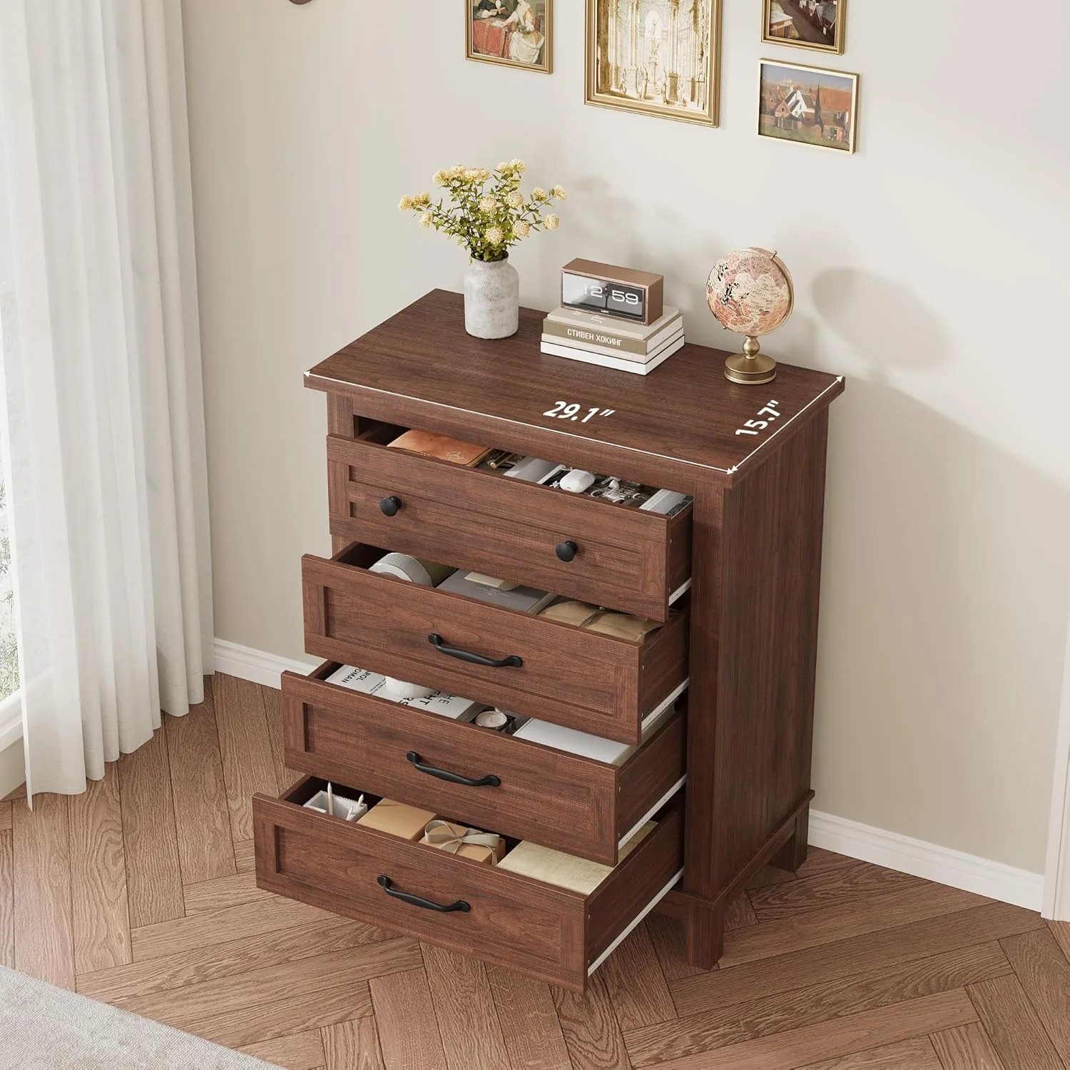 - Ample Storage: Measuring 15.7"D x 29.1"W x 34.8"H and featuring four extra-deep drawers, this dresser easily accommodates all your daily essentials. The spacious top is perfect for displaying small items, lighting, or decorative items to enhance your room's style.