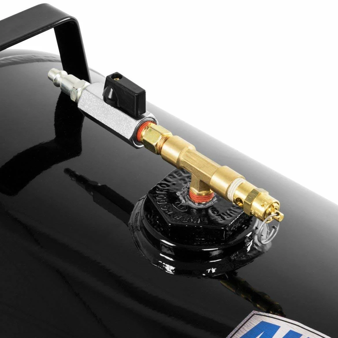 - 1/4-turn tank drain valve for quick and low-maintenance, upkeep, and connection to compressor