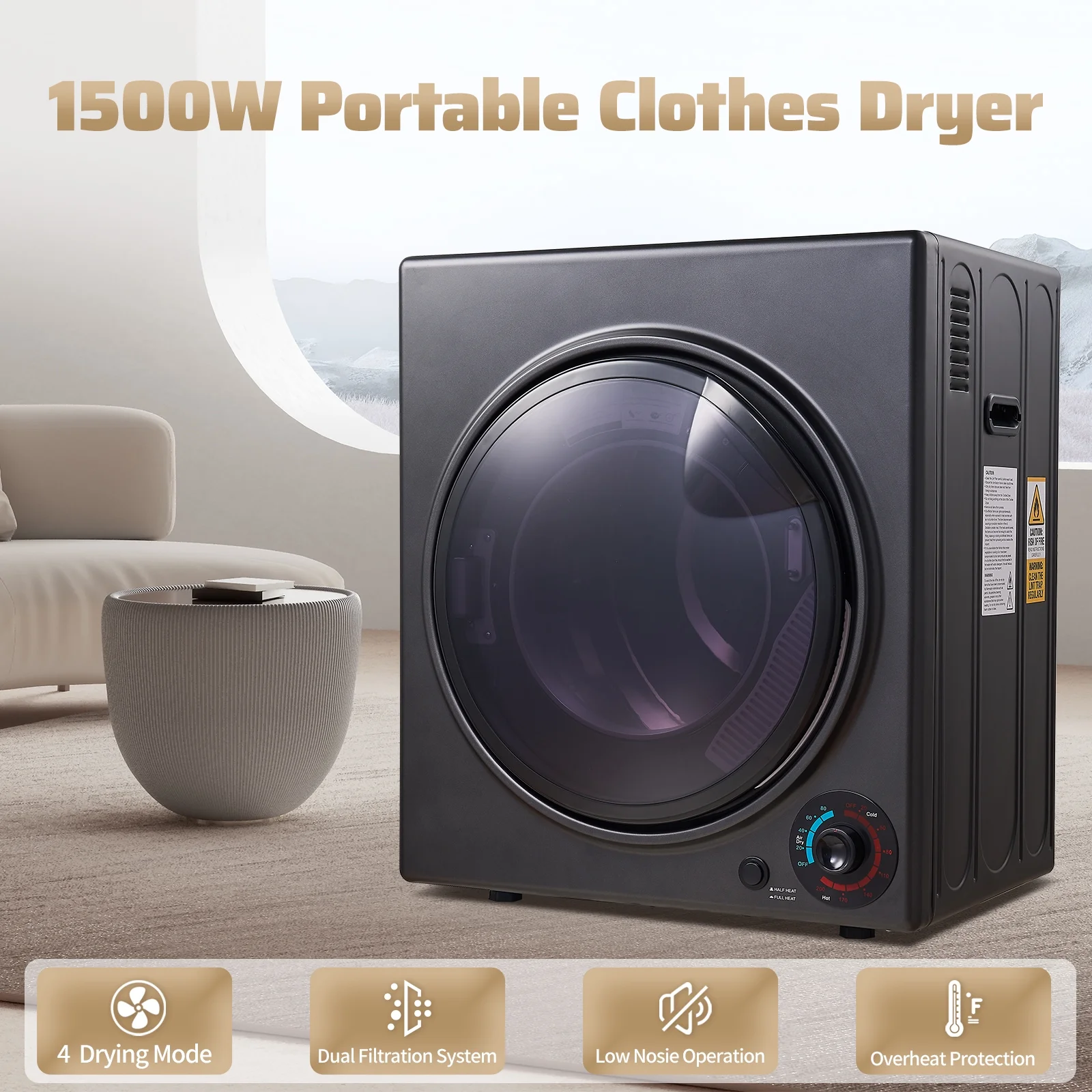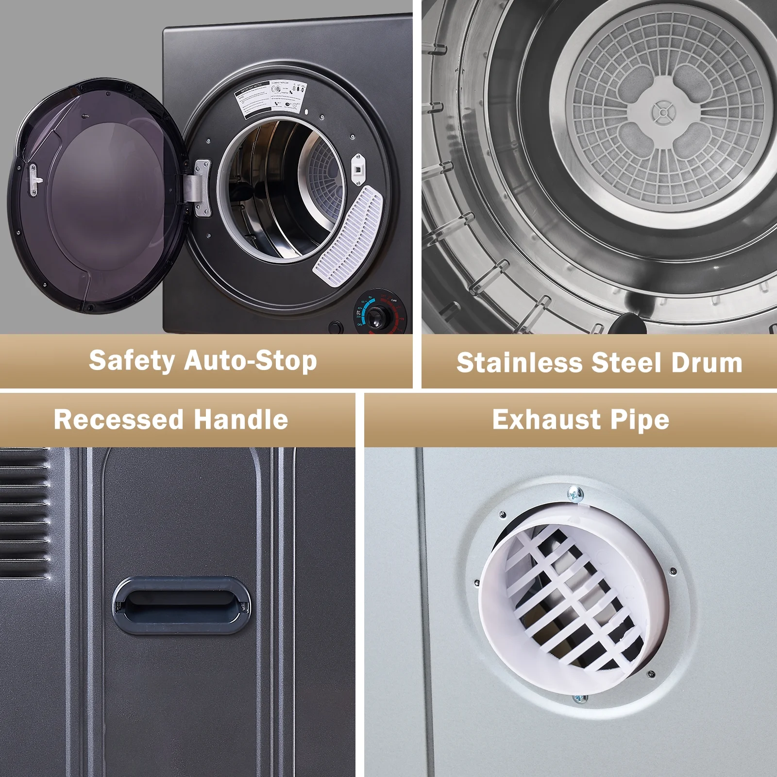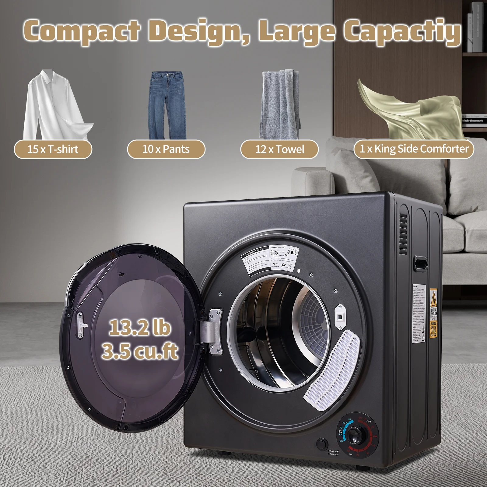 - ?��Compact Power Dryer�� Featuring 1500W energy-efficient motor and 3.5 cu.ft capacity, it dries clothes quickly while saving electricity��perfect for daily use in small households. Ideal for tight spaces like RVs, apartments, and offices. Operating at standard 120V with ETL certification for safety, it includes a removable lint filter and mounting bracket to simplify installation and cut energy costs.