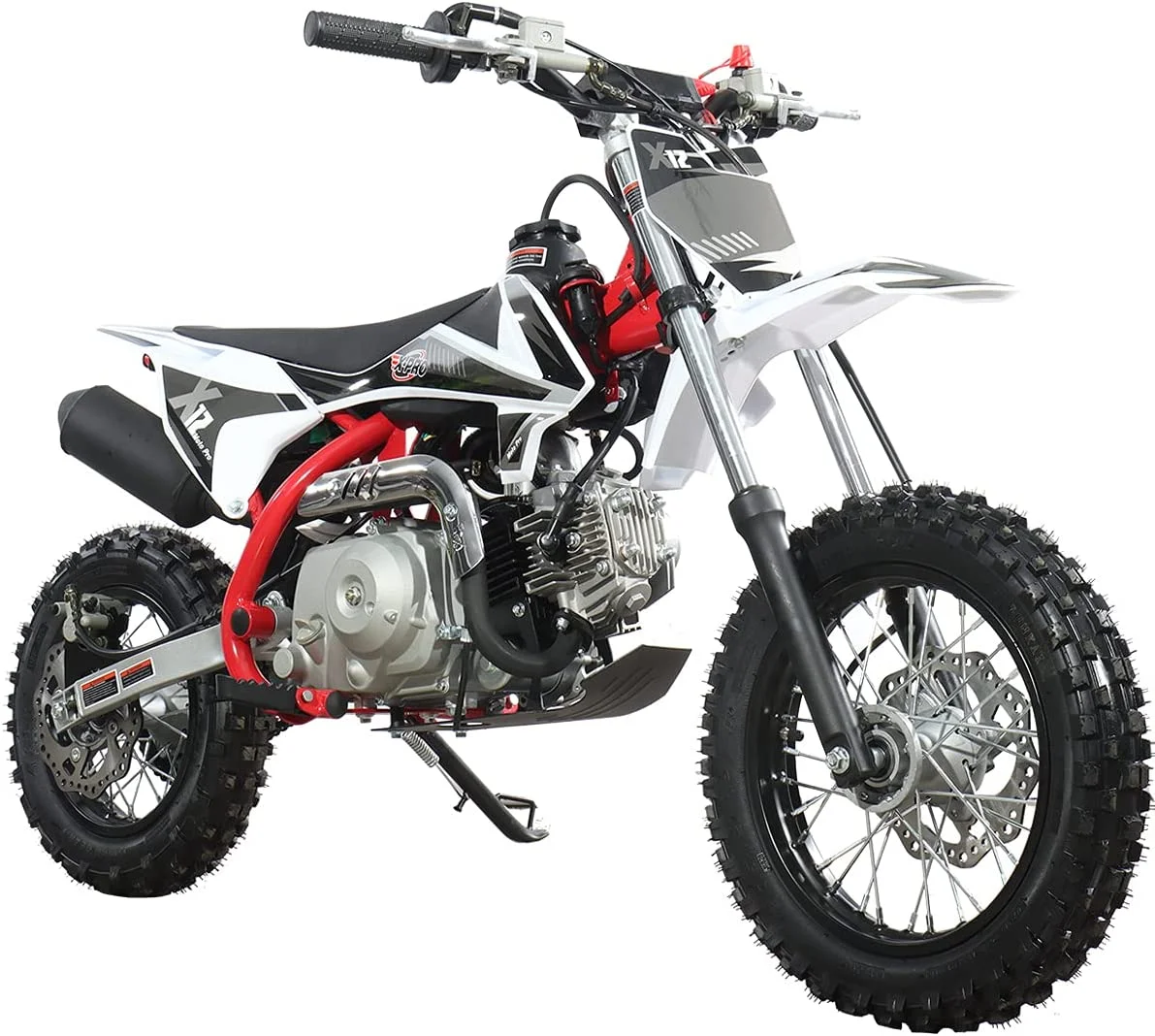 - Color matching design on wheel rims, handle bars and frame bar with plastic decals make this dirt bike unique and eye-catching in the neighborhoods.