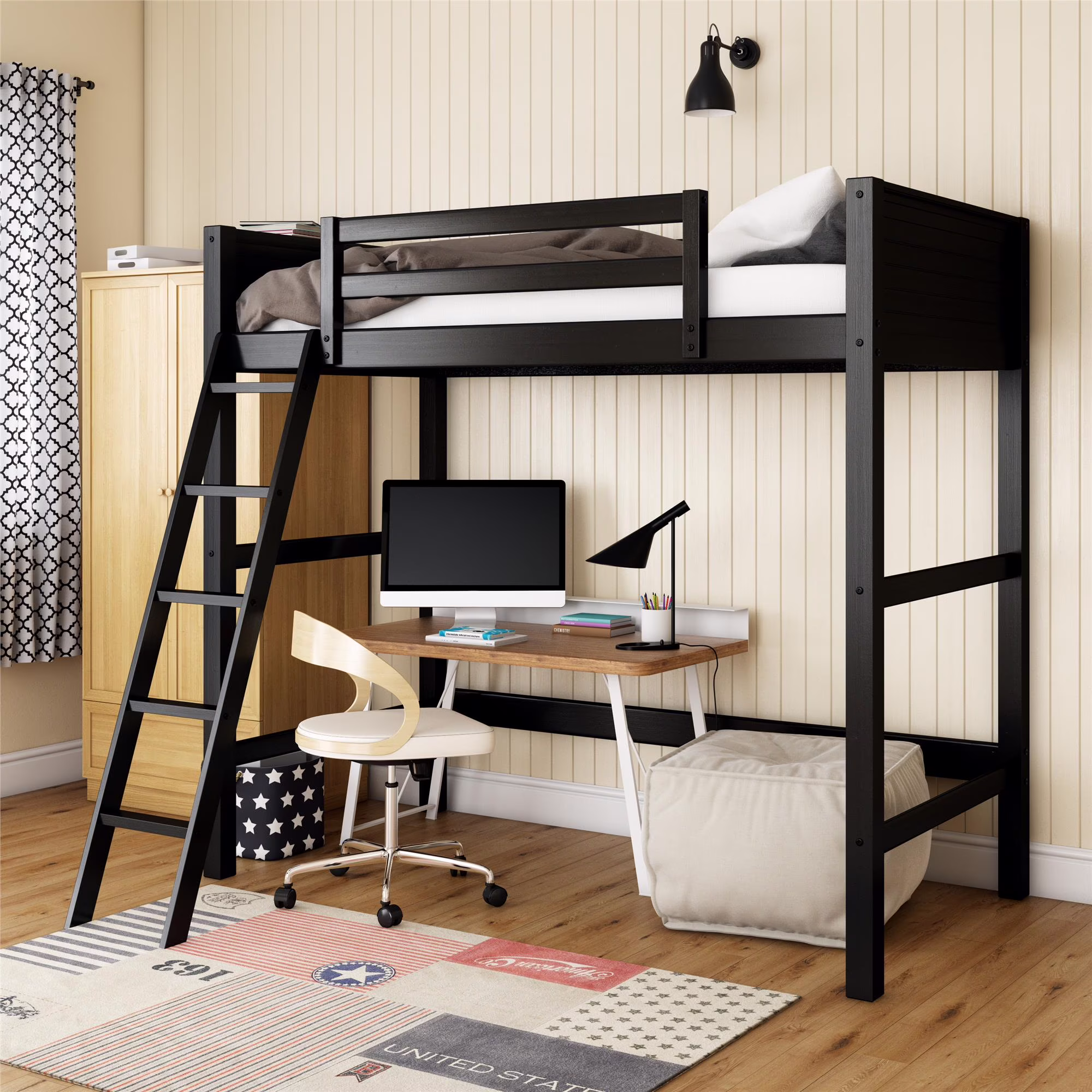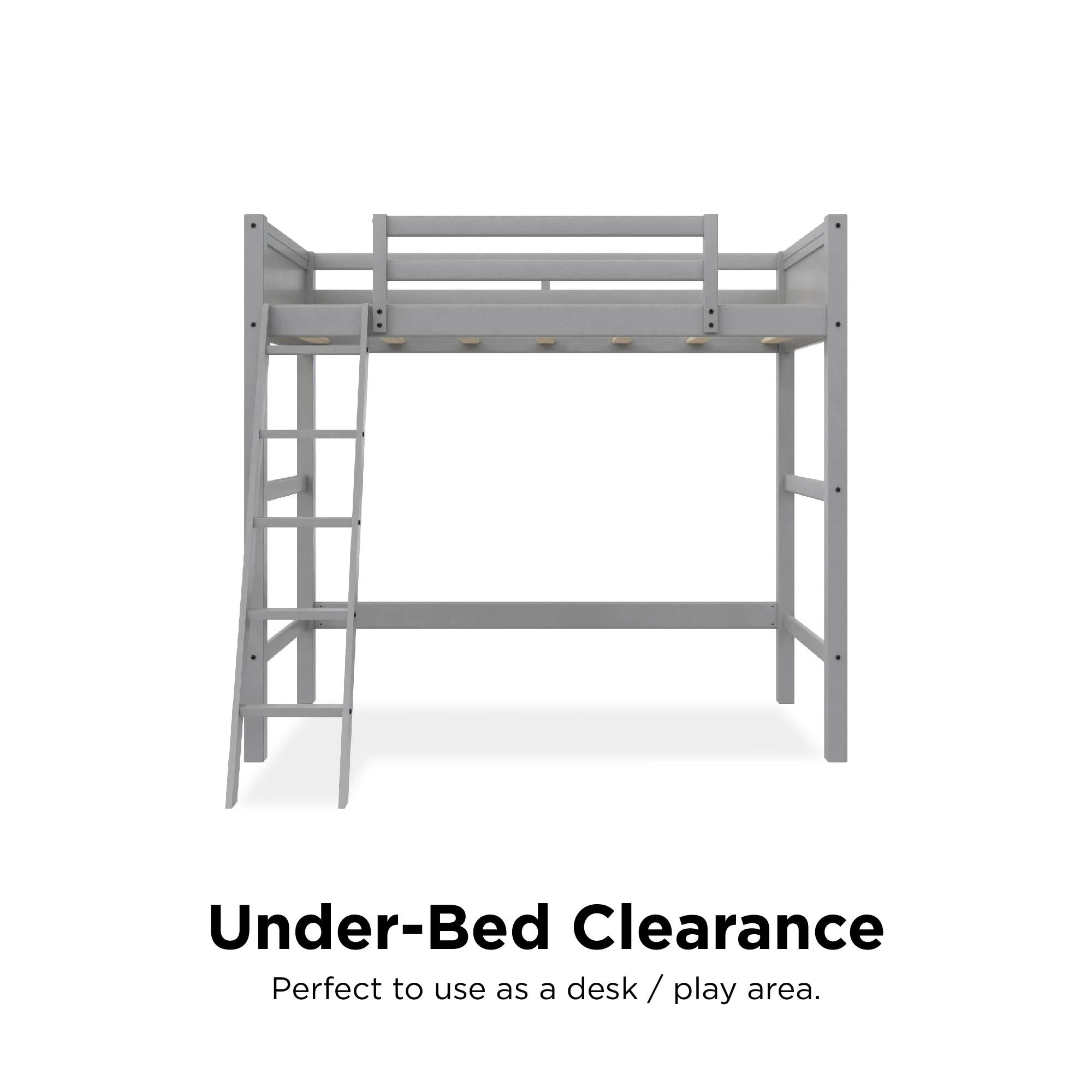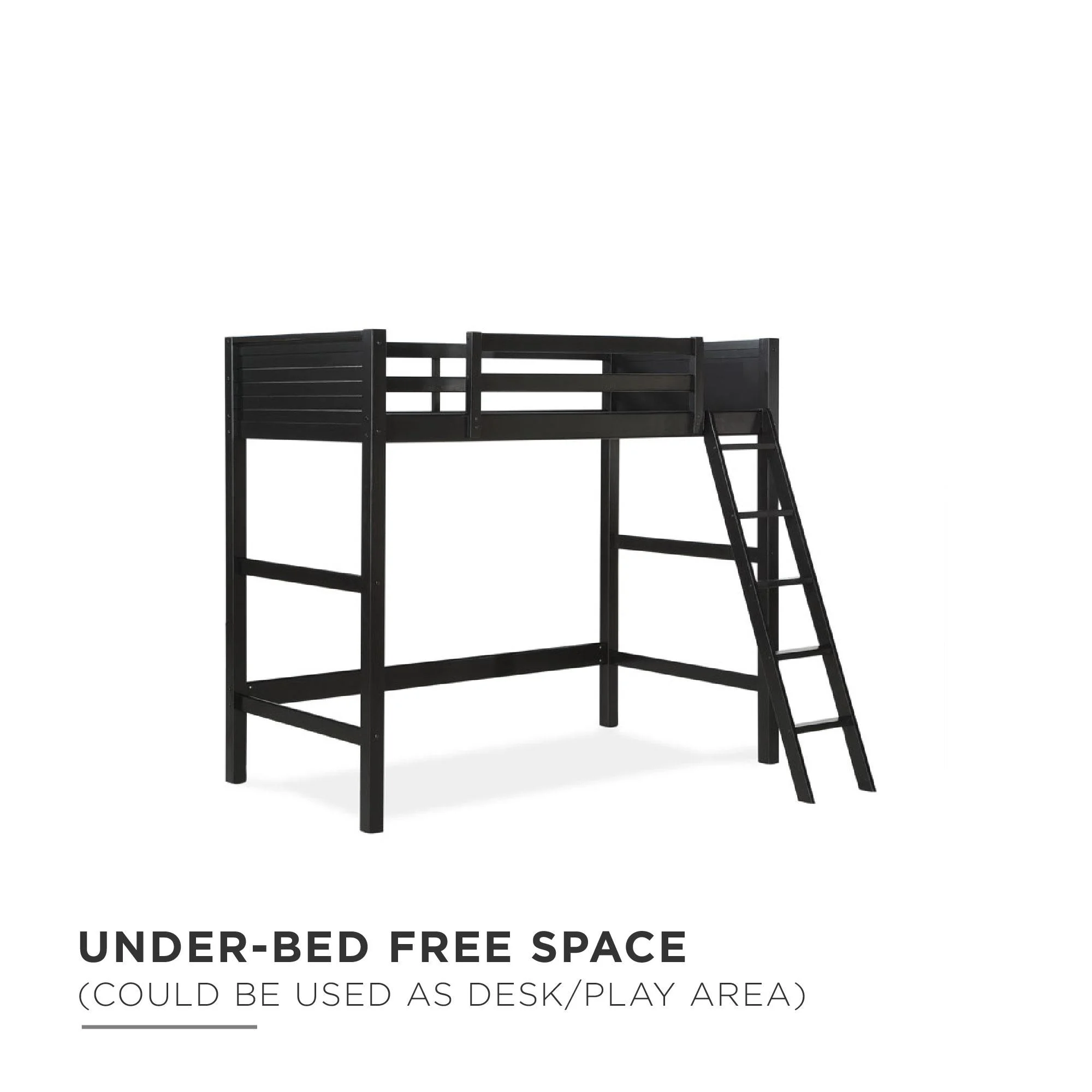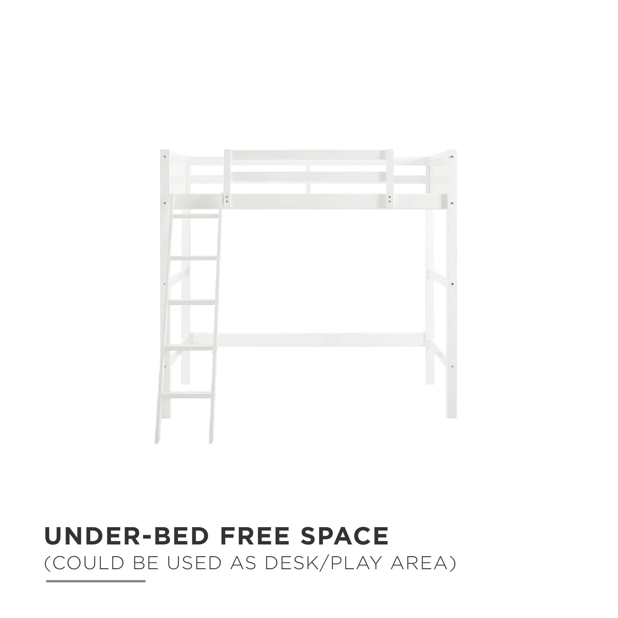 - Convenient free under-bed space that can be used as storage, a play or sitting area or as a workspace (desk not included).