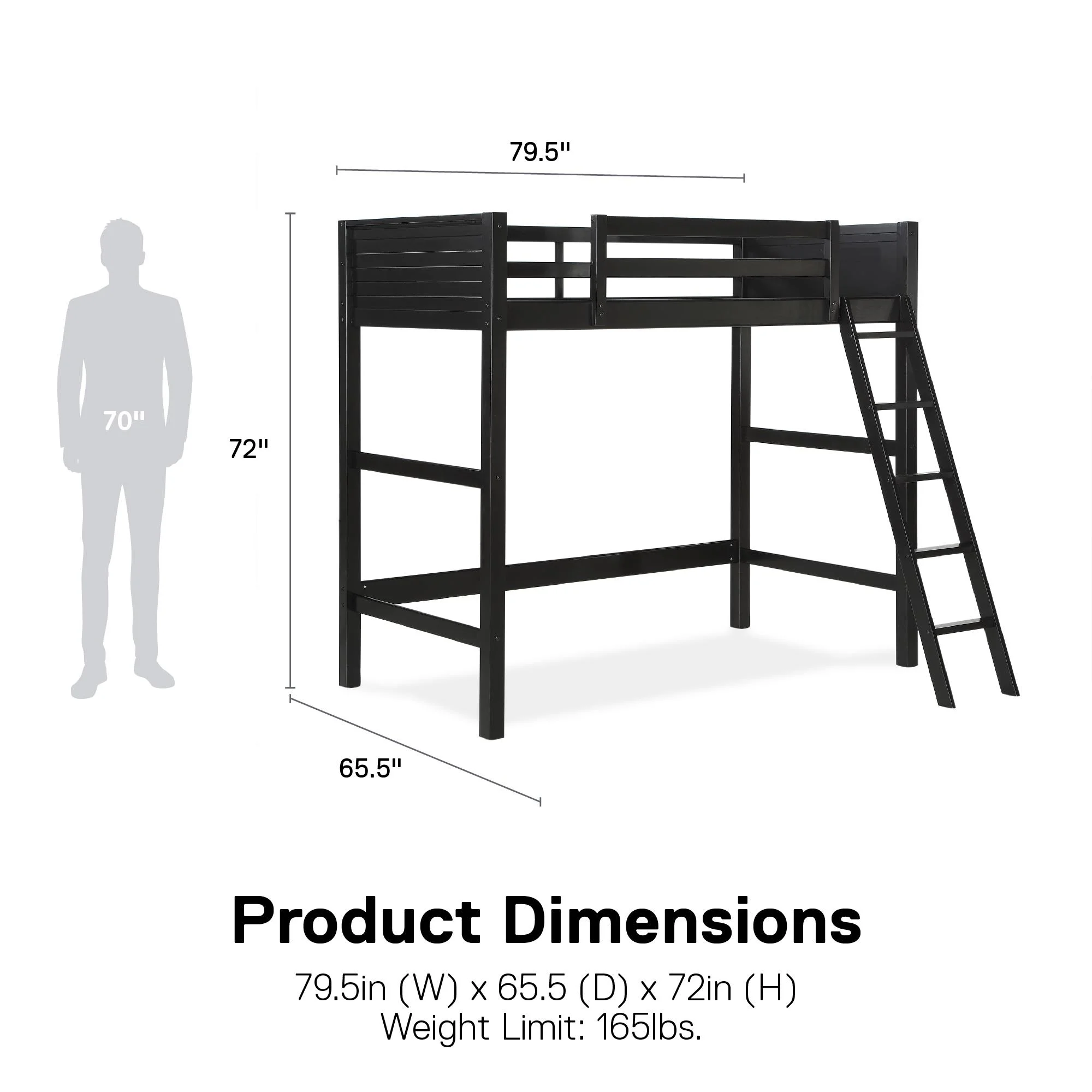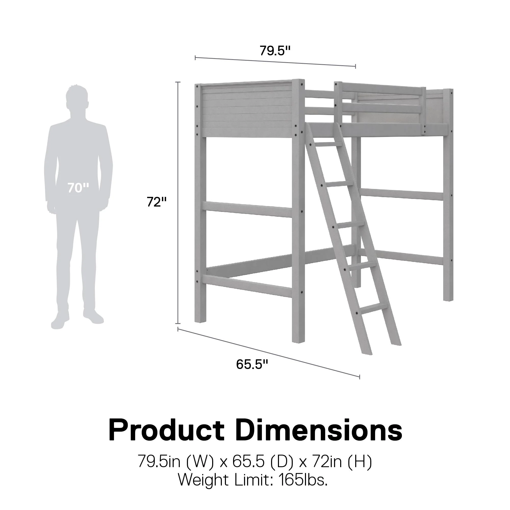 - Assembled dimensions: 79.75" W x 65.5" D x 72" H. Weight Limit: 175lbs.