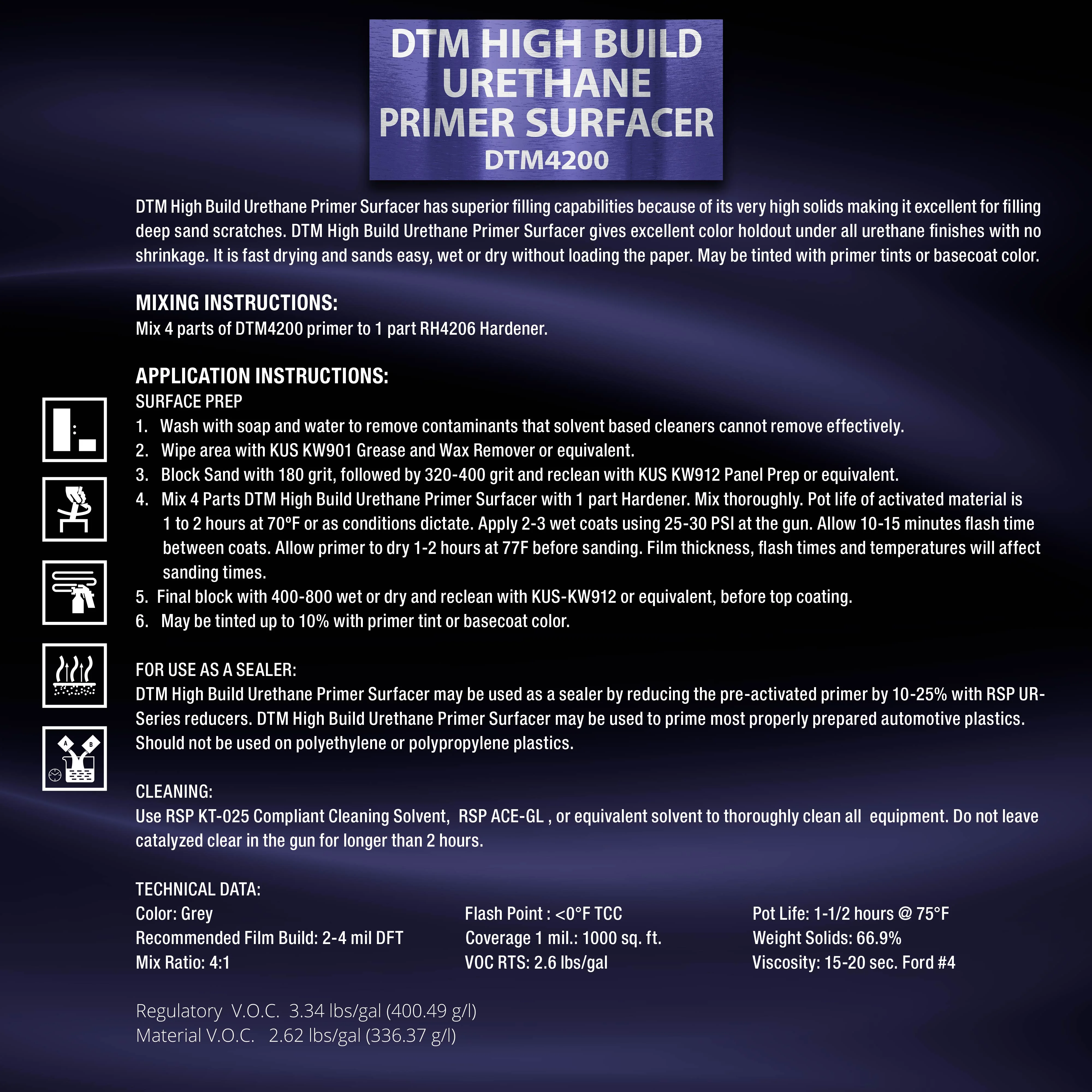 - This DTM4200 direct-to-metal primer provides excellent color holdout under all urethane finishes with no shrinkage. It is fast drying, and sands easily wet or dry without loading the paper. It can be tinted with primer tints, or base coat toner.