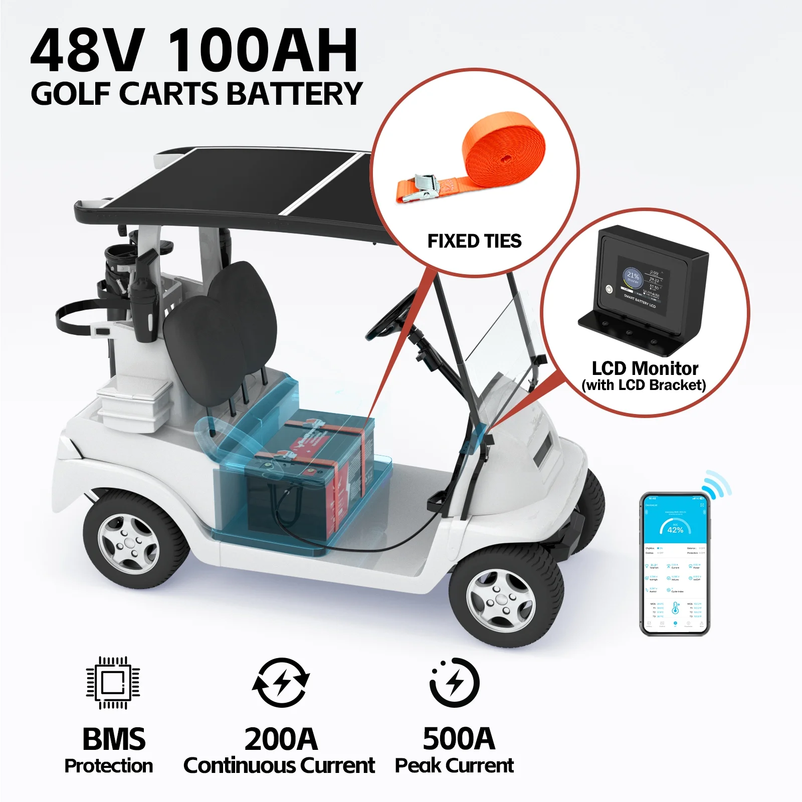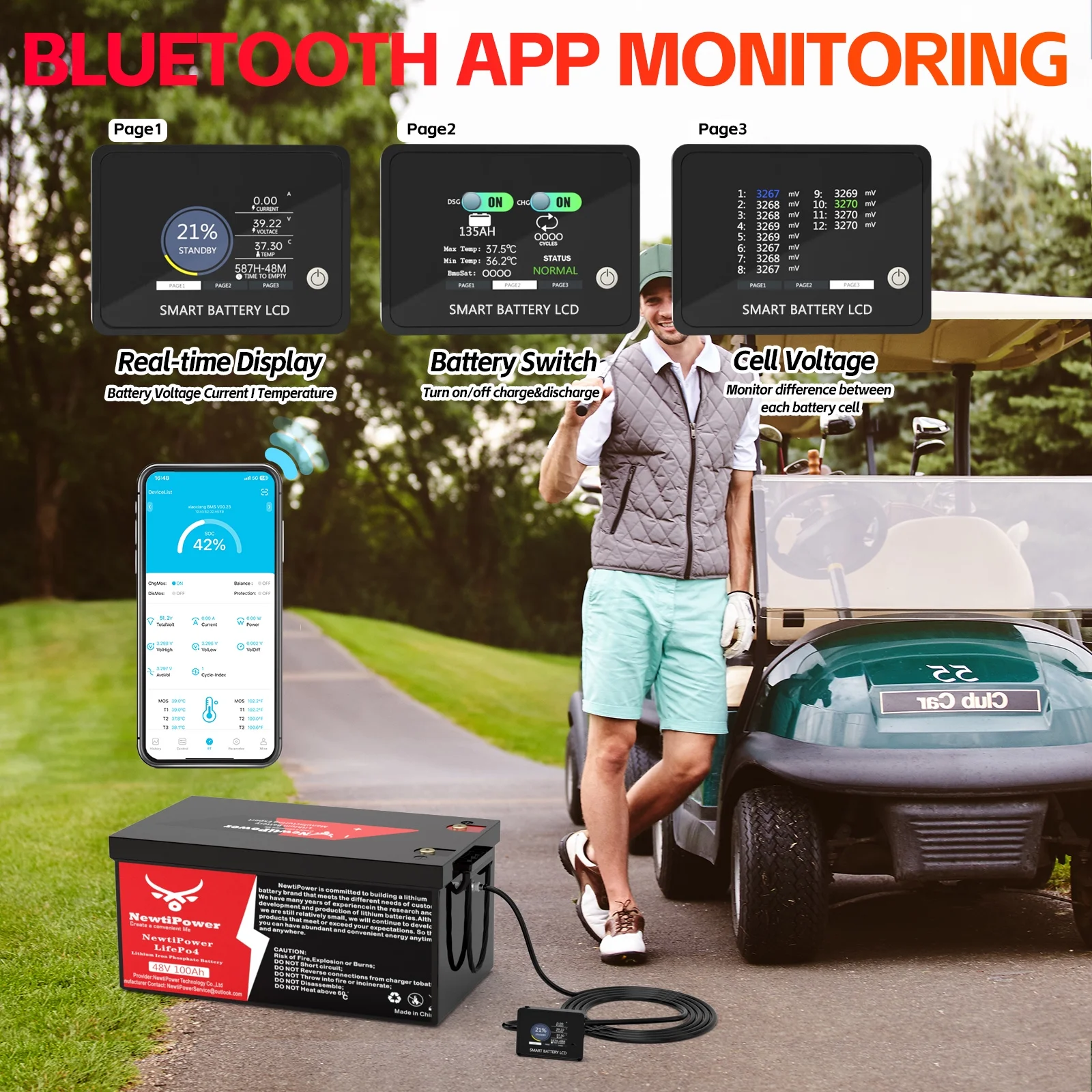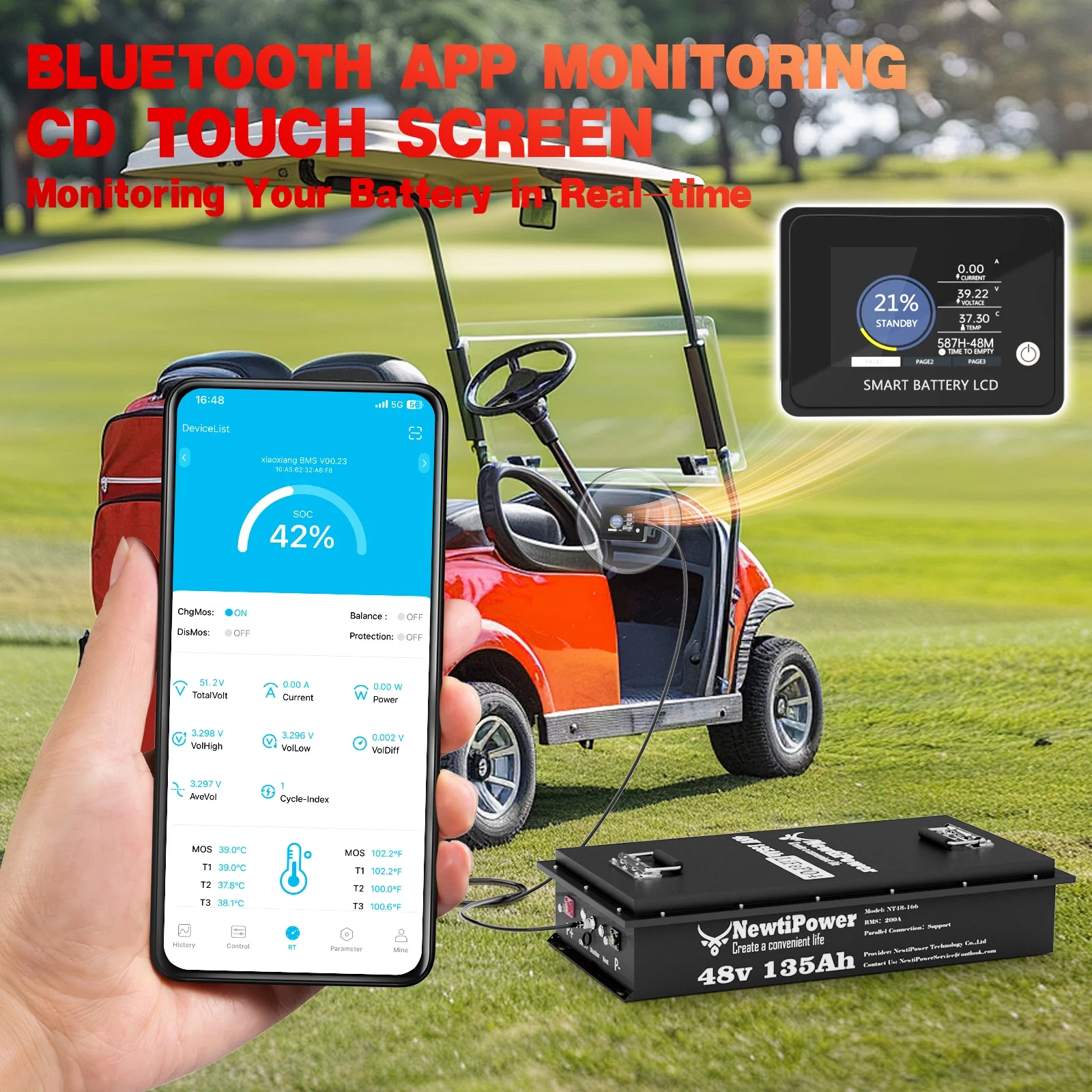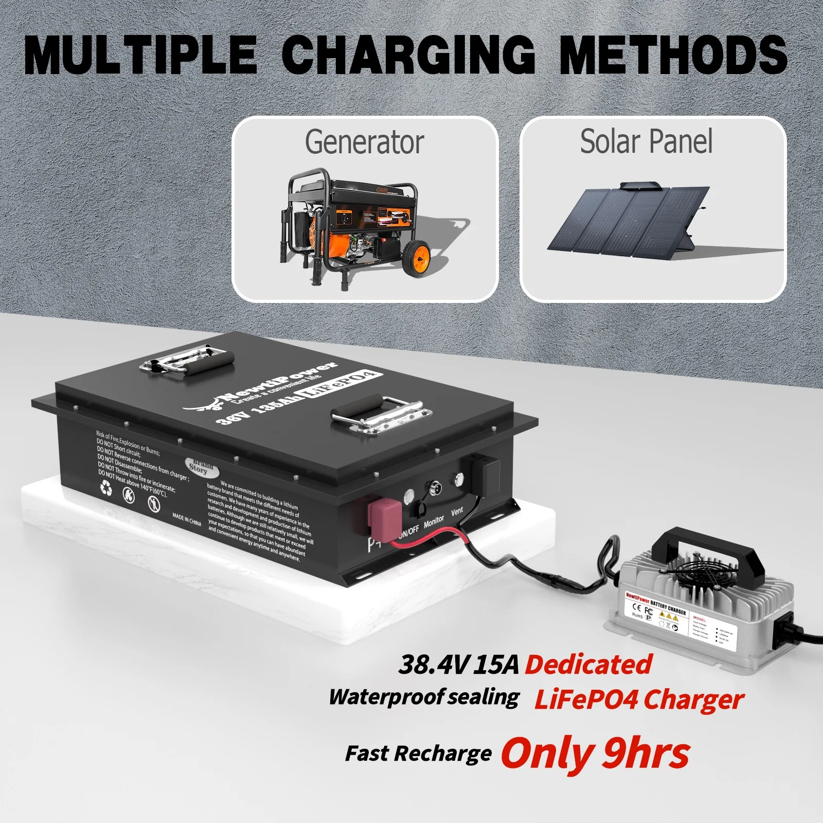 - ��Small Size & 100% Real Capacity��NewtiPower 48V 100Ah lithium iron phosphate battery weighs only 88 lb, half the weight of lead-acid battery and twice the capacity of lead-acid battery. It is easy to move and install. The available capacity of our LiFePO4 battery is 100%, compared with other brands of batteries, which only provide 60% ~ 80% of the capacity. We are not afraid that you test with a capacity test instrument after receiving the battery. We have great confidence in our products!