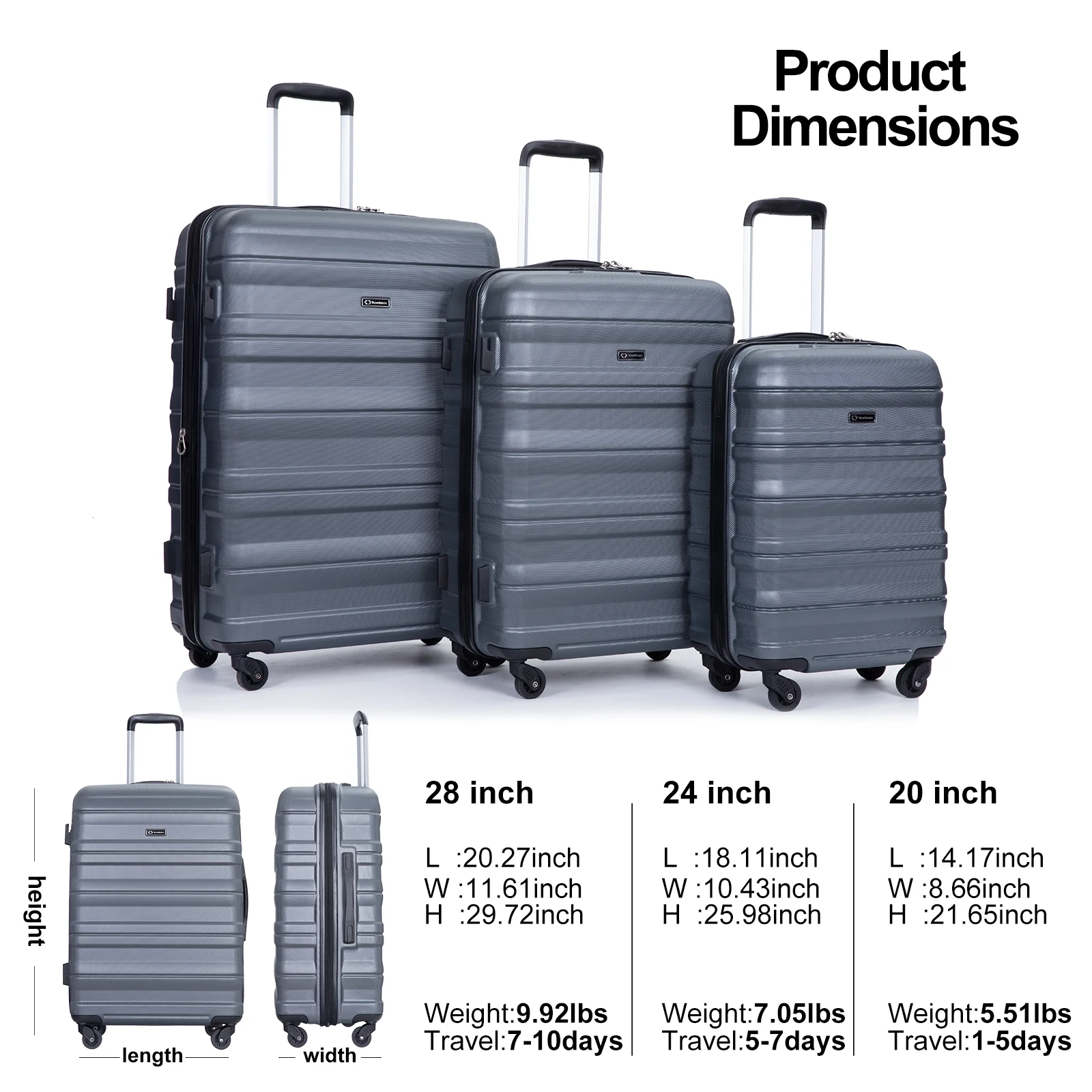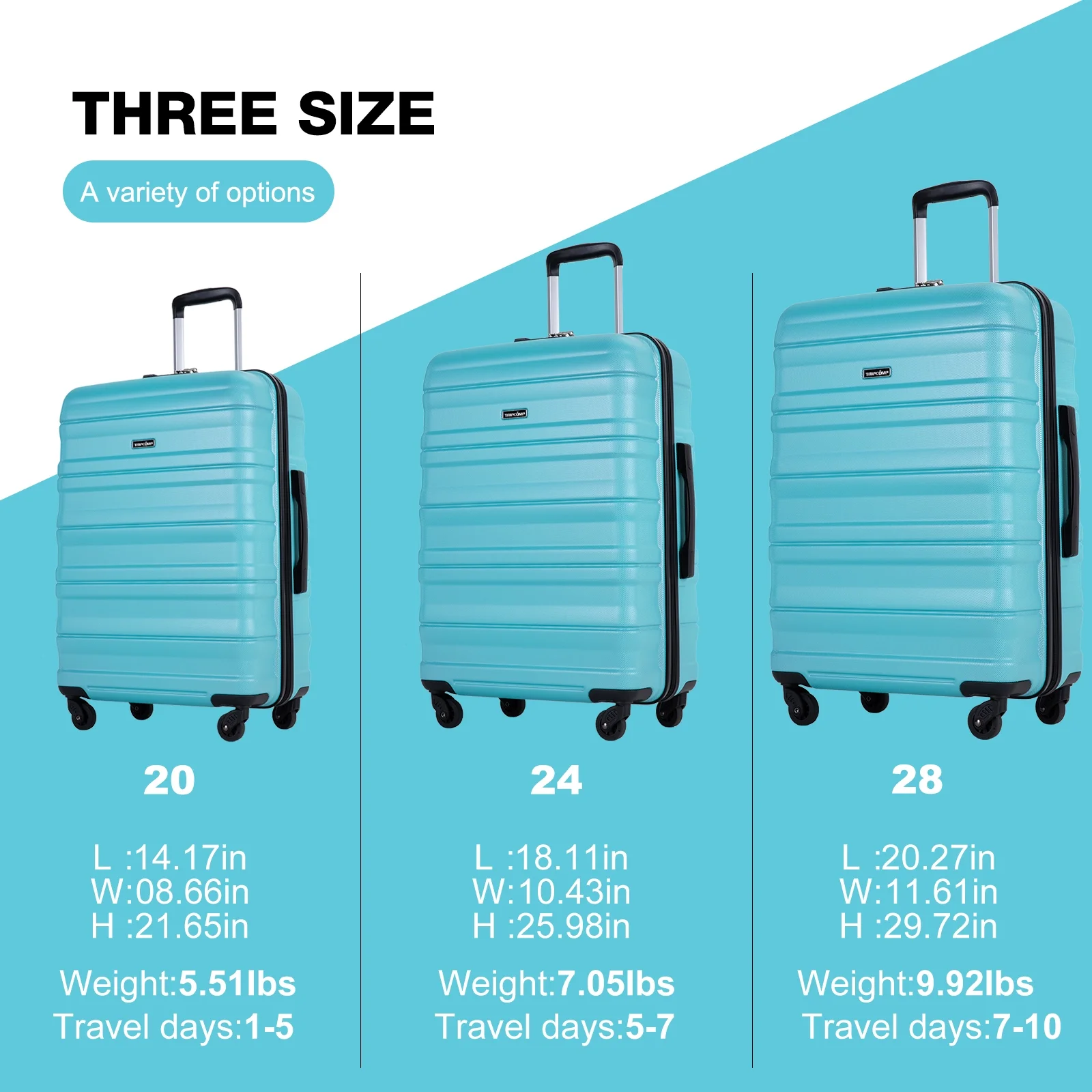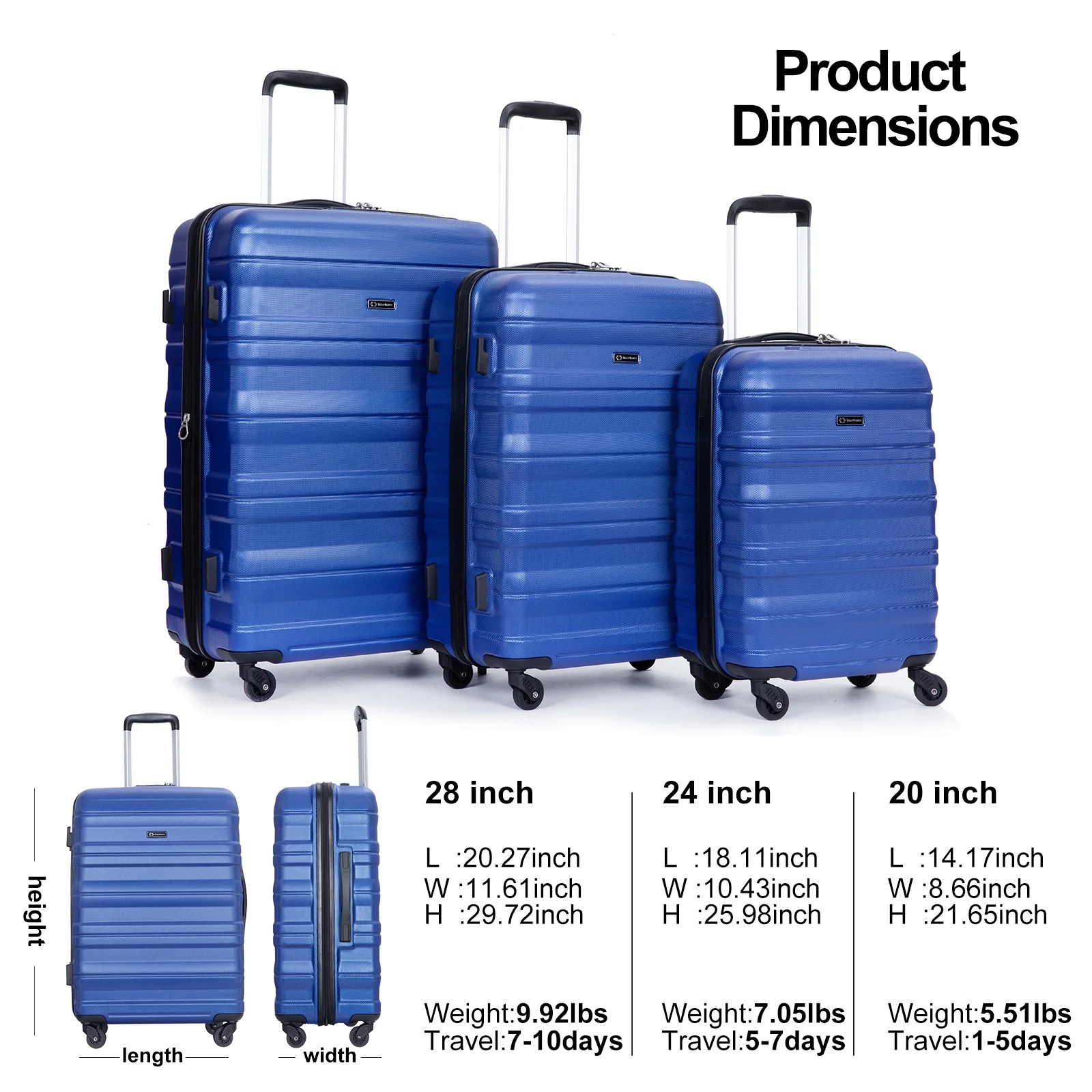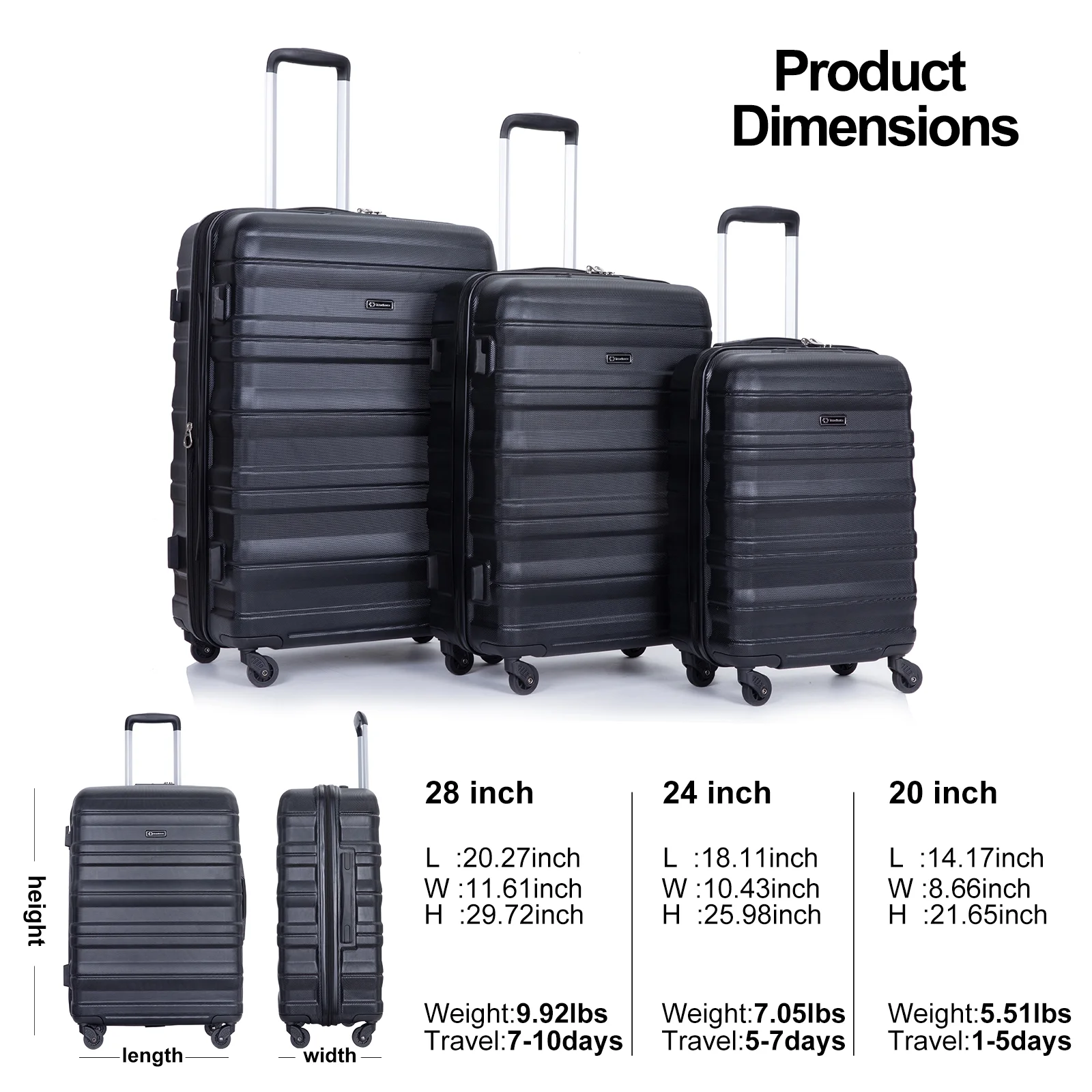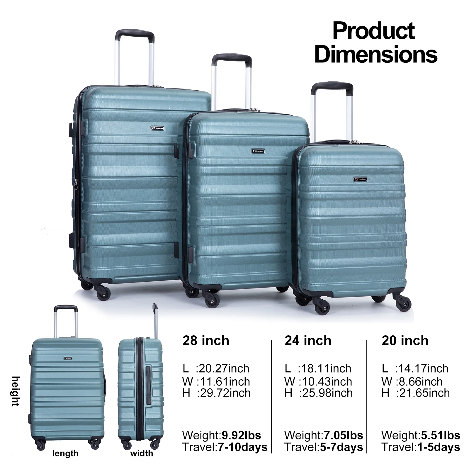 - ��Top Quality Luggage Sets��: Made of brand new extra-thick PC+ABS materials for hardshell, which make the luggage more durable, lighter and impact-resistant. Features textured finish to prevent against scratches, keeping cases beautiful after a trip. 20in is best for carryon, 28in expands 20% for more Spaces.