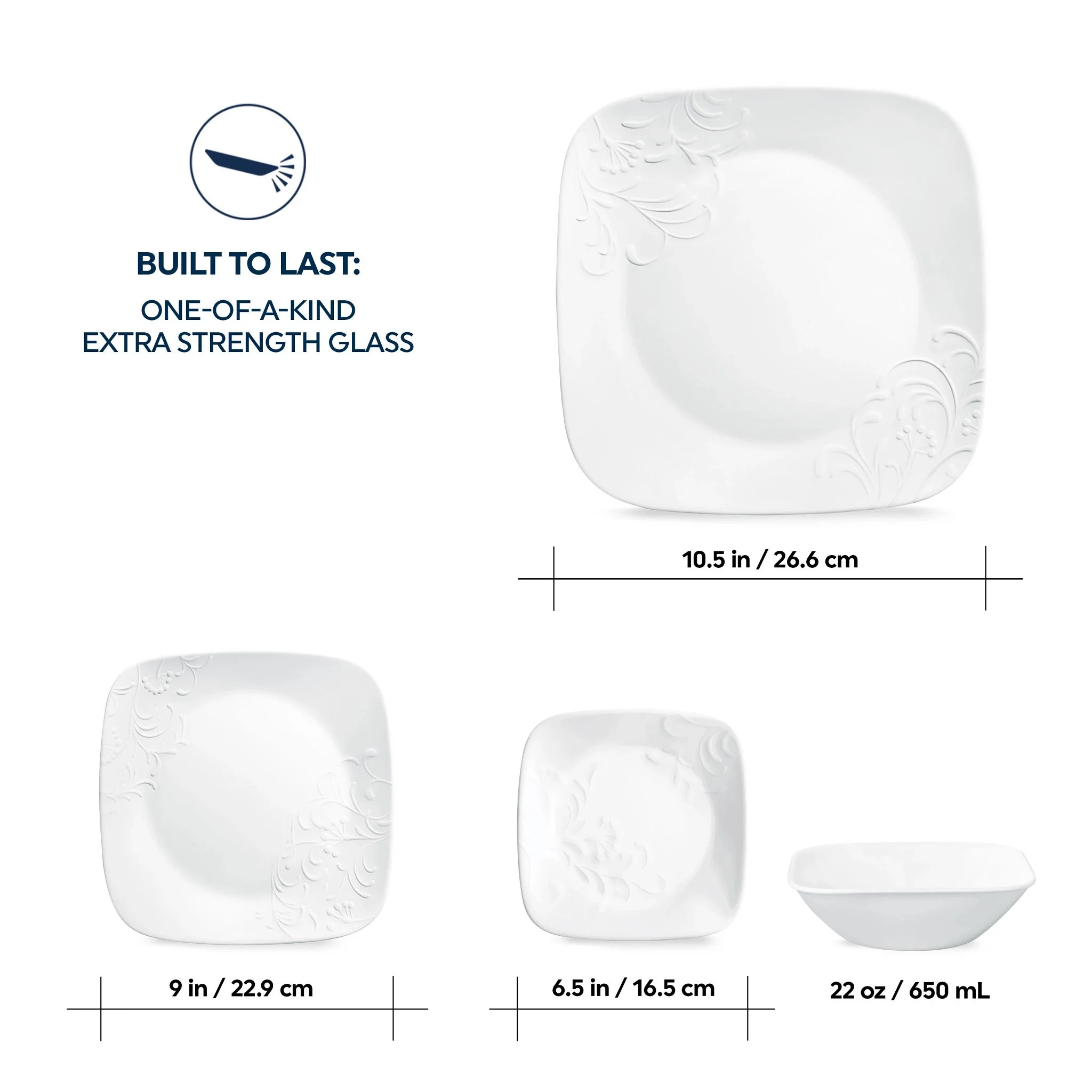 - NO MORE CHIPS & CRACKS: Dishes are 3x more durable with triple-layer-strong Vitrelle? glass