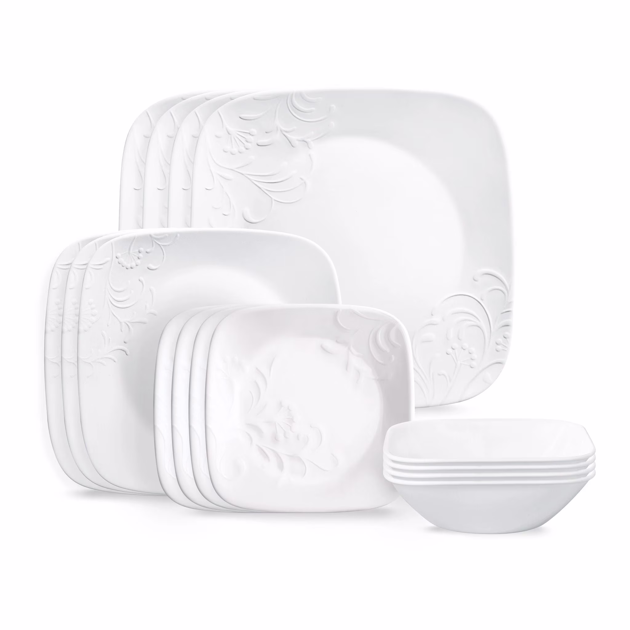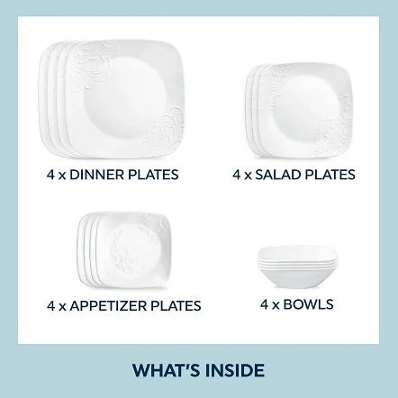 - 16-PIECE DINNERWARE SET: (4) 10.5" dinner plates, (4) 9" salad plates, (4) 22 oz soup/cereal bowls and (4) 10 oz dessert bowls