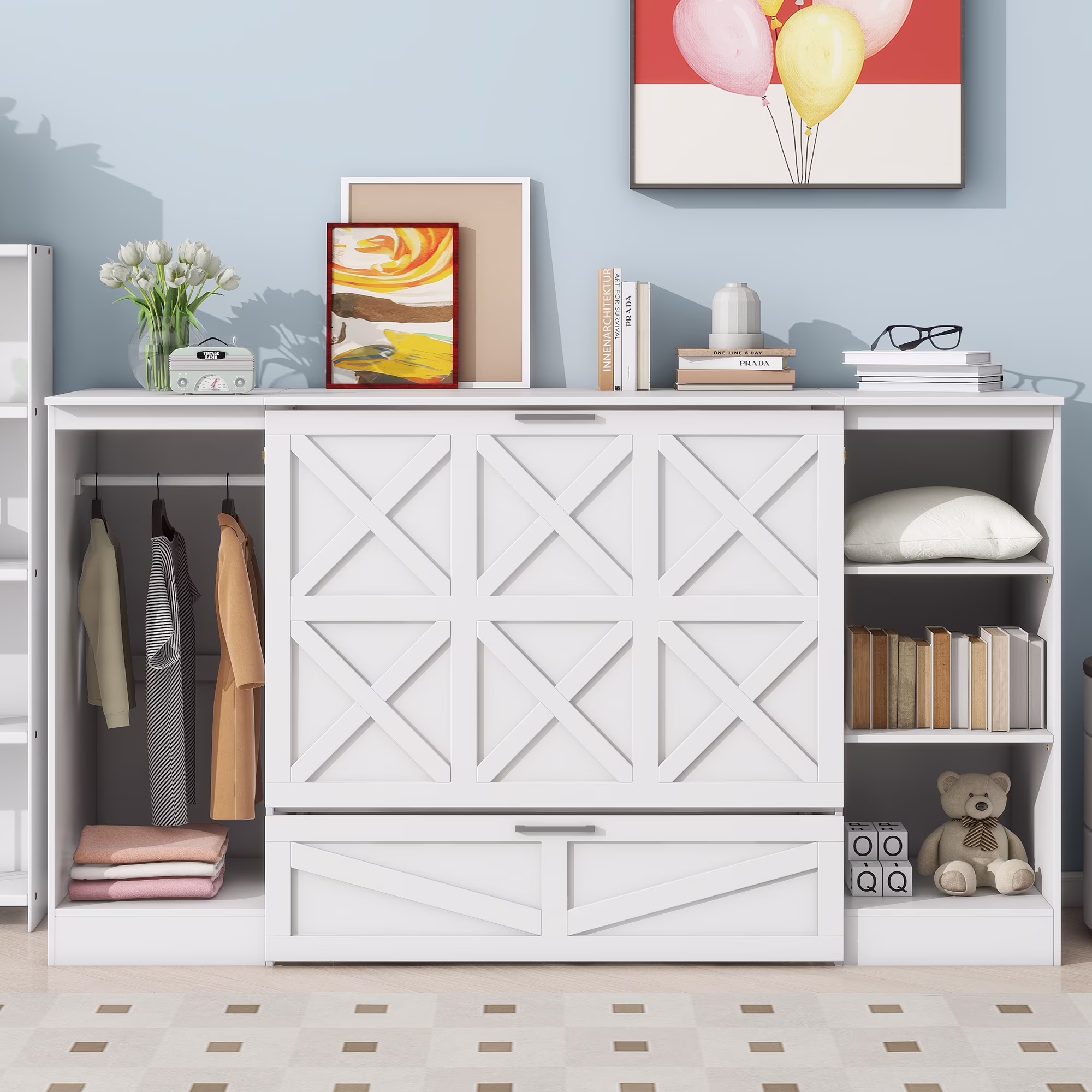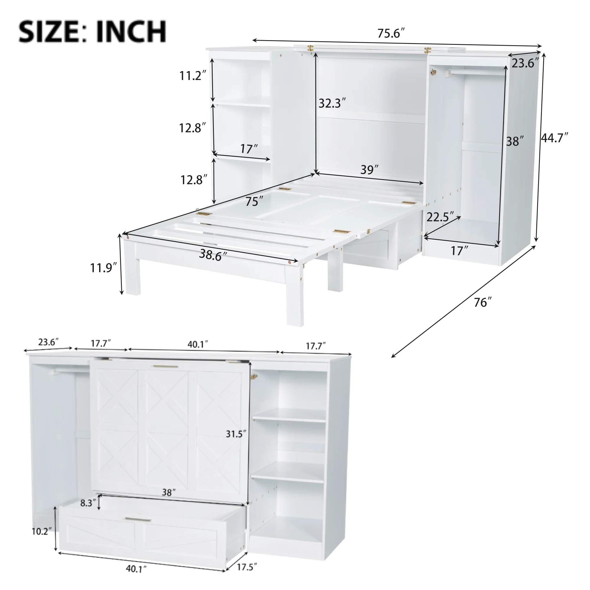 - [Space-Saving Murphy Bed]: If you want to save more space for your bedroom or guests room, this murphy bed is what you want. Murphy bed can be easily turned to a twin size platform bed or a storage cabinet when you fold it.