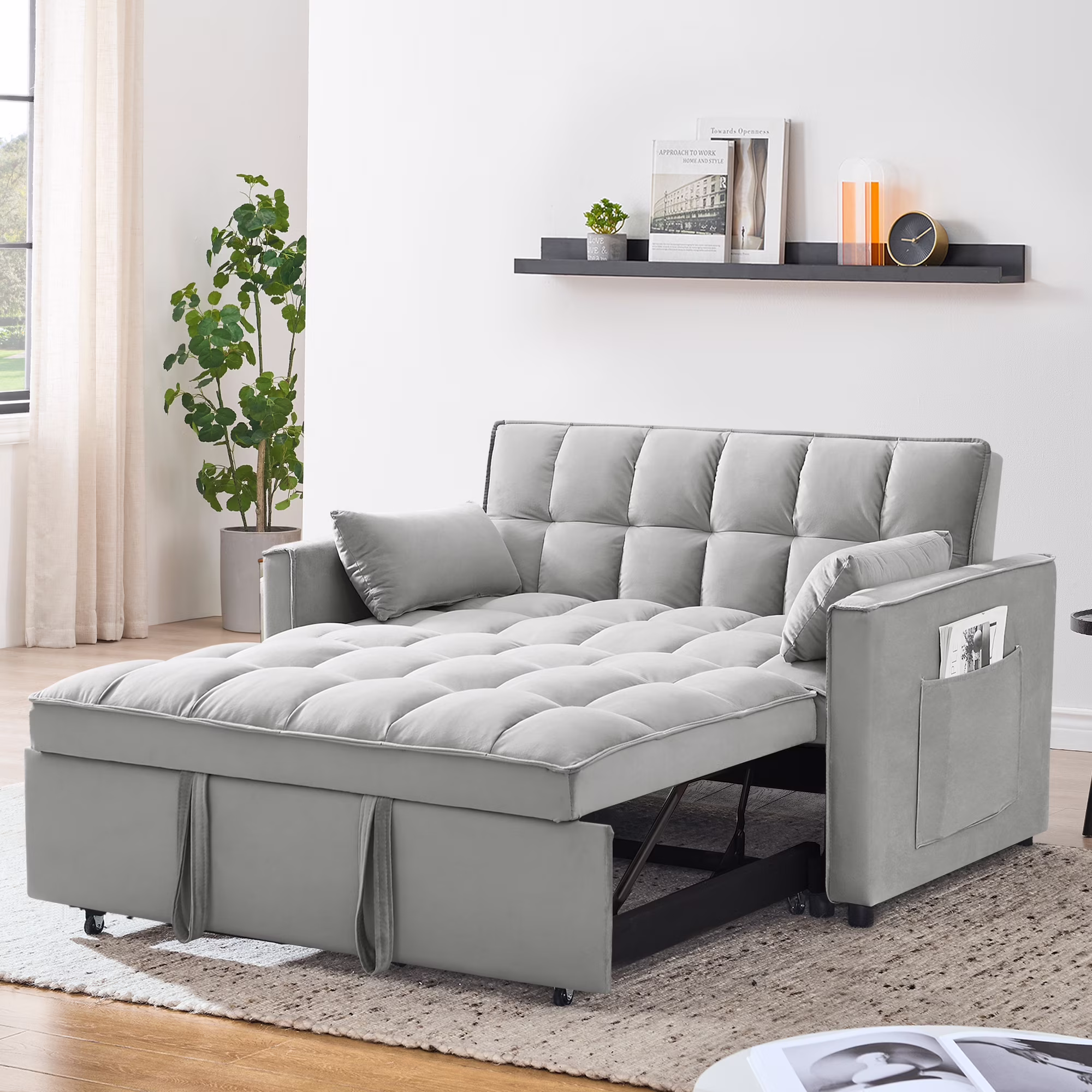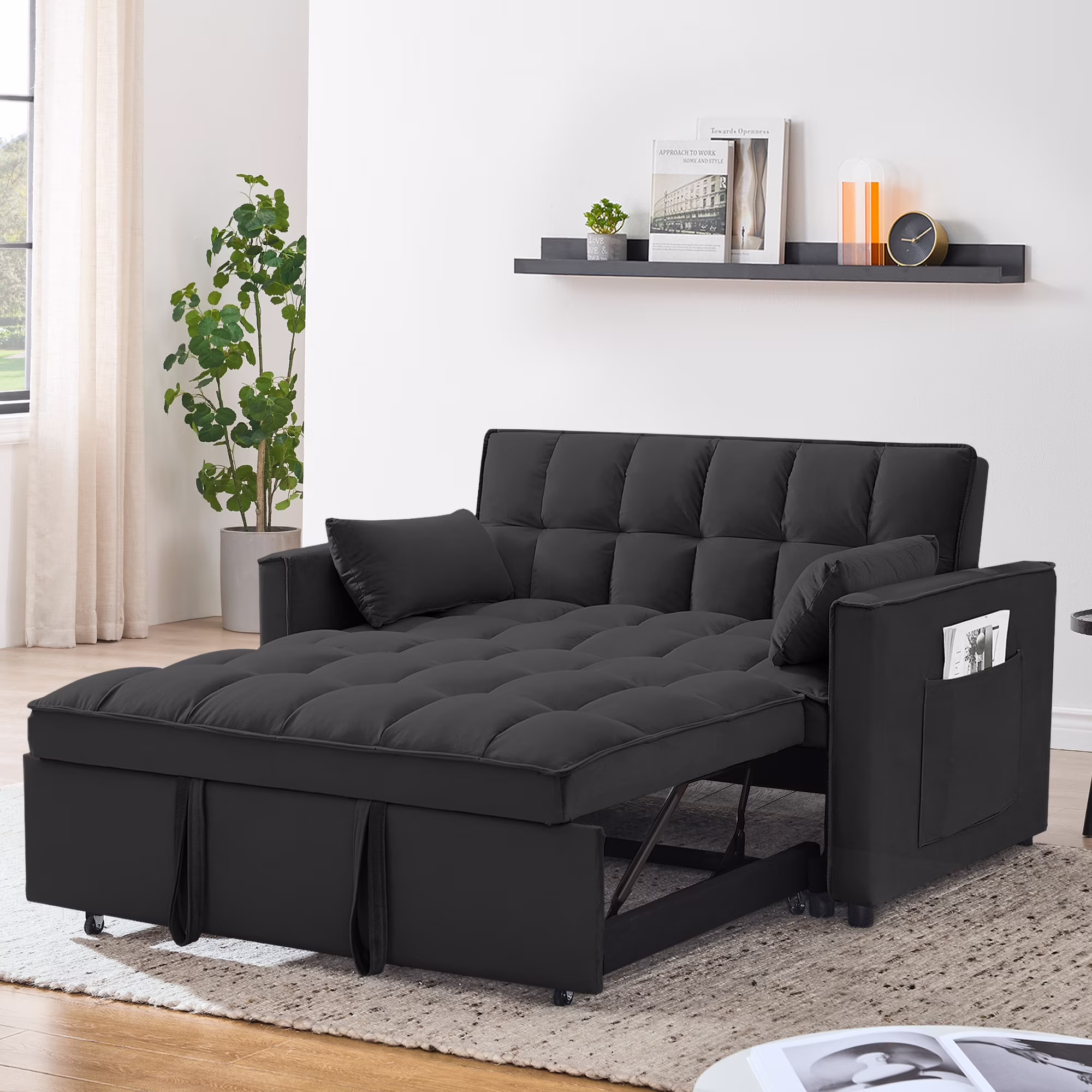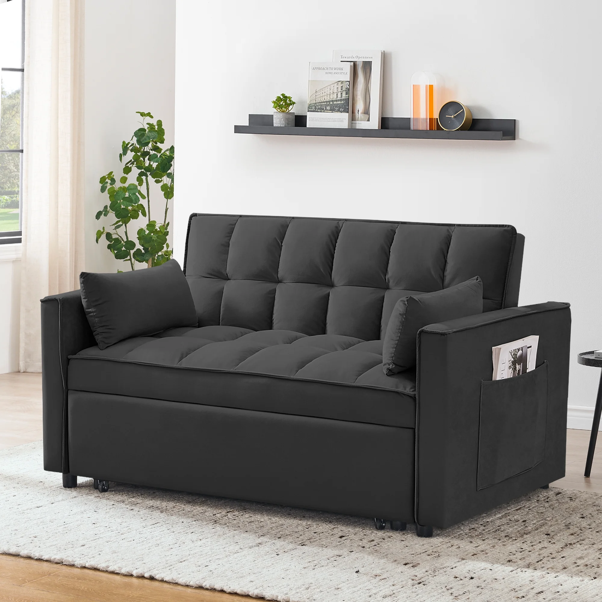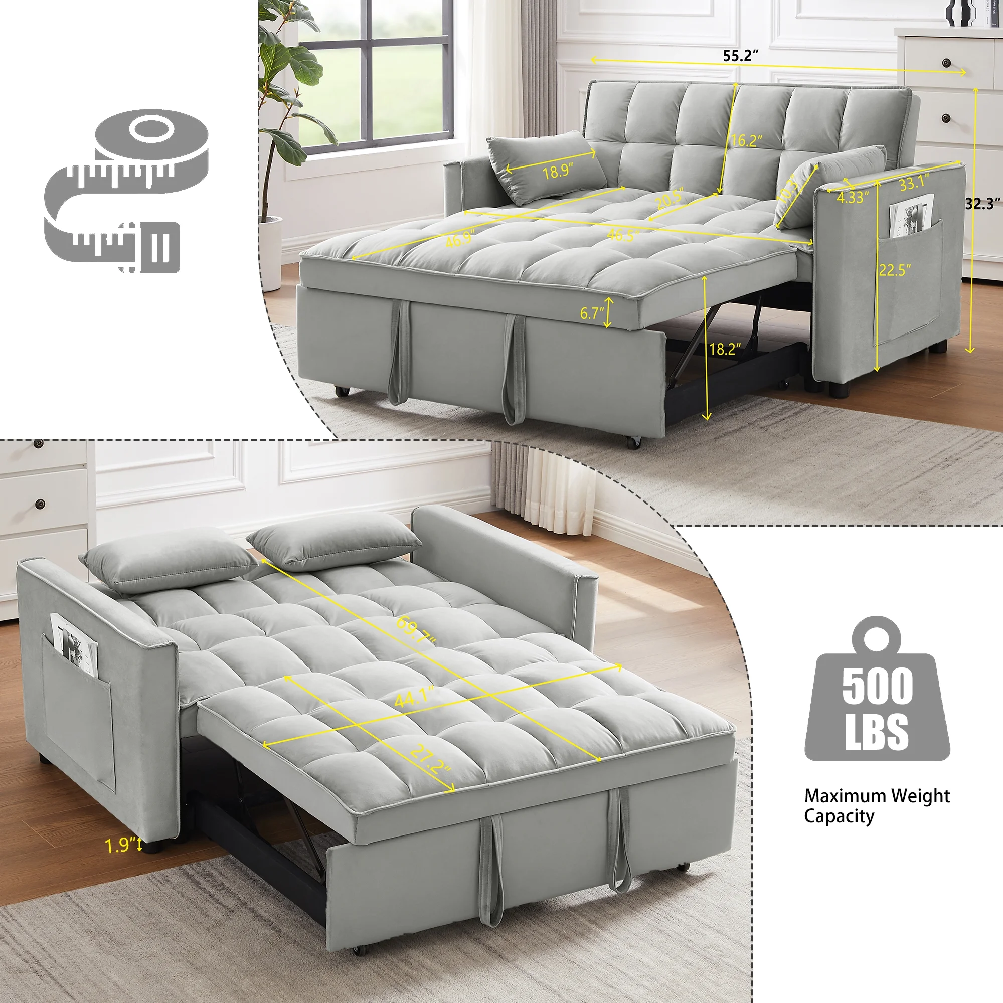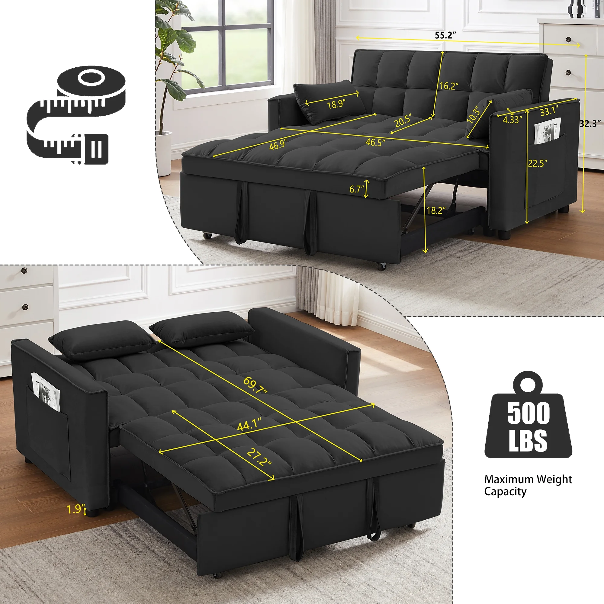 - ��CONVERTIBLE SOFA BED -- Pull the included handle and it slides out on its rollers to make loveseat sofa converts to sleeper bed easily, No matter what room it is, whether it is a large room or a small room, this is your best choice! The twin-sized sleeper bed can accommodate your overnight guests.